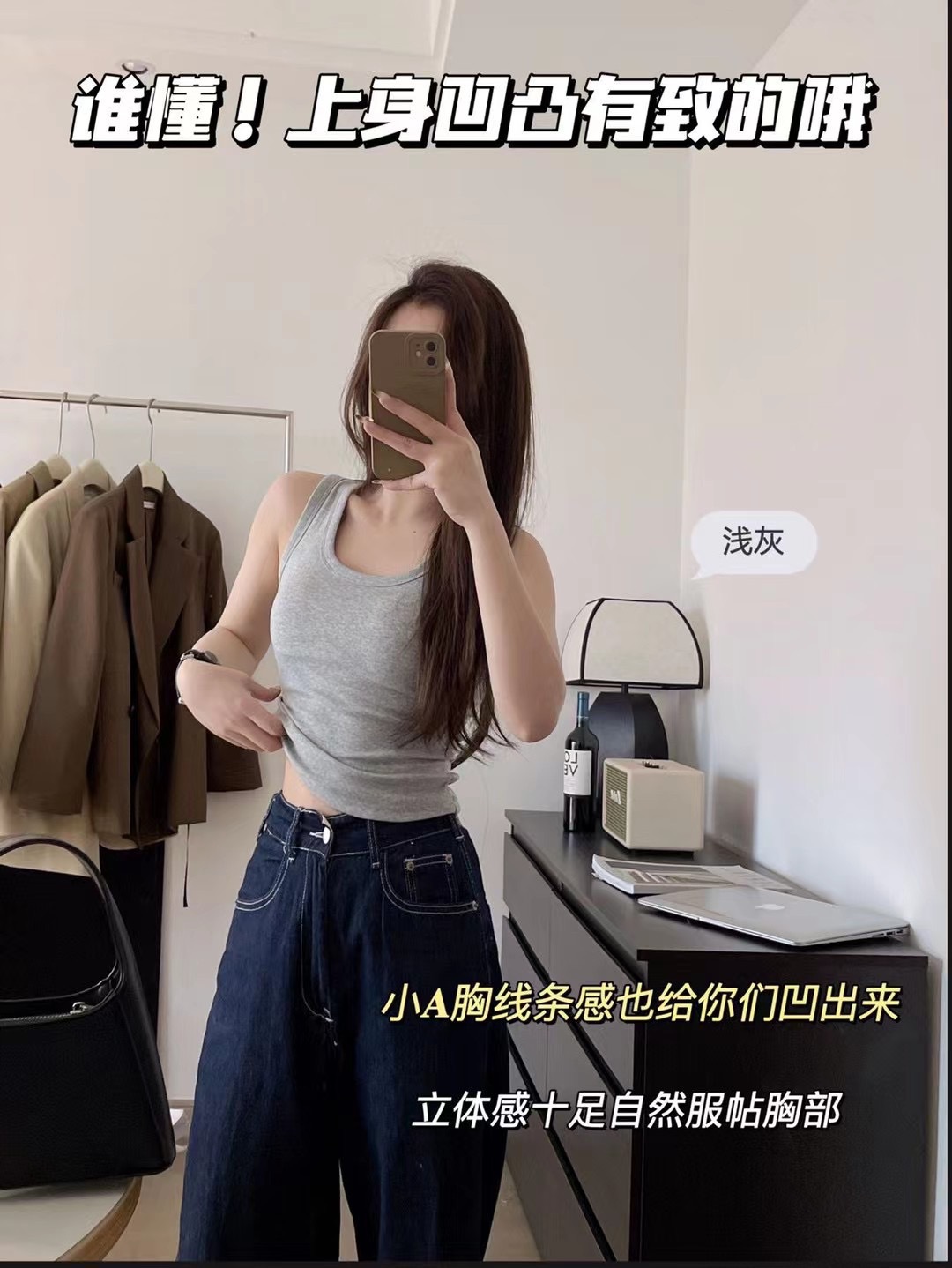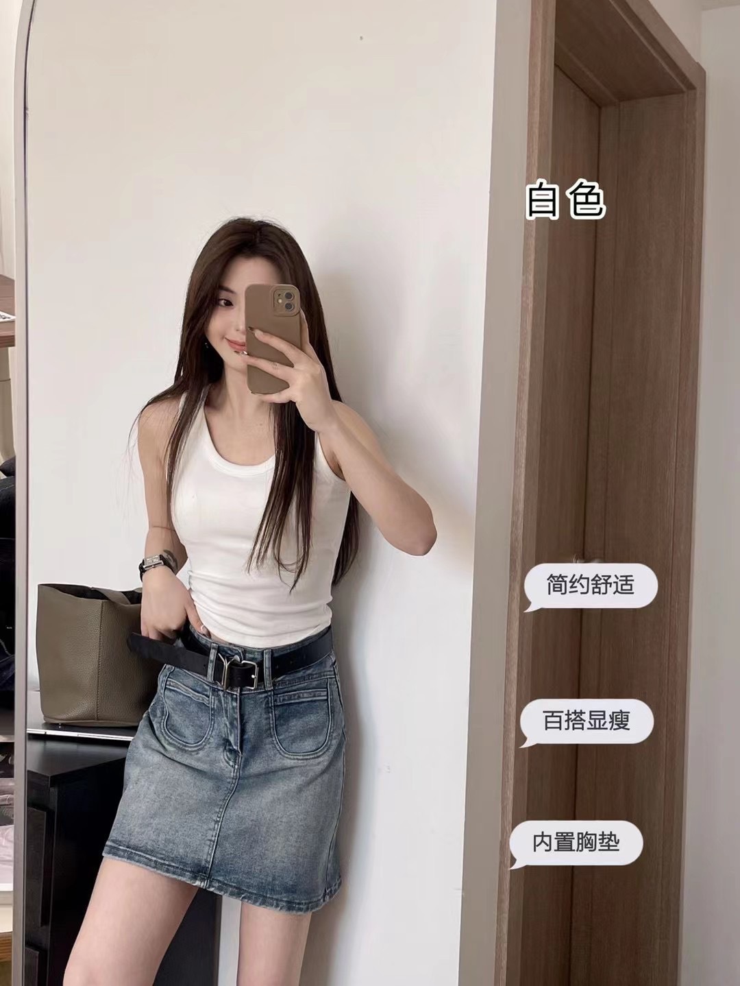 단색 다용도 끈나시탑 여성용 가슴패드 내장 작은 가슴을 위한 푸쉬업 이너웨어/아우터웨어 슬림핏 슬리밍 아름다운 등 라인스토어 가기