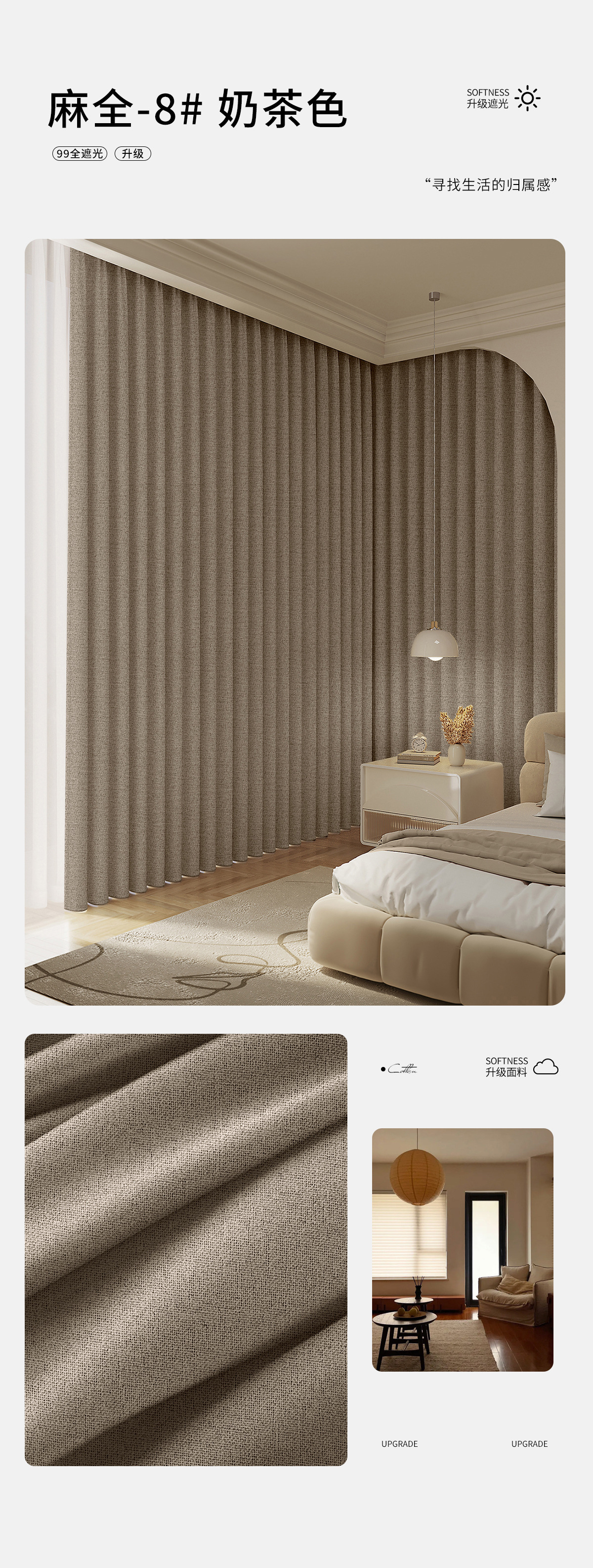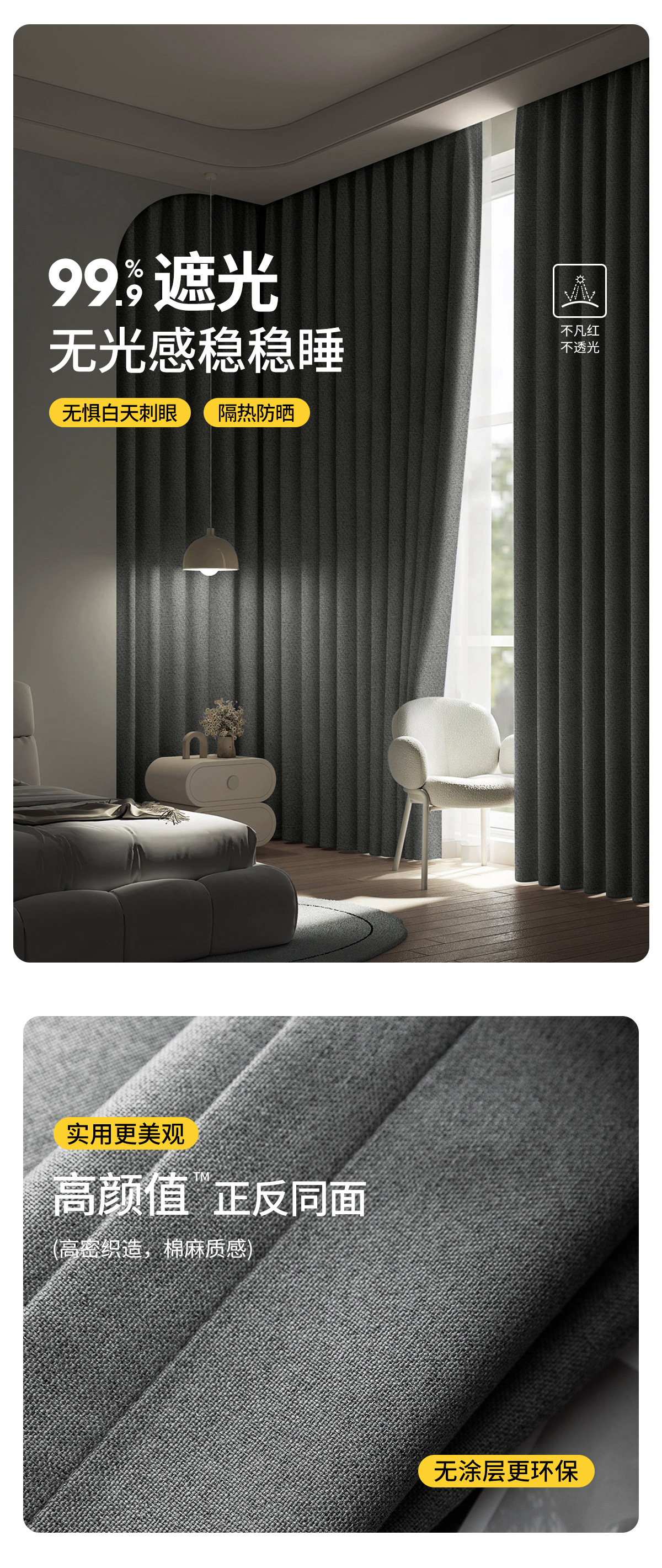 커튼, 빛 차단, 침실, 거실, 두꺼운 고급형, 2026년 신형, 고급스러운 느낌, 단열, 자외선 차단, 면과 린넨 커튼