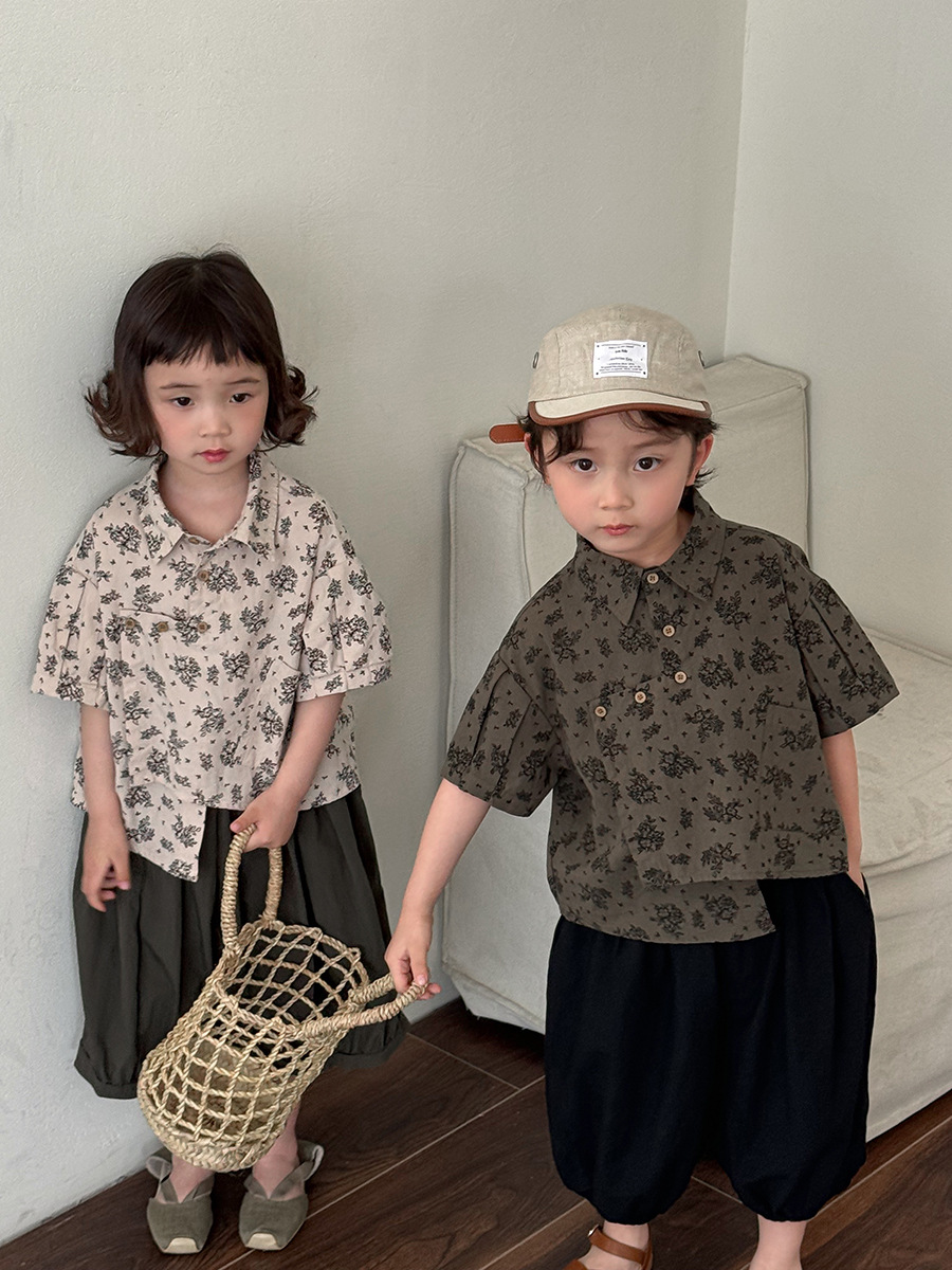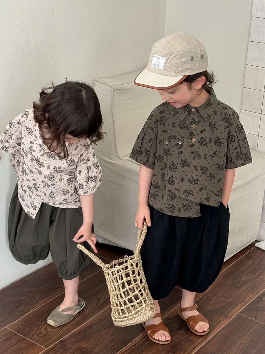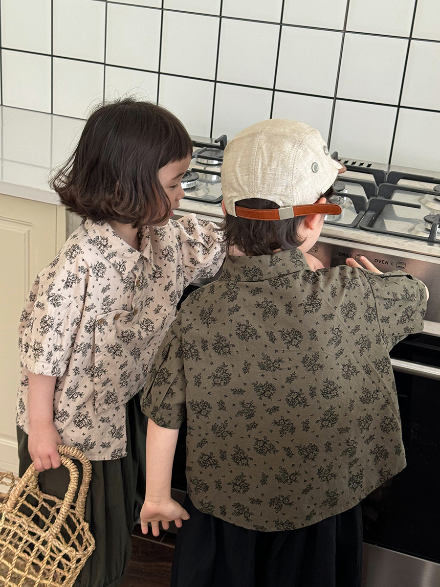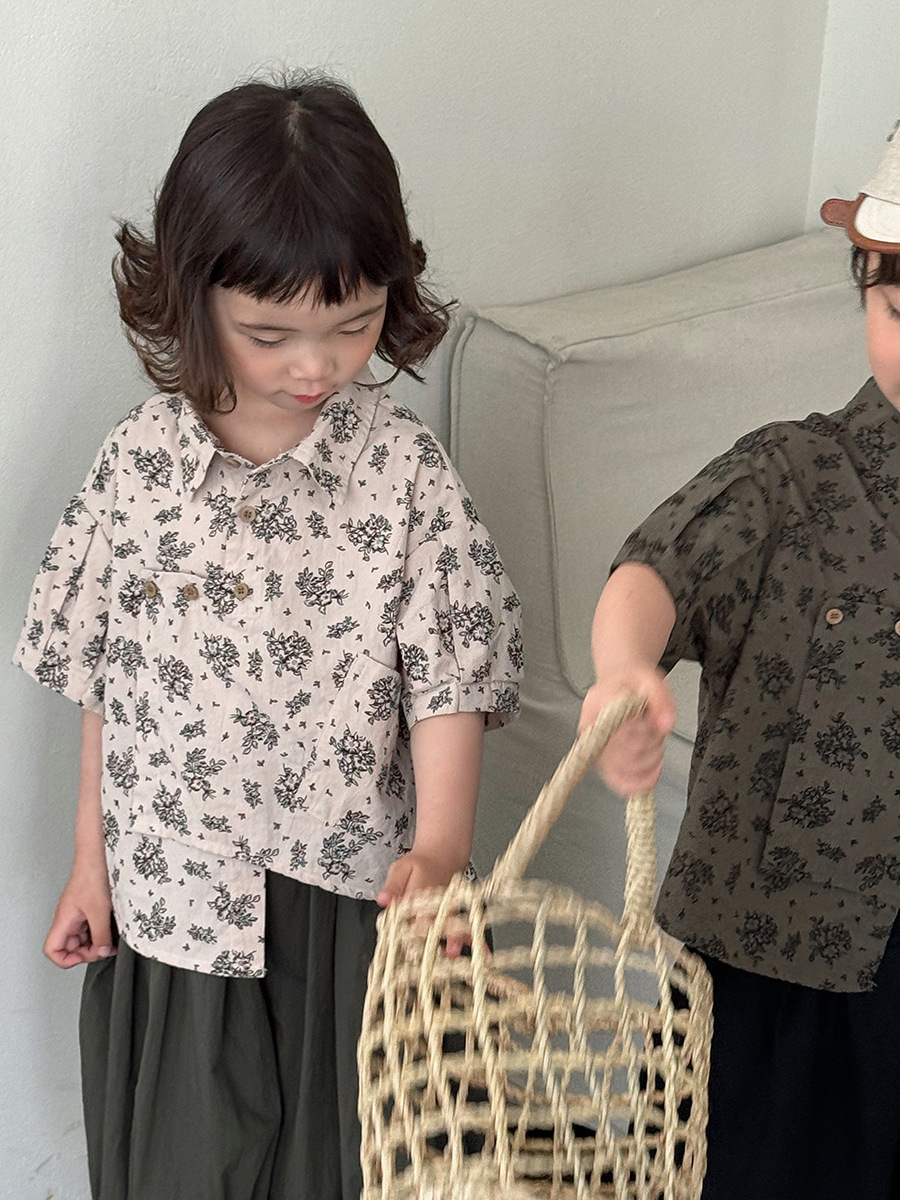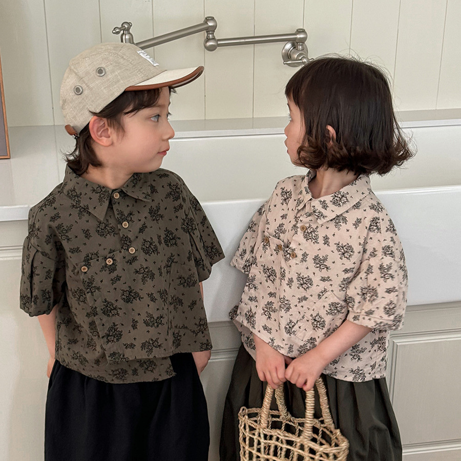 소년 소녀를위한 Jiaye 어린이 2025 어린이 여름 새 꽃 반팔 셔츠 아기 모리 레트로 셔츠 카디건스토어 가기