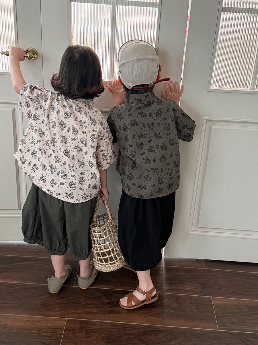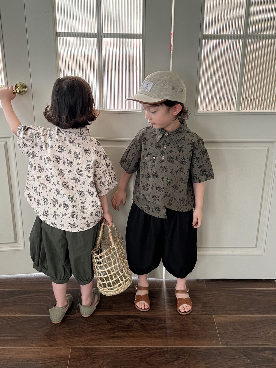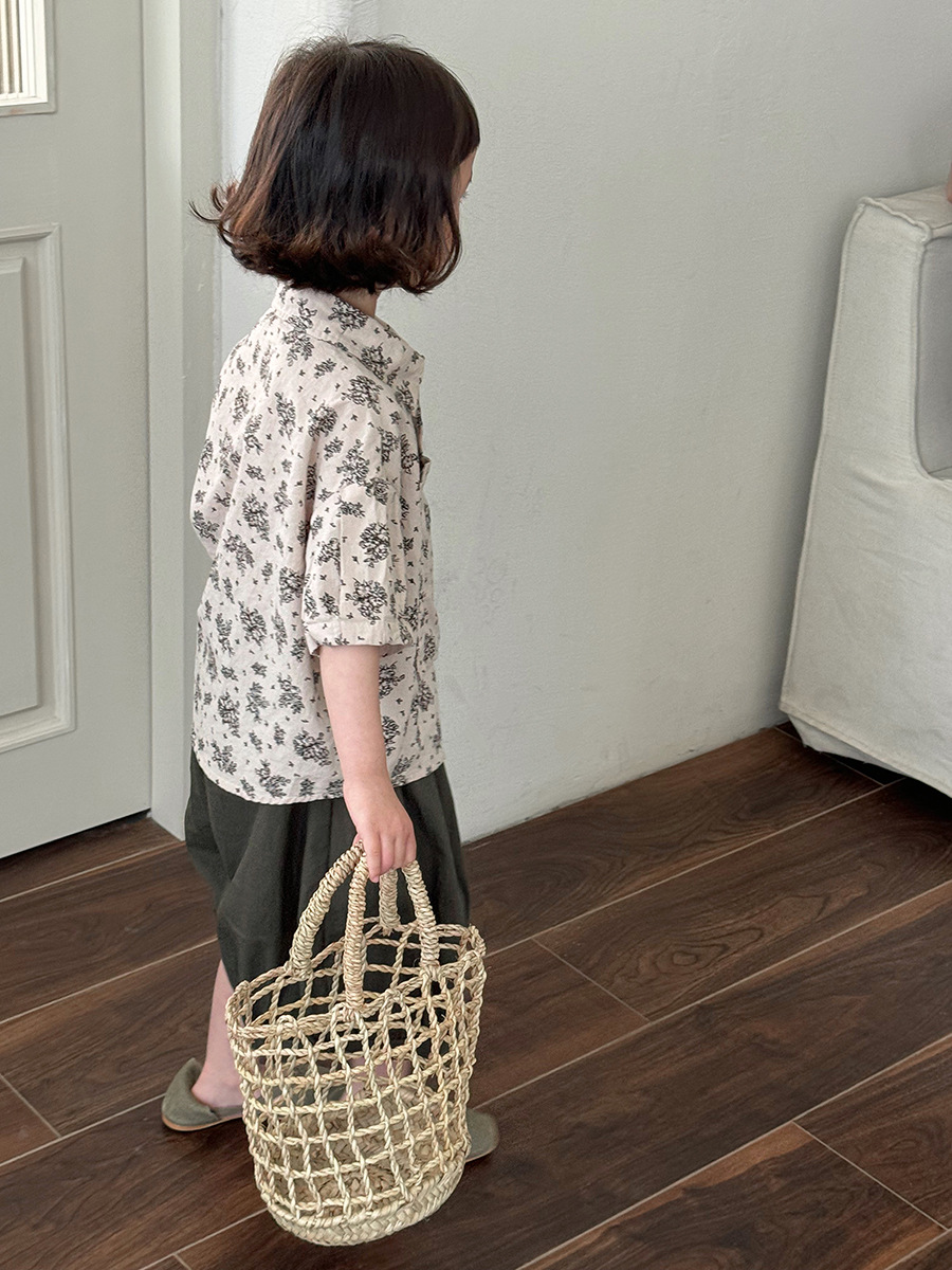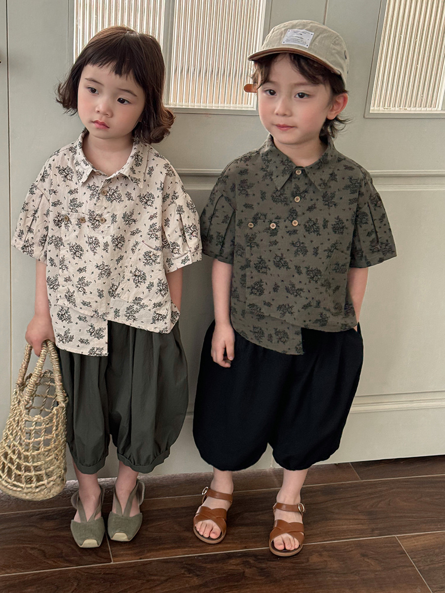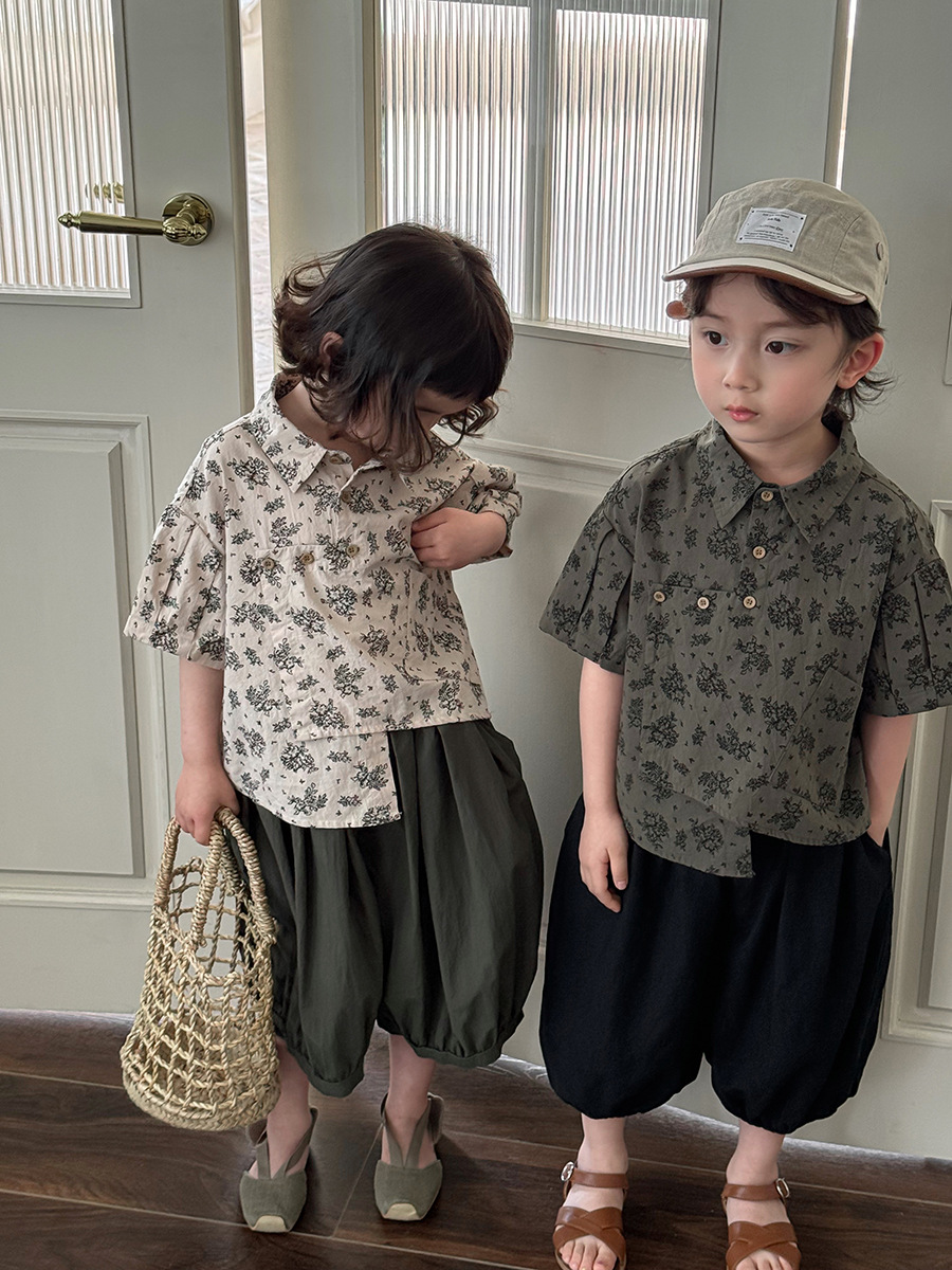 소년 소녀를위한 Jiaye 어린이 2025 어린이 여름 새 꽃 반팔 셔츠 아기 모리 레트로 셔츠 카디건스토어 가기