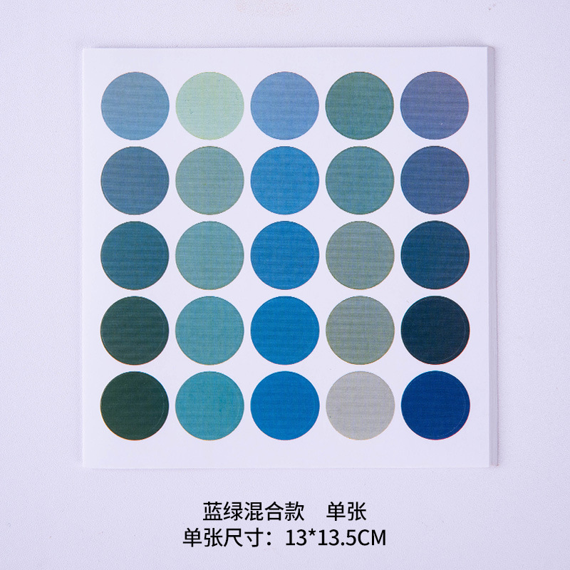 • 페이퍼백 모란디 원형 스티커 - 파란색과 녹색 혼합 스타일 - 전단지