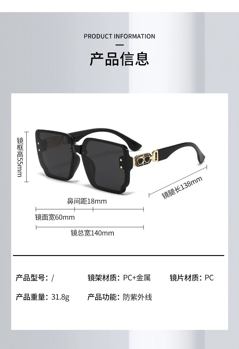 고화질 가벼운 럭셔리 편광 선글라스 여성 유럽과 미국의 고급 스퀘어 대형 프레임 선글라스 라이브 방송 같은 스타일 선 스크린 올 매치 안경스토어 가기
