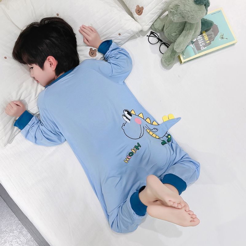 소년 원피스 잠옷 모달 봄, 가을 얇은 여름 긴팔 아기 소년 감기 방지 어린이 침낭 가정 의류스토어 가기
