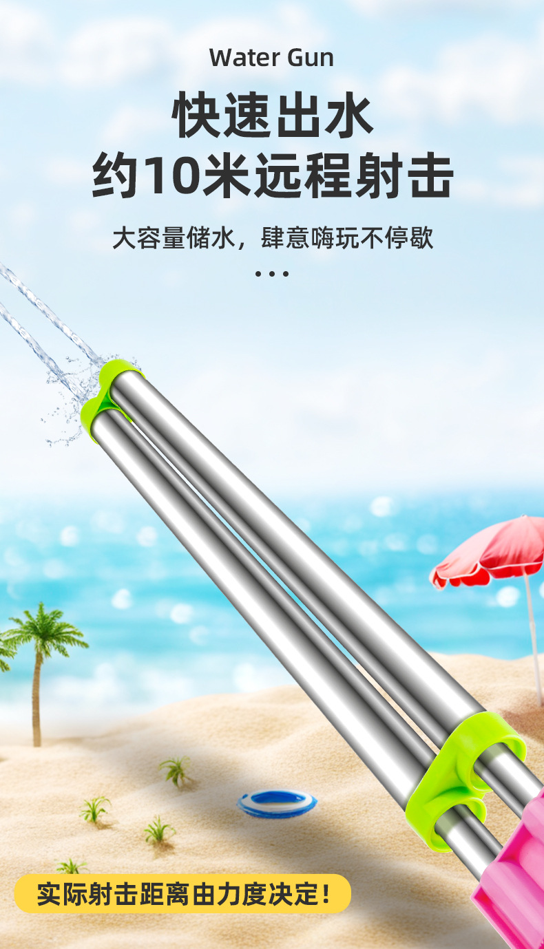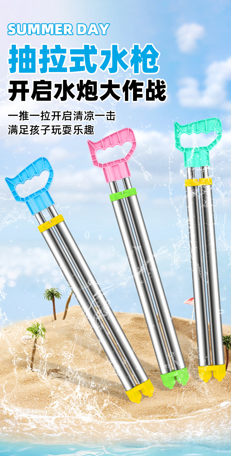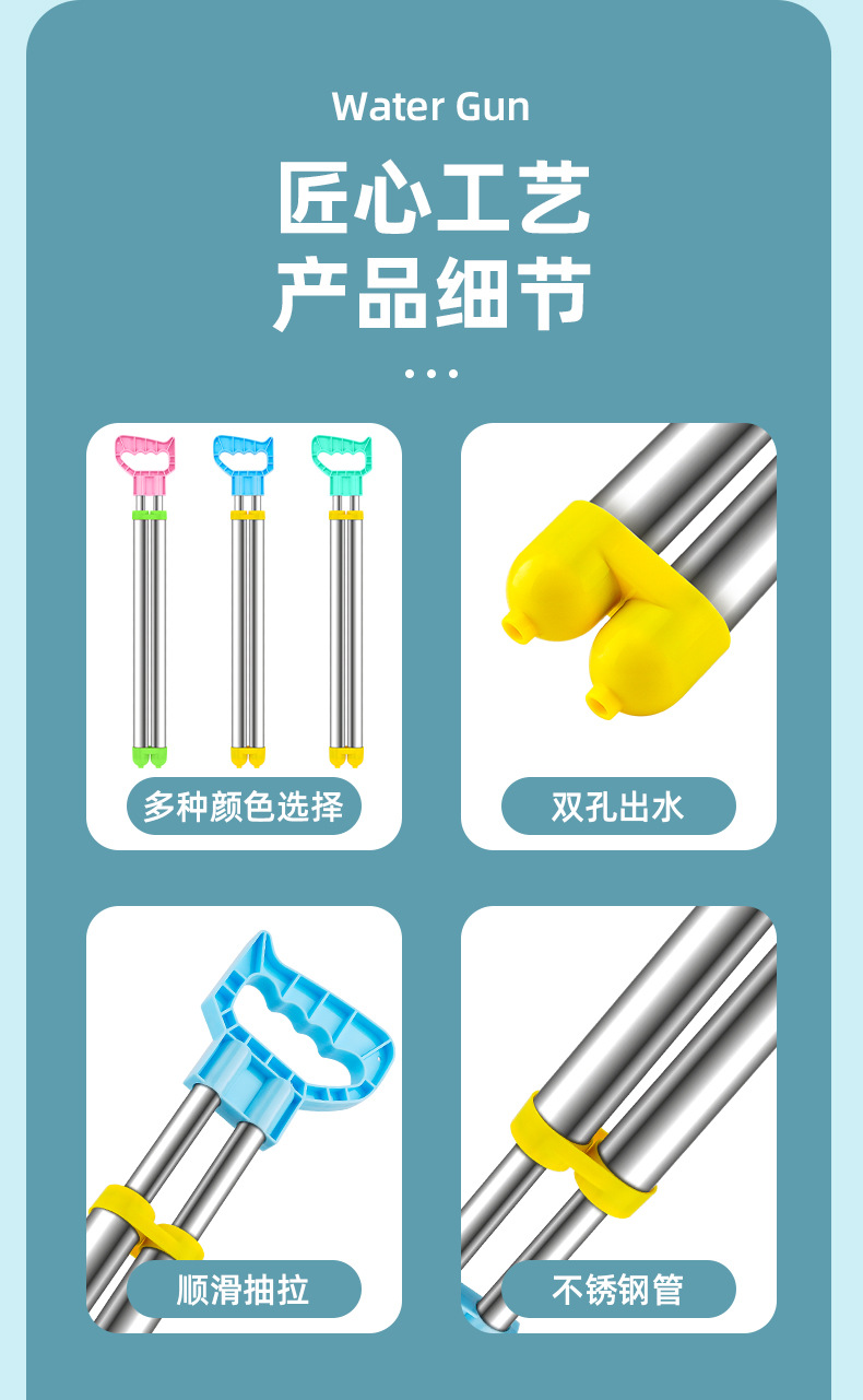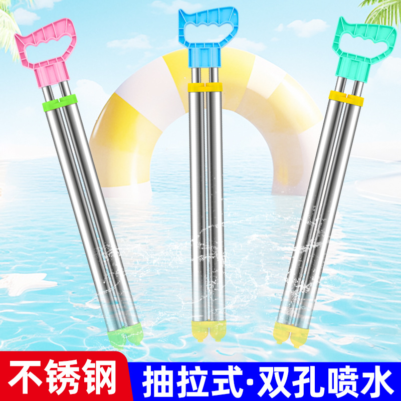 두꺼운 스테인레스 스틸 이중 튜브 풀아웃 물대포 물총 어린이 남성 물 뿌리기 축제 여름 래프팅 성인 장난감스토어 가기