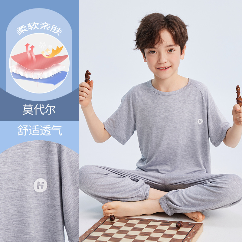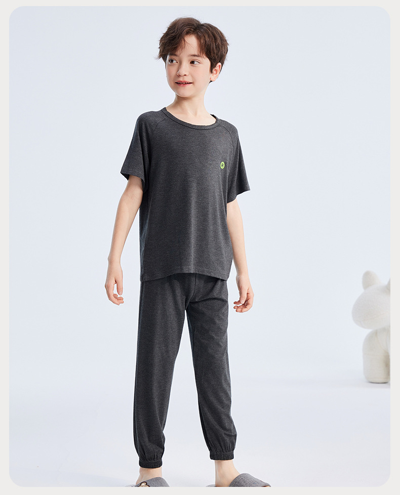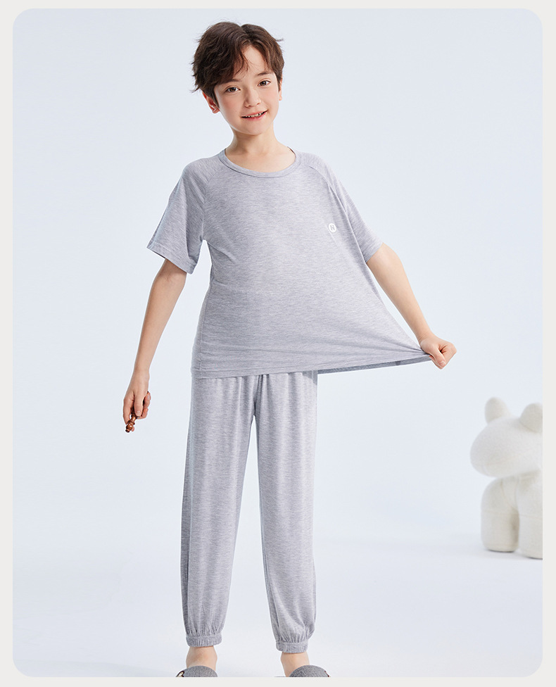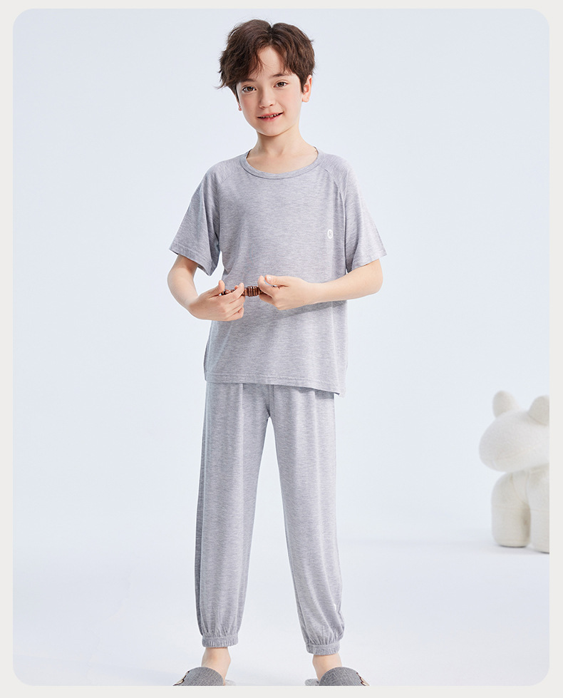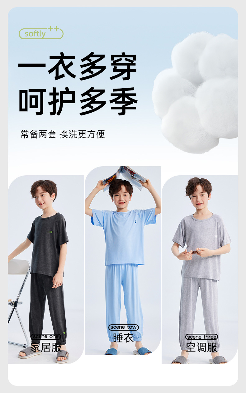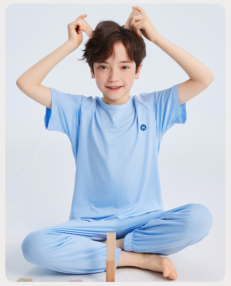 2026년 여름 신상 남아 모달 얇은 홈웨어 세트 남아 루즈핏 반팔 잠옷 투피스 세트스토어 가기