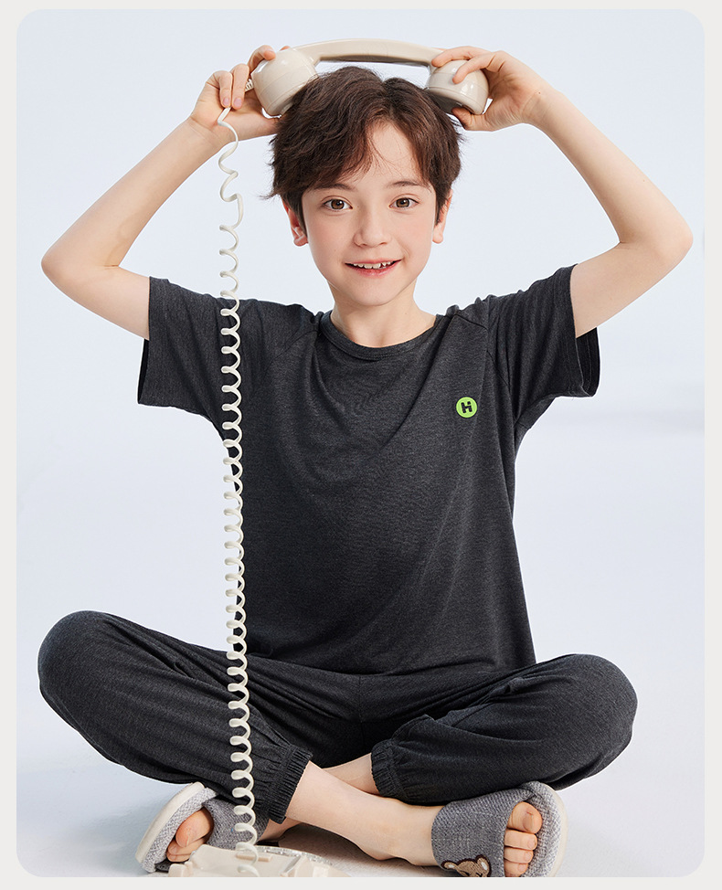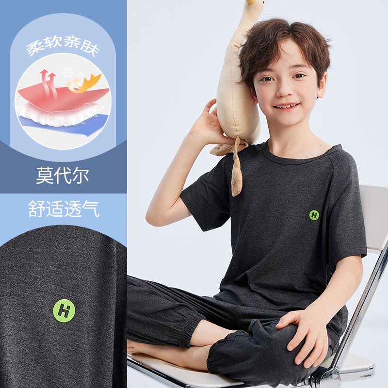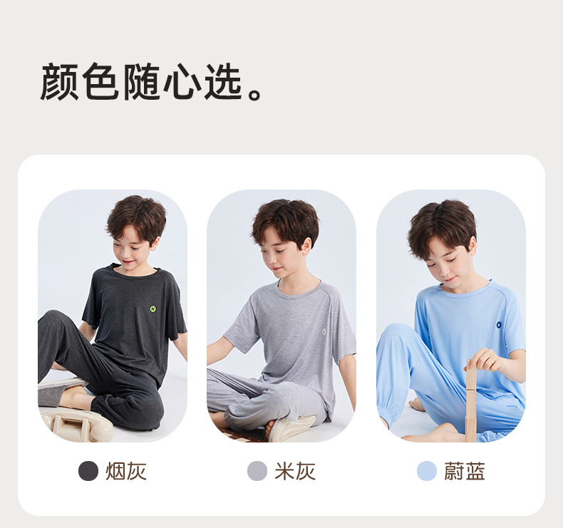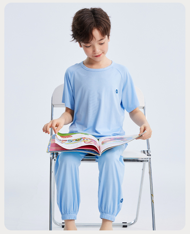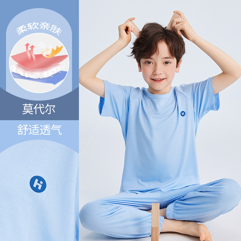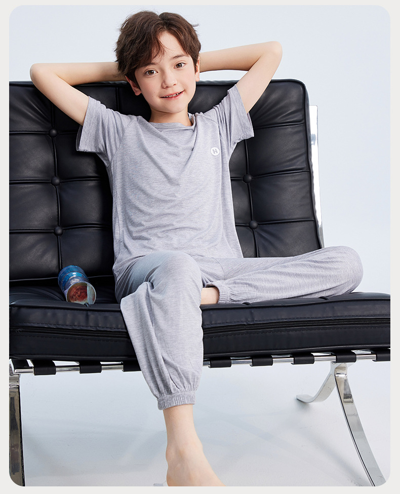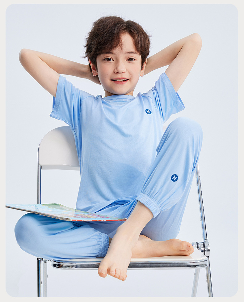 2026년 여름 신상 남아 모달 얇은 홈웨어 세트 남아 루즈핏 반팔 잠옷 투피스 세트스토어 가기