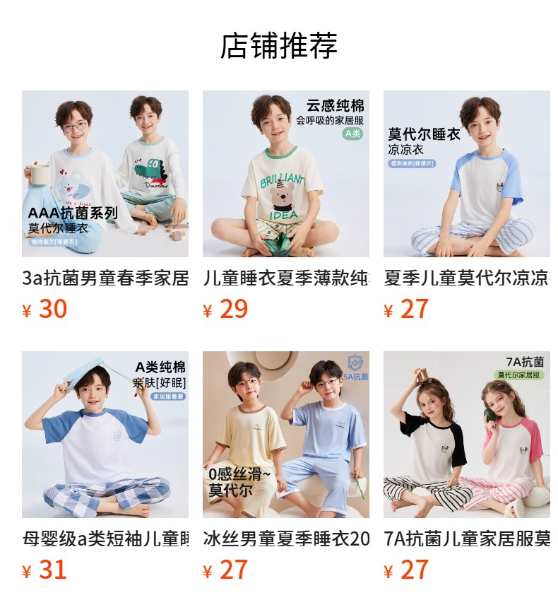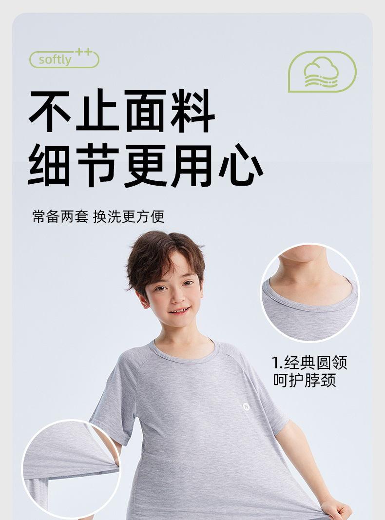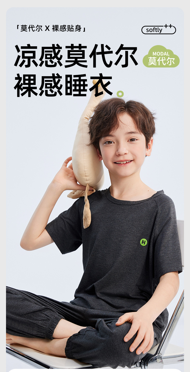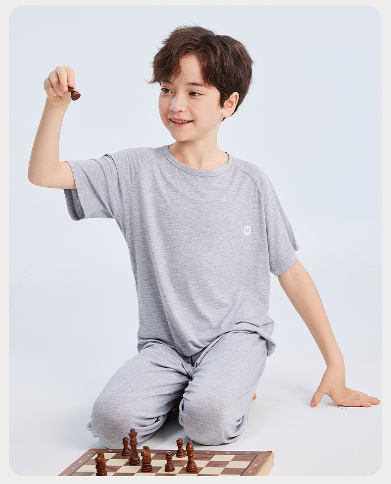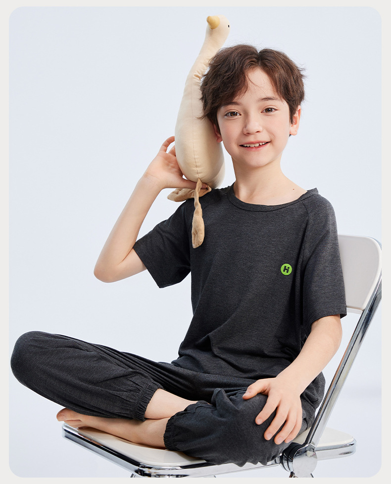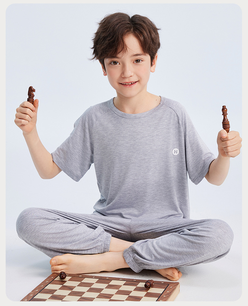 2026년 여름 신상 남아 모달 얇은 홈웨어 세트 남아 루즈핏 반팔 잠옷 투피스 세트스토어 가기