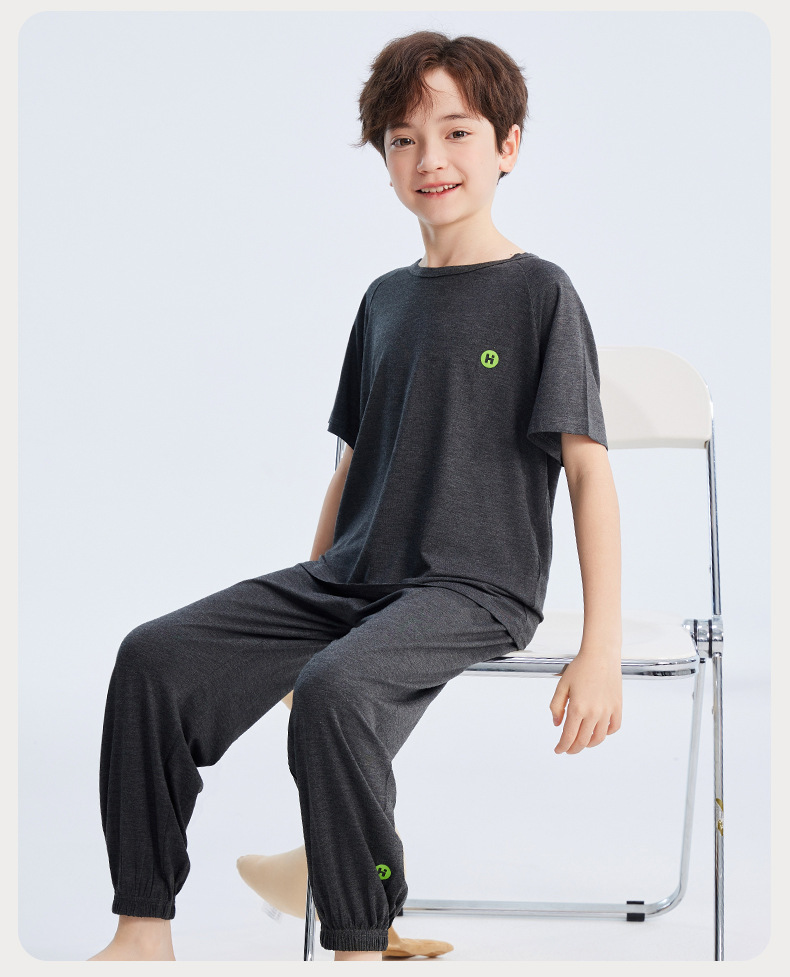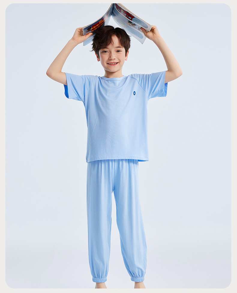 2026년 여름 신상 남아 모달 얇은 홈웨어 세트 남아 루즈핏 반팔 잠옷 투피스 세트