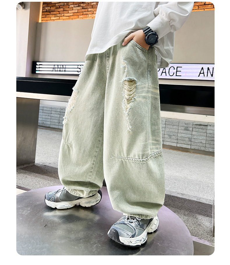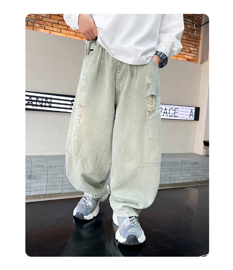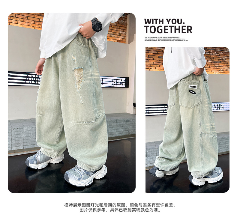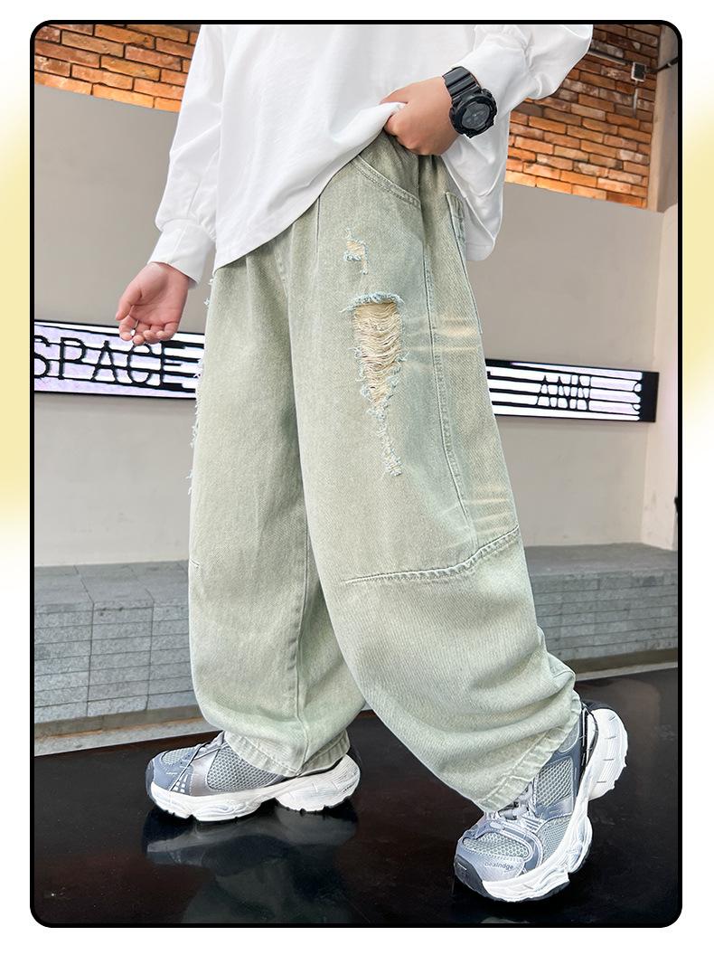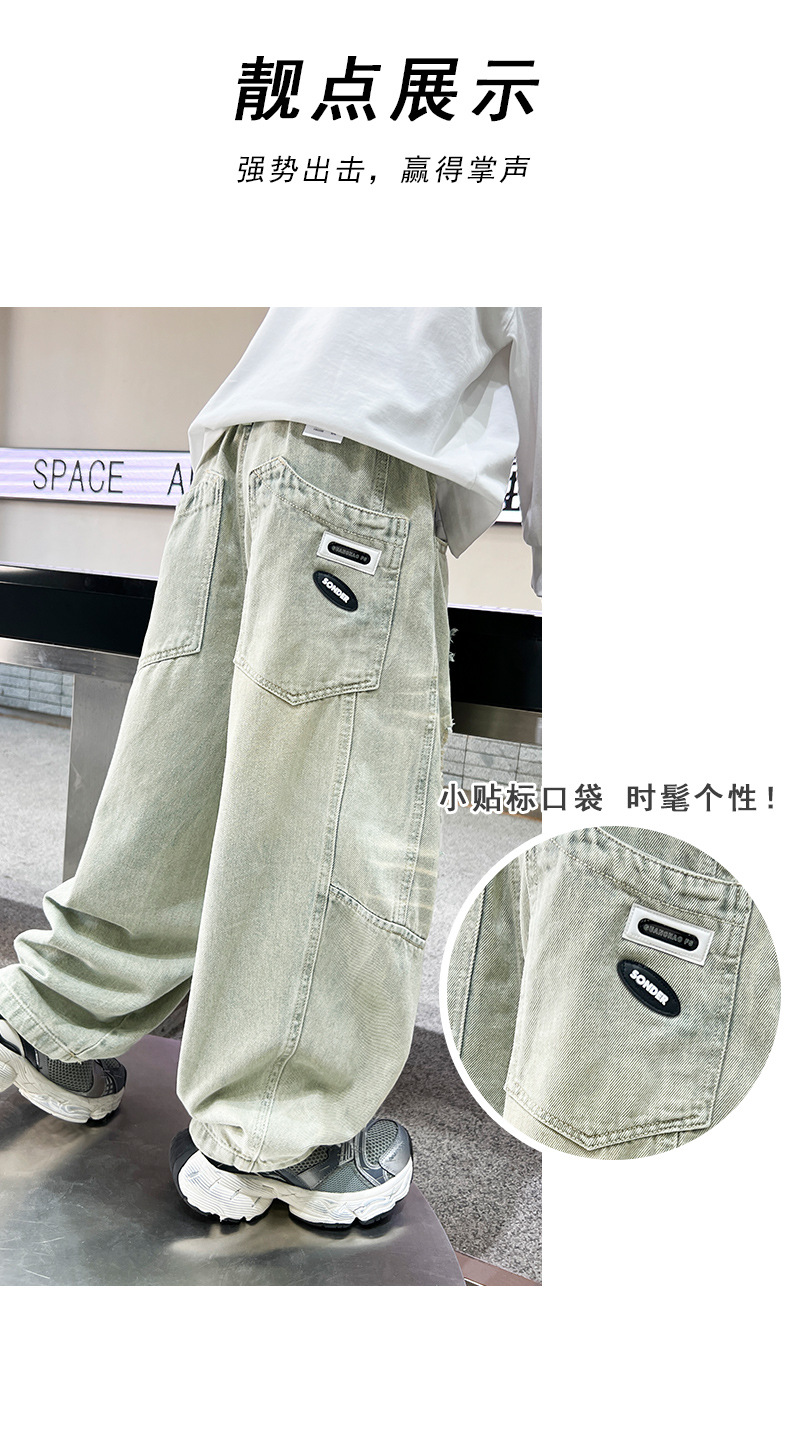아동복 소년 봄과 여름 바지 청바지 여름 얇은 2025 새로운 어린이 소년 여름 안티 모기 바지 유행스토어 가기