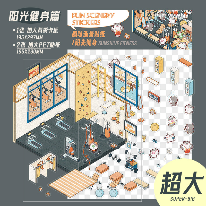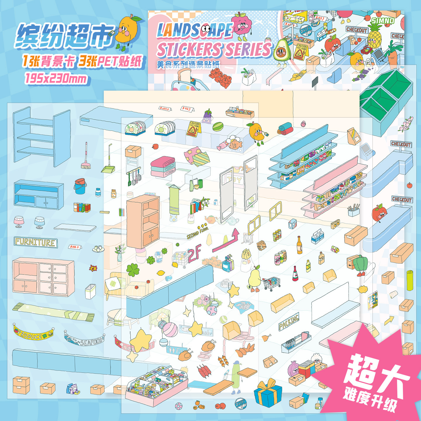 해외 인기 대형 3D 입체 인터랙티브 조경 스티커, 감압 미니어처 장면 스티커, 한국 DIY 펀 하우스스토어 가기