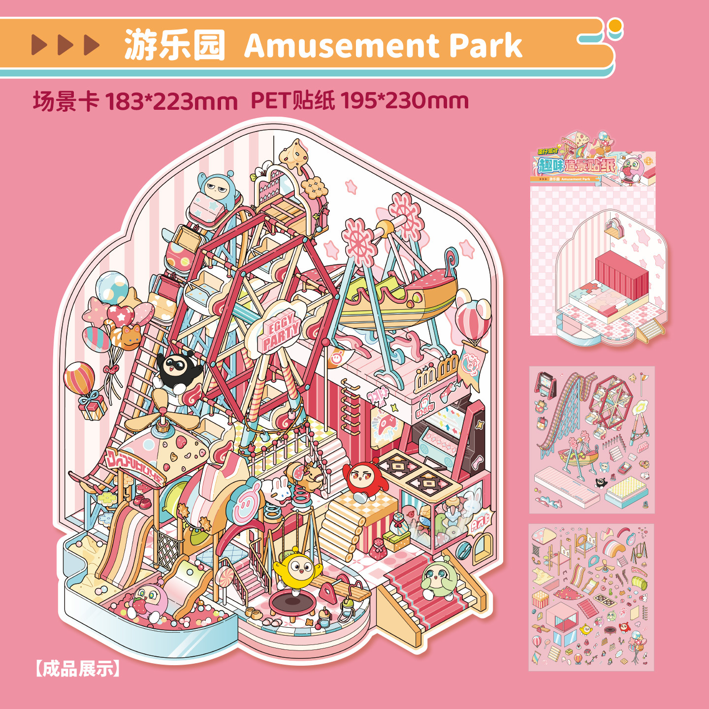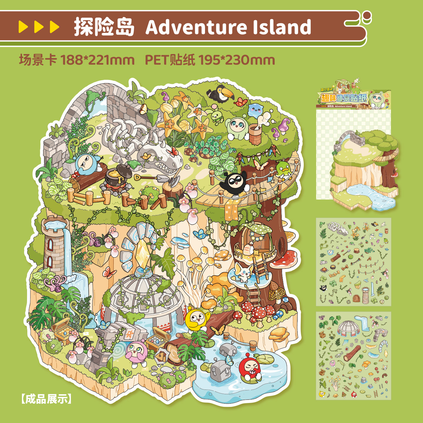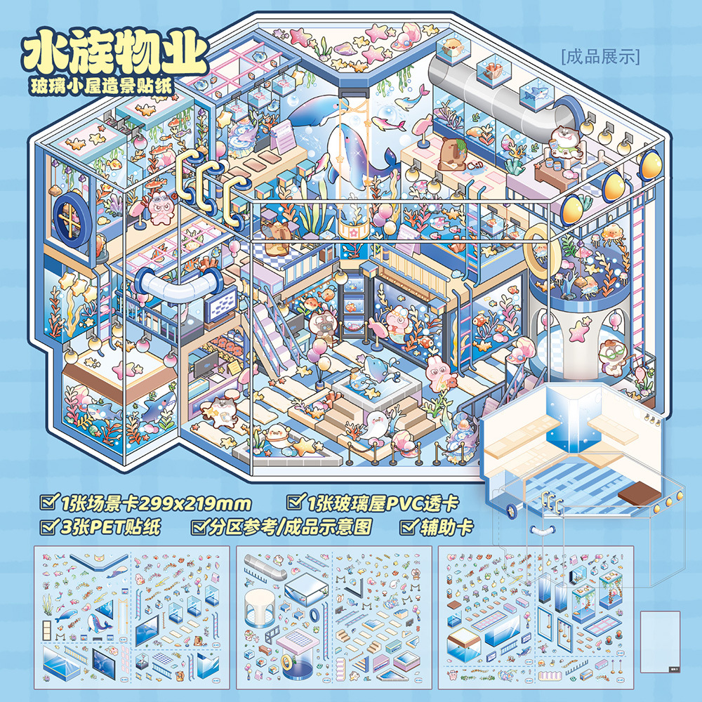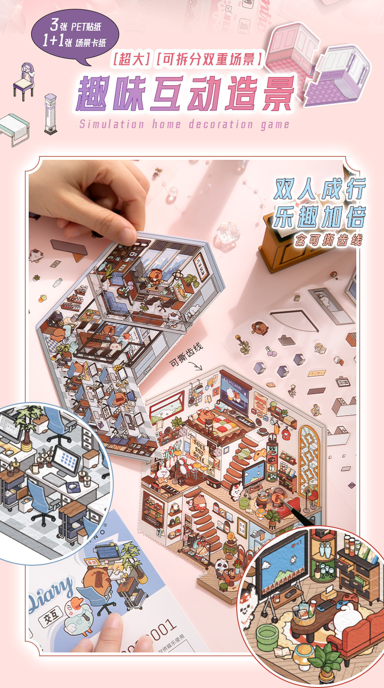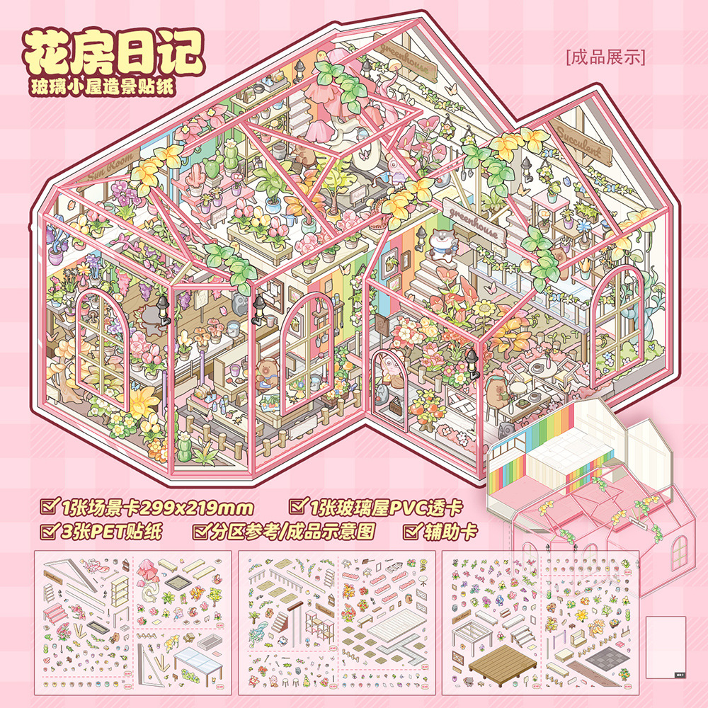 해외 인기 대형 3D 입체 인터랙티브 조경 스티커, 감압 미니어처 장면 스티커, 한국 DIY 펀 하우스