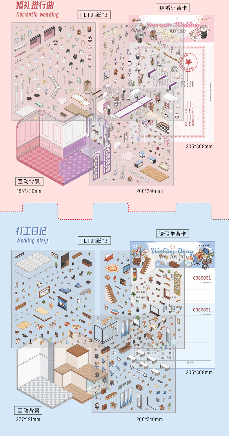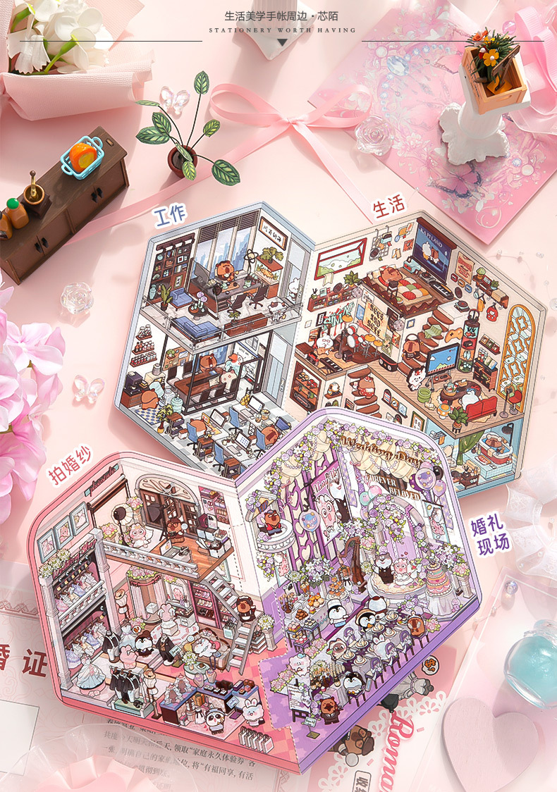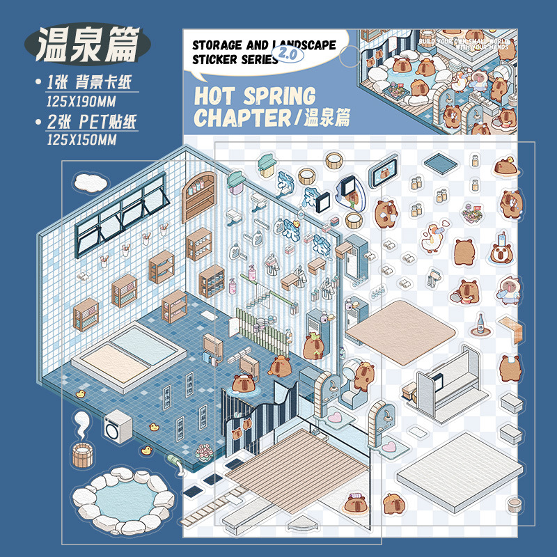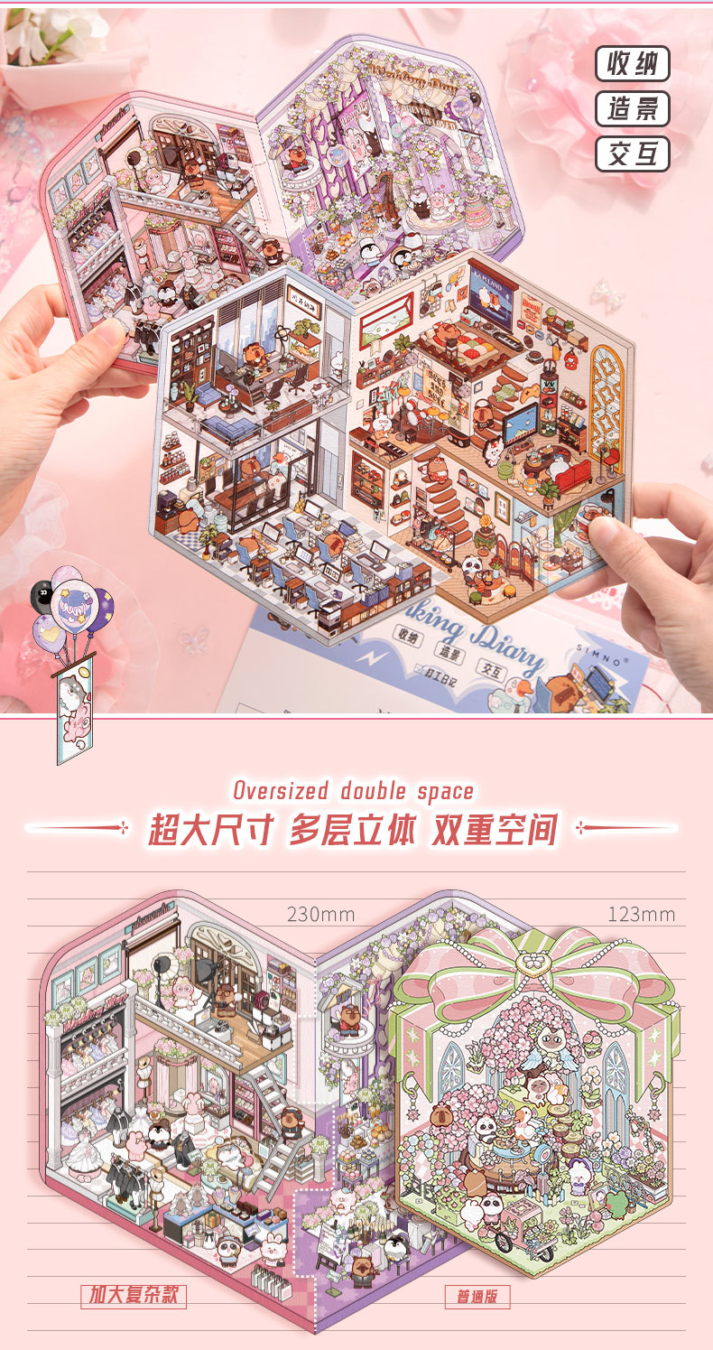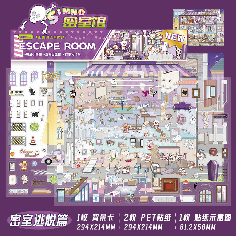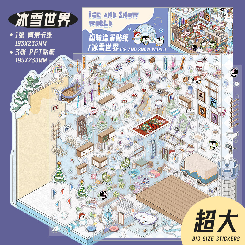 해외 인기 대형 3D 입체 인터랙티브 조경 스티커, 감압 미니어처 장면 스티커, 한국 DIY 펀 하우스