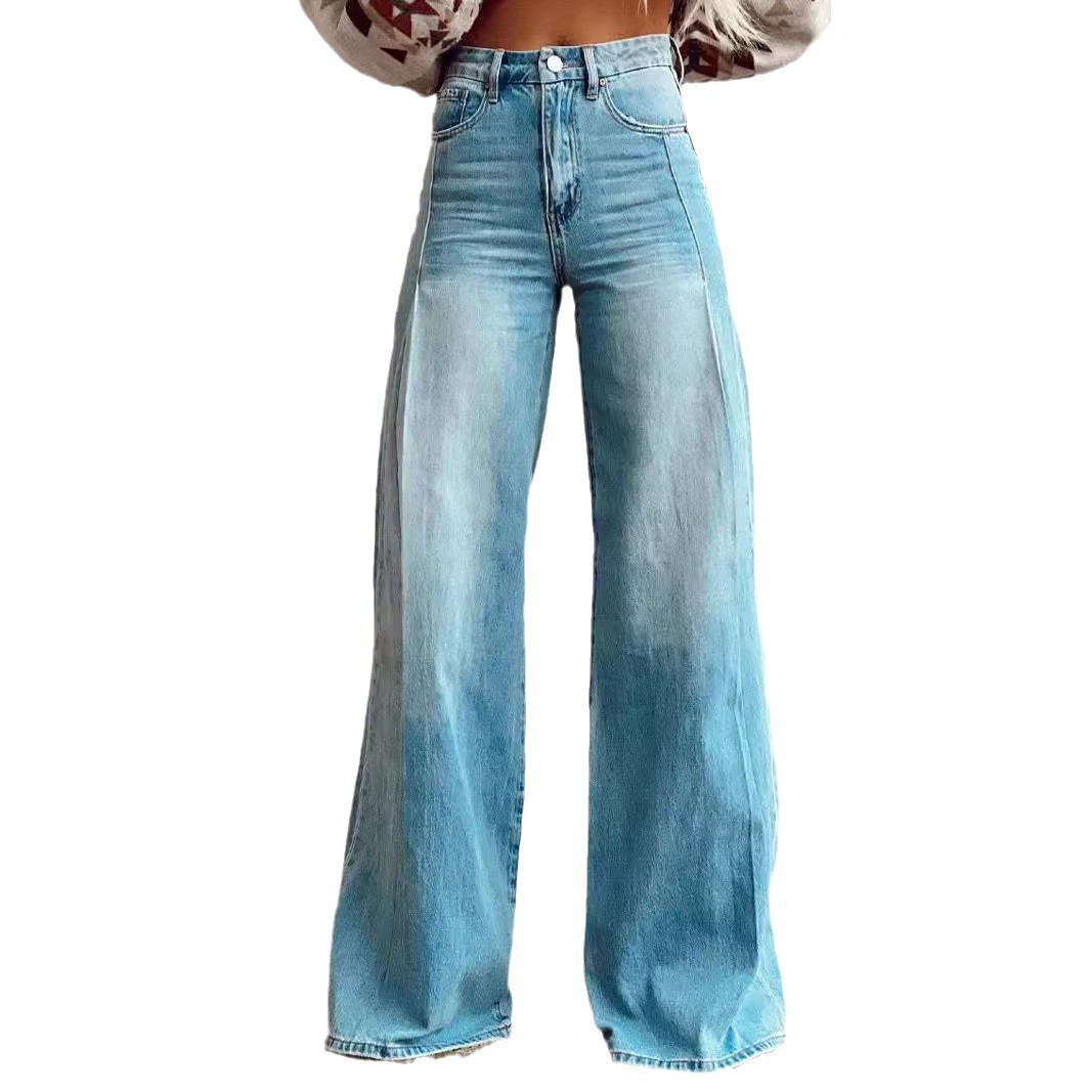 2025 대외 무역 국경 간 AliExpress ebay 유럽과 미국의 대외 무역 플러스 사이즈 여성 캐주얼 바지 얇은 모방 청바지 넓은 다리스토어 가기