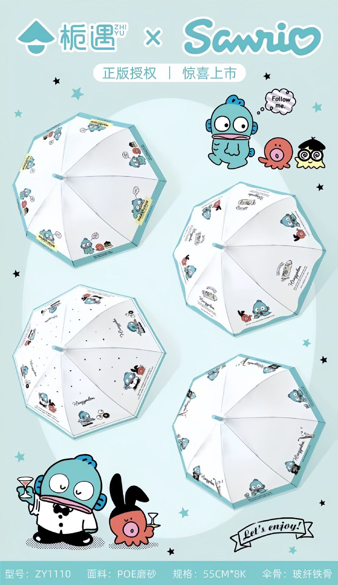 • 미운 물고기 한톤 수동 파라솔 - 두꺼운 비닐