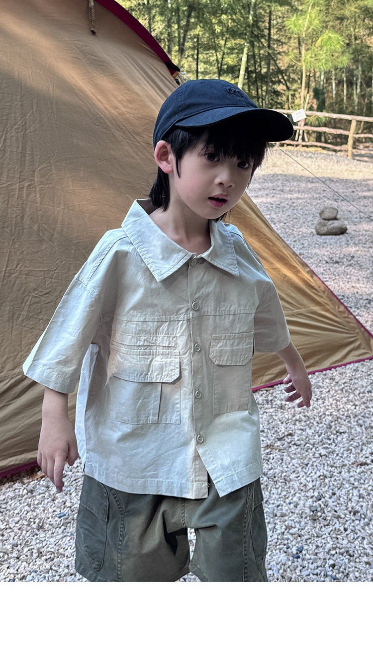 남학생 면 통기성 툴링 반팔 셔츠 봄과 여름 신상 어린이 최고 캐주얼 올매치 보이즈 야외 셔츠스토어 가기