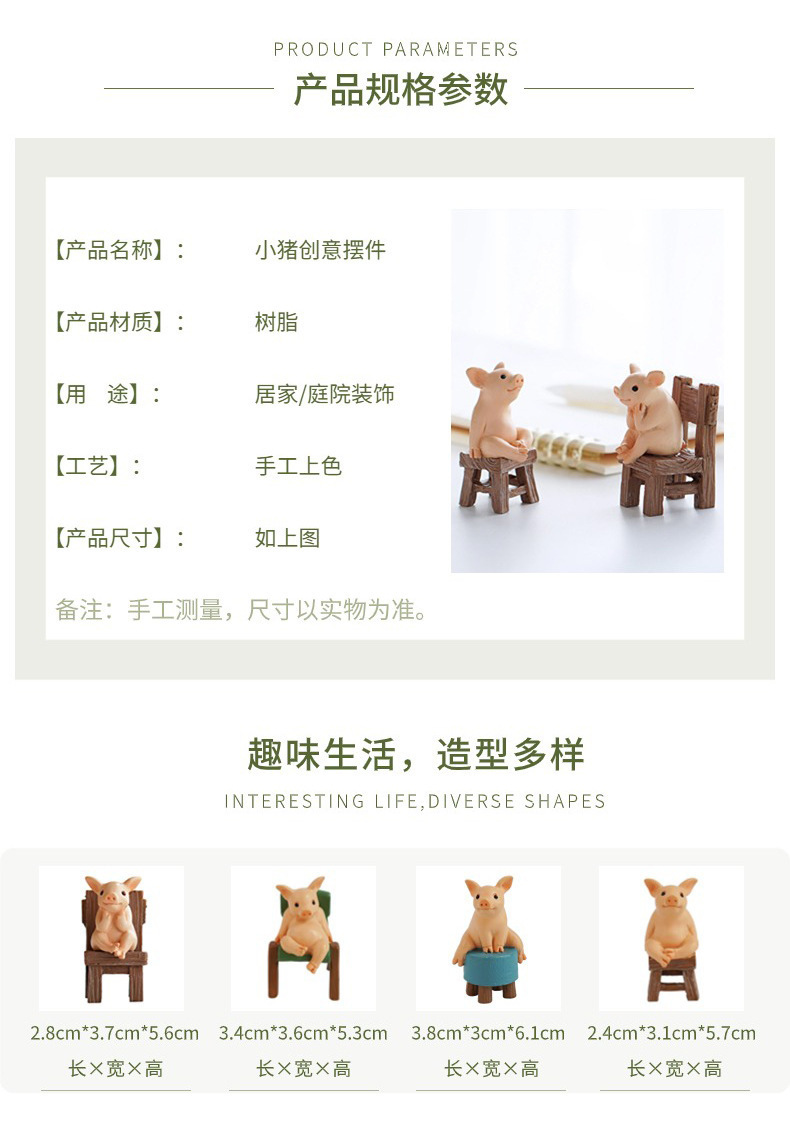 창의적이고 여유로운 돼지 데스크탑 장식품, 카페, 서점, 거실, 욕실, 책상, 자동차 장식, 선물 및 감상용스토어 가기