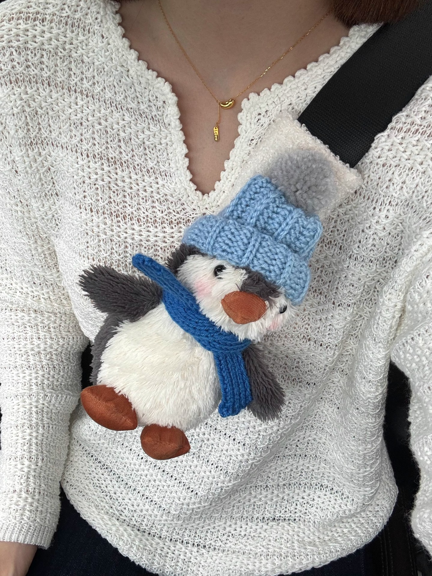 • 파란색 모자 펭귄 어깨 패드(플러시 스타일)