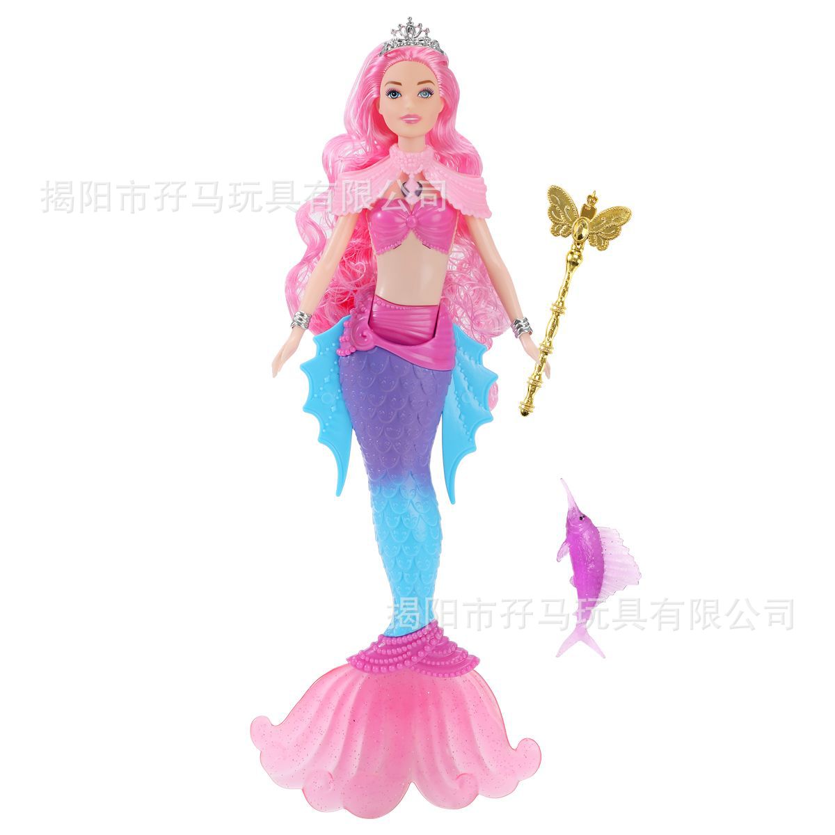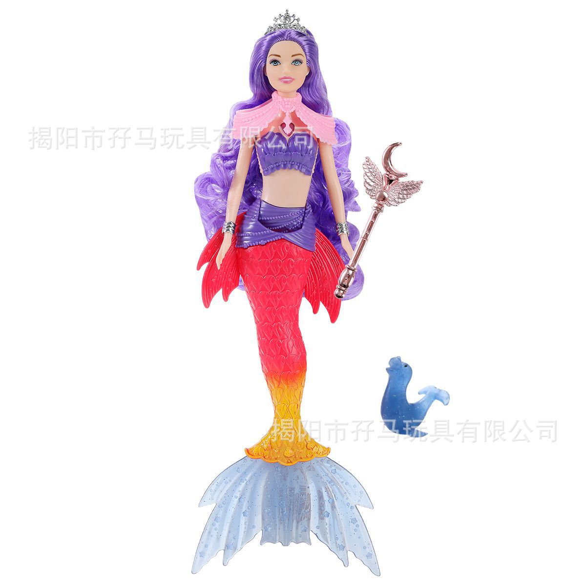 외국 무역 30cm 11.5inch 라이트 앤 뮤직 인어 솔리드 컬러 피쉬테일 소녀 놀이용 선물 가방 인형스토어 가기