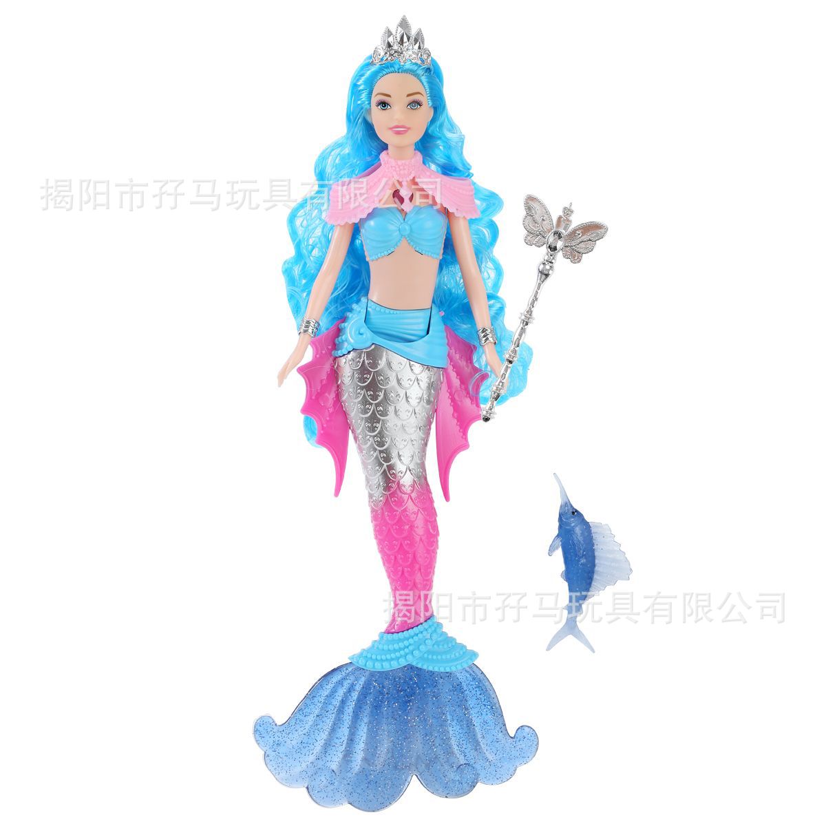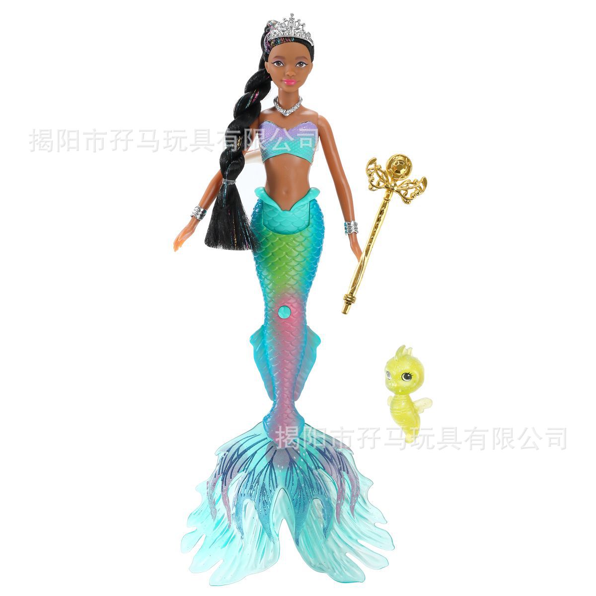 외국 무역 30cm 11.5inch 라이트 앤 뮤직 인어 솔리드 컬러 피쉬테일 소녀 놀이용 선물 가방 인형