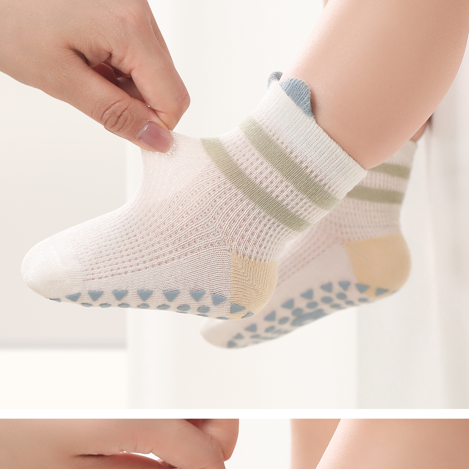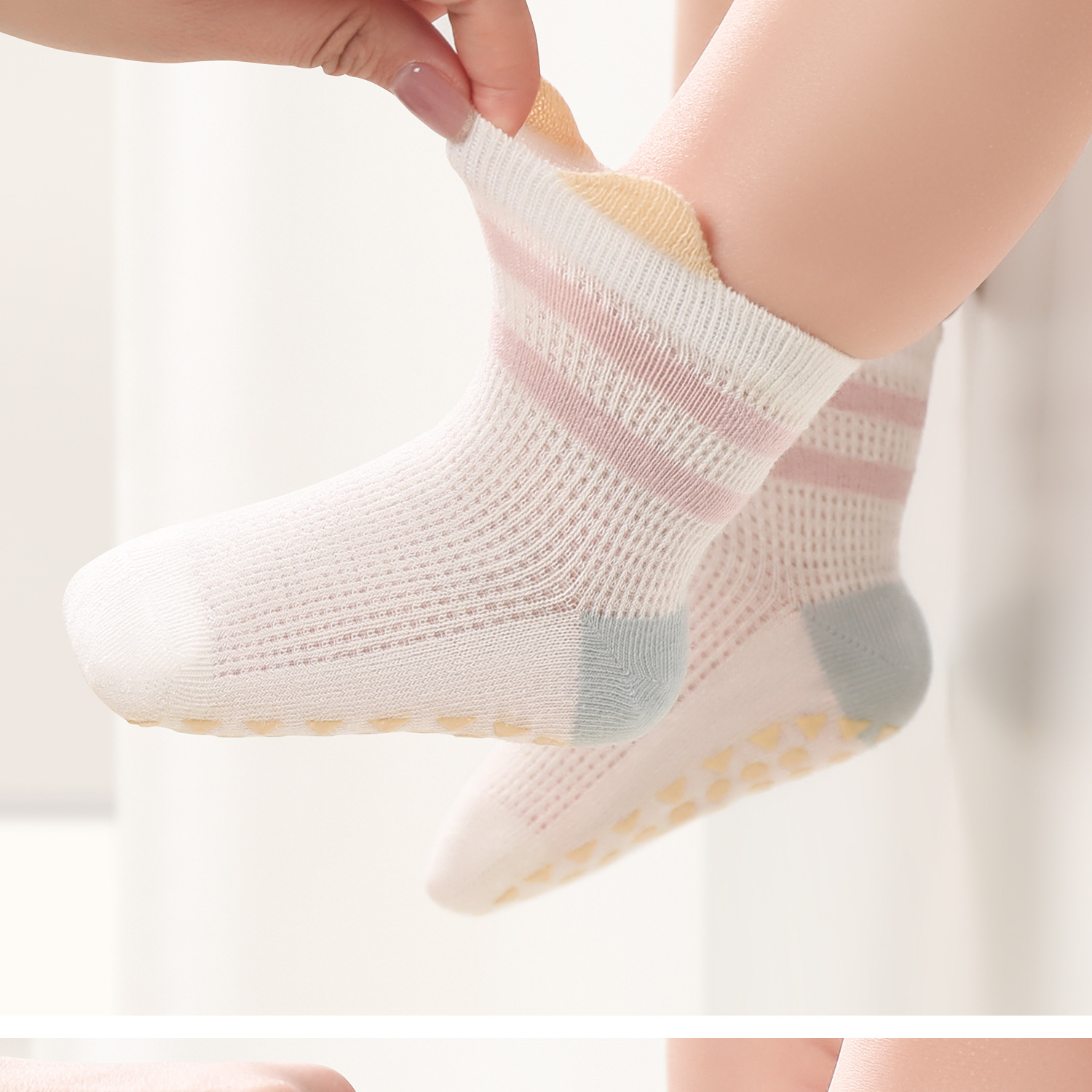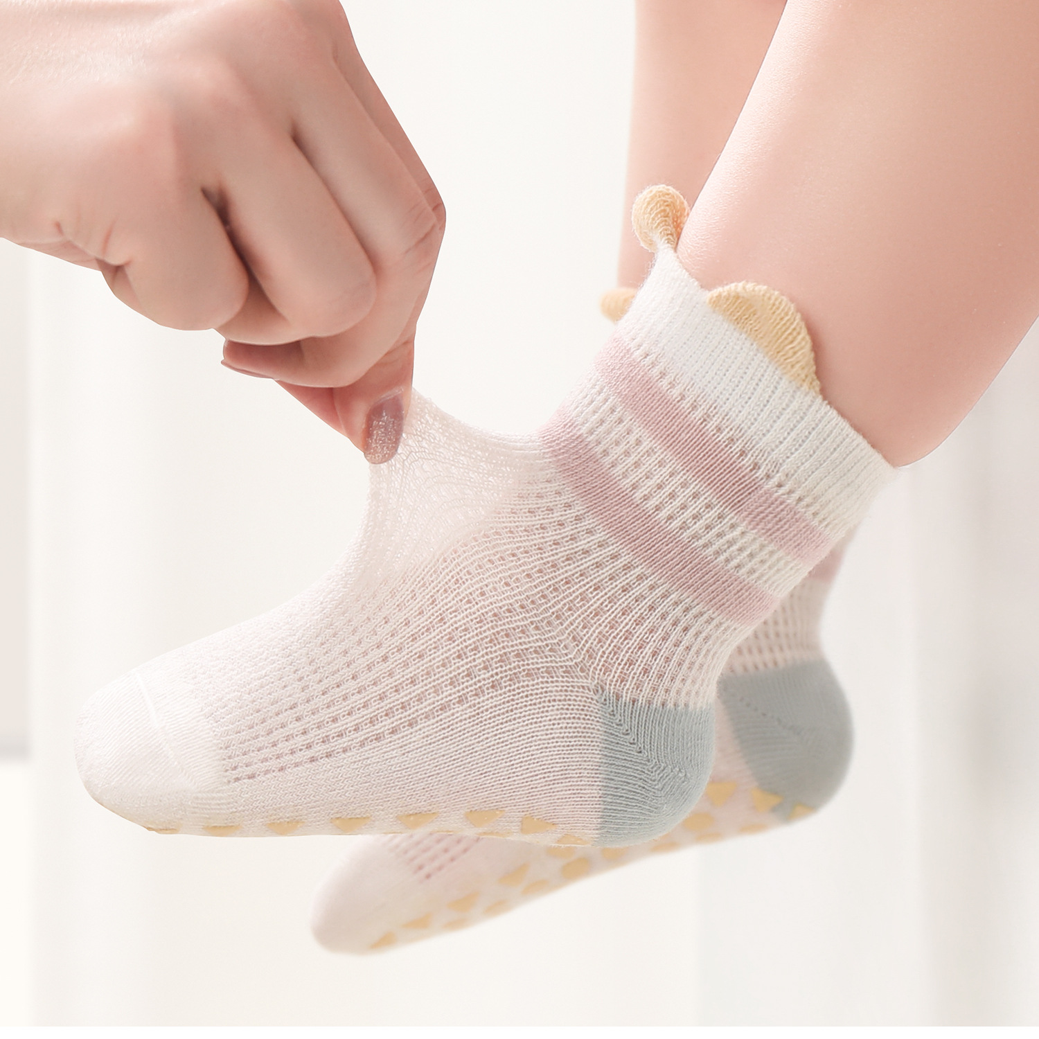 여자 양말 여름 얇은 바닥 양말 다리가없는 메쉬 중간 튜브 클래스 A 면 양말 아기 여름 양말 작은 달