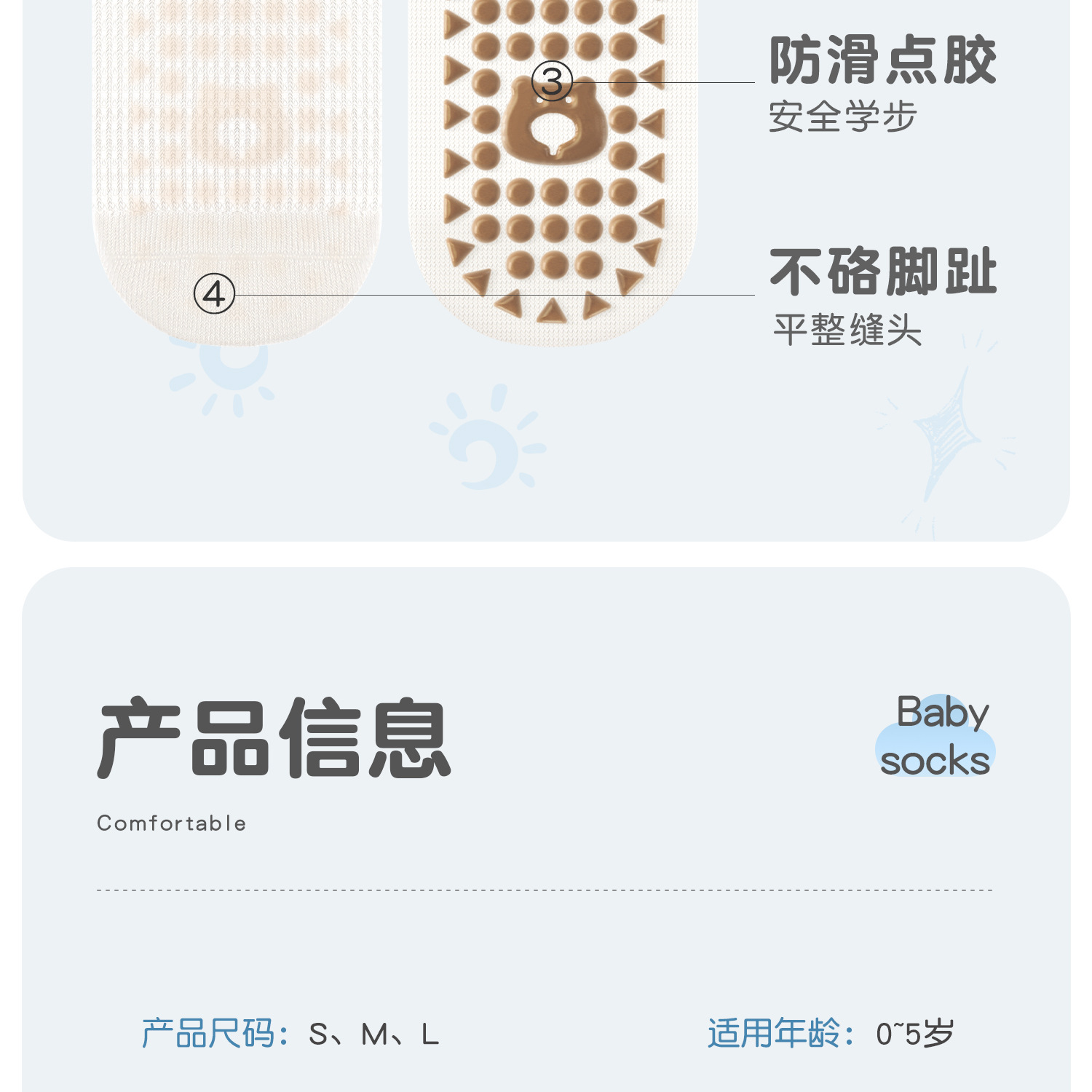 • S(발 길이 7-12cm에 적합) 0-1세
