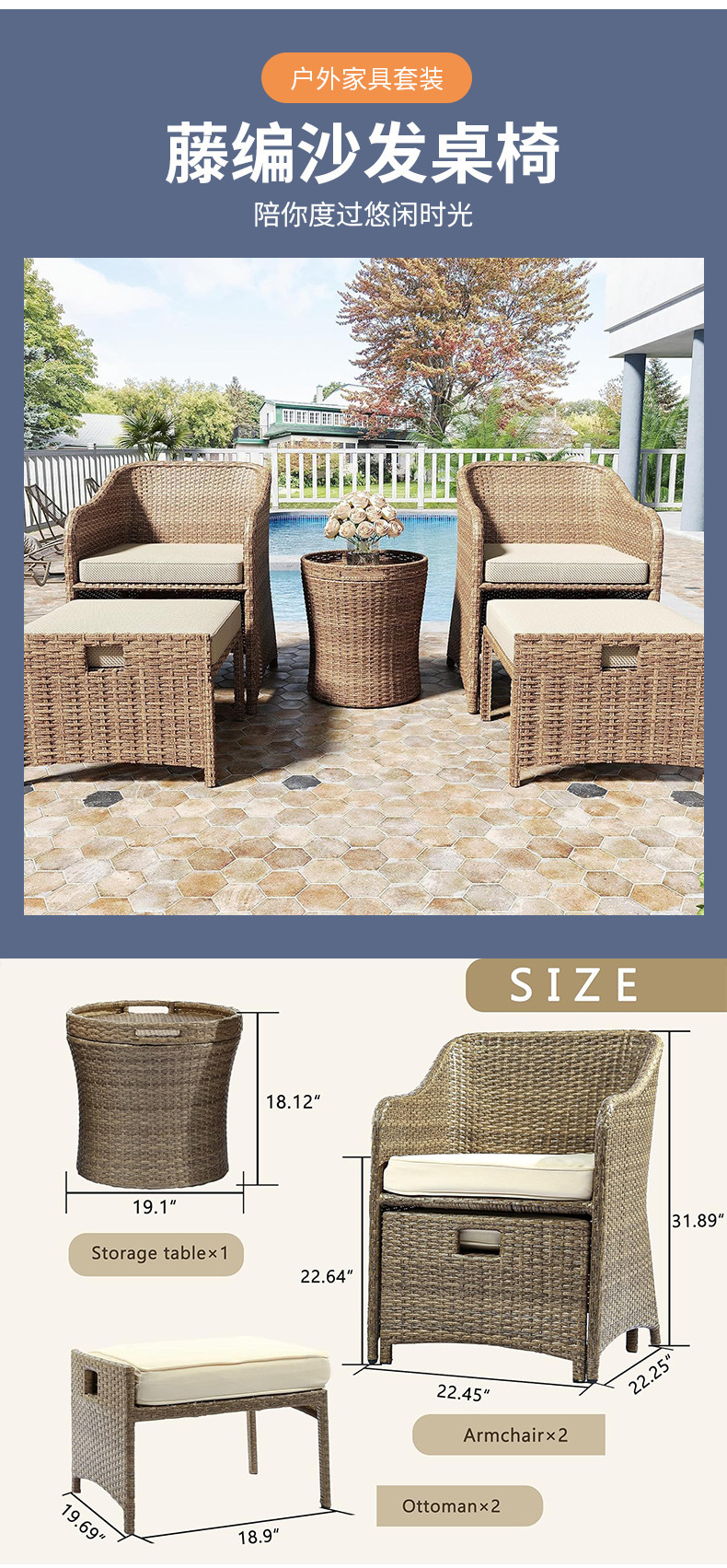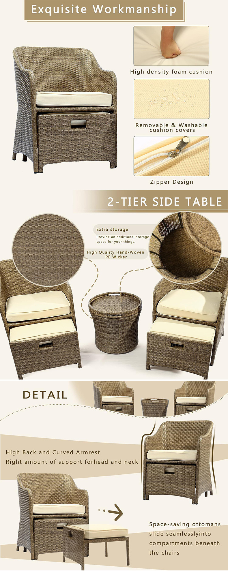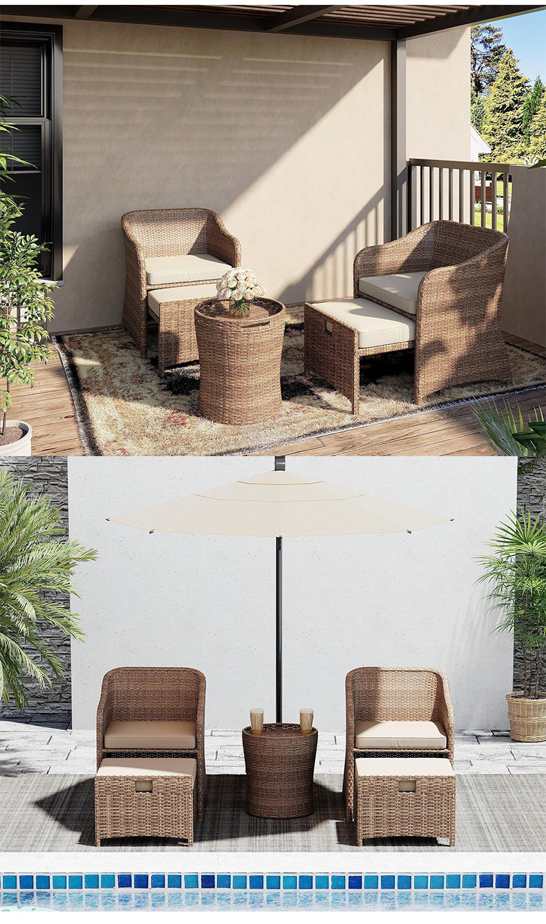 발코니 테이블 1개, 의자 2개, 등나무 의자, 야외 안뜰 레저 소파 조합, 방수 및 자외선 차단 발코니 차 식탁