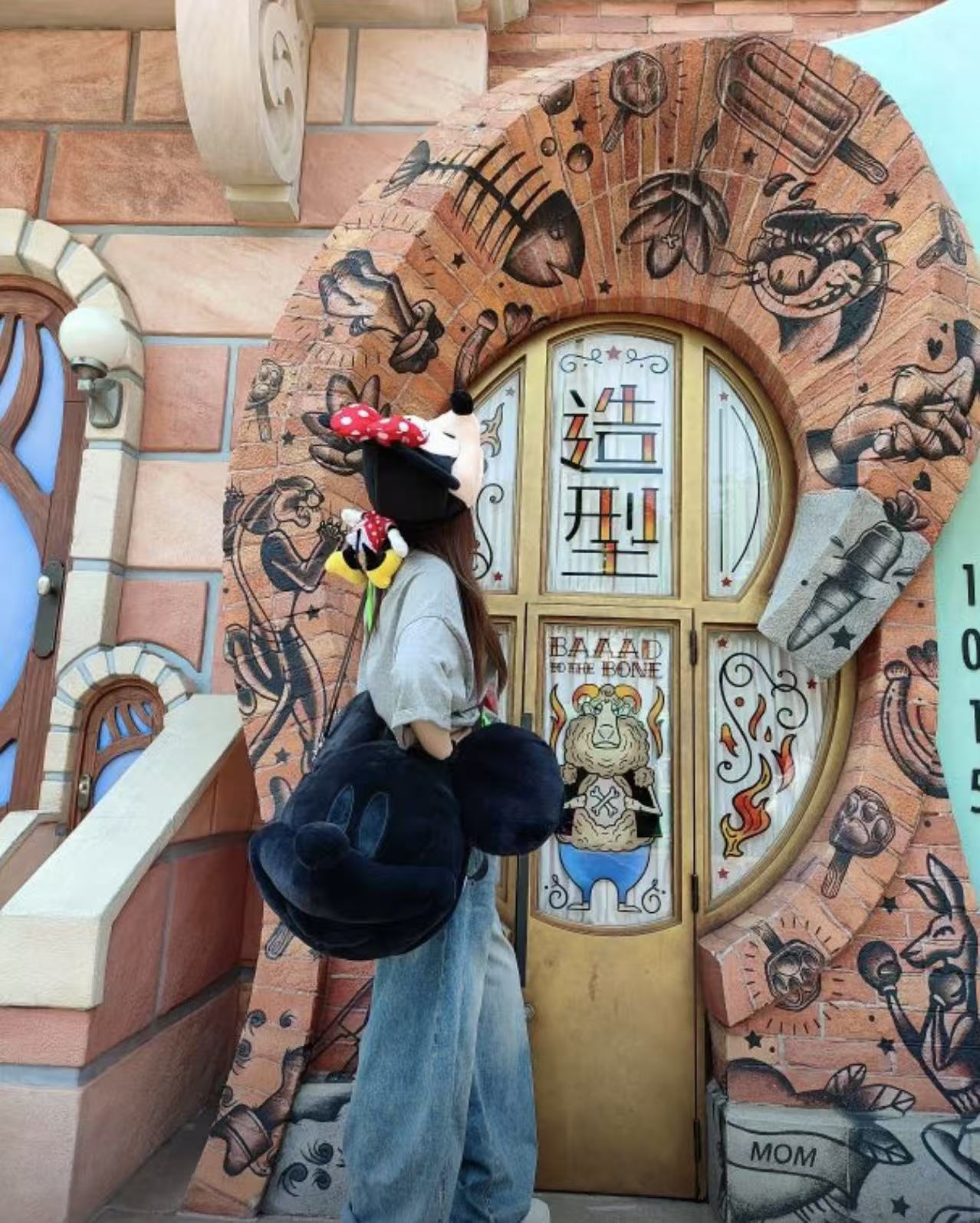 2025 부드러운 귀여운 달콤한 소녀 JK 배낭 일본 만화 미키 마우스 큰 얼굴 가방 봉제 배낭 여성스토어 가기