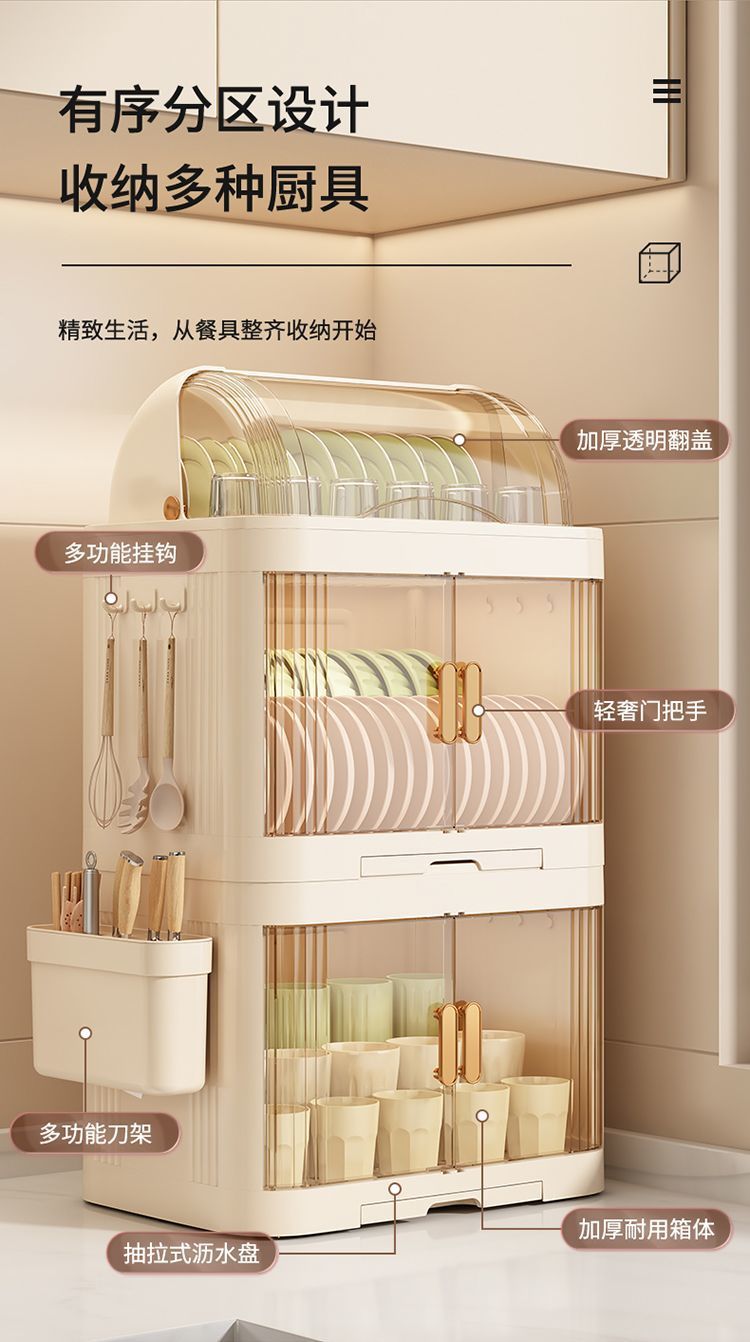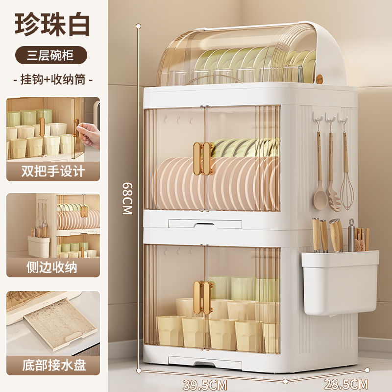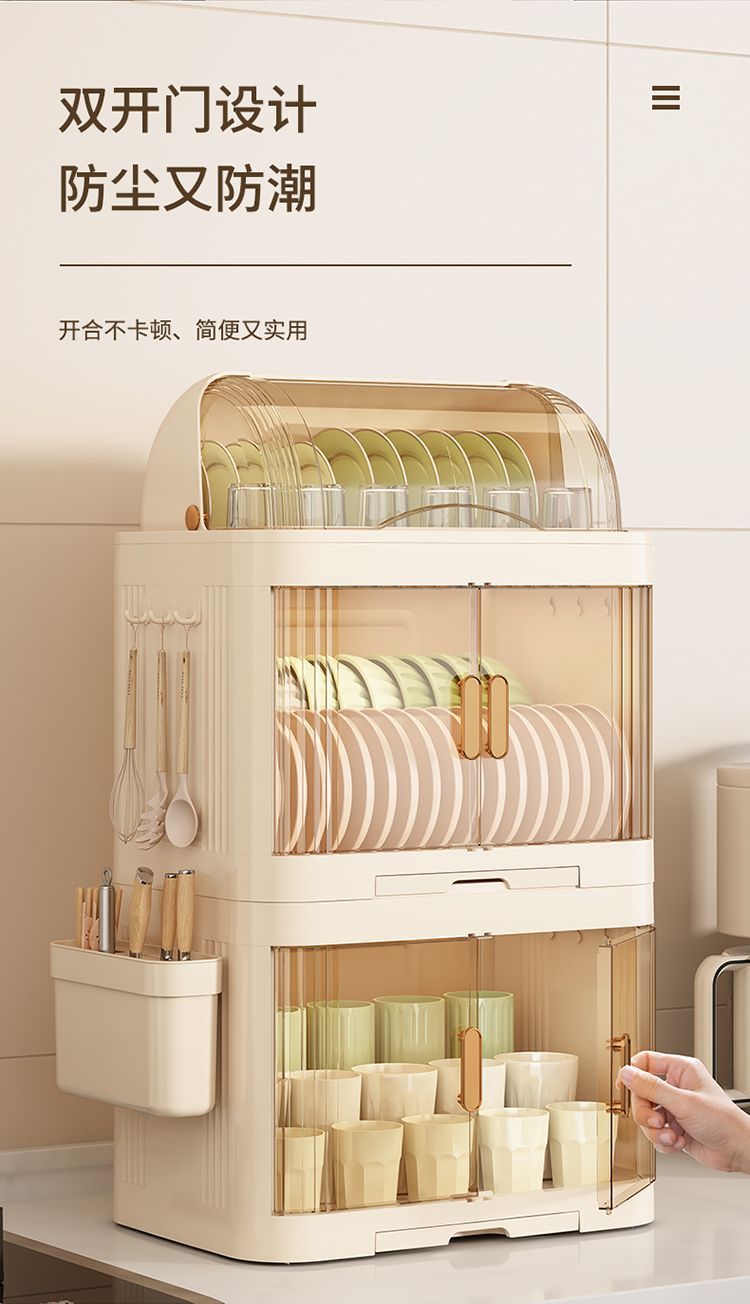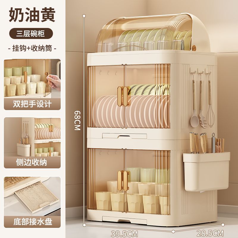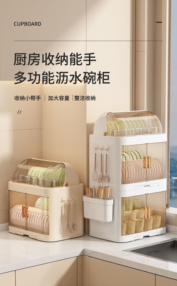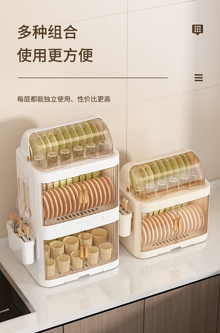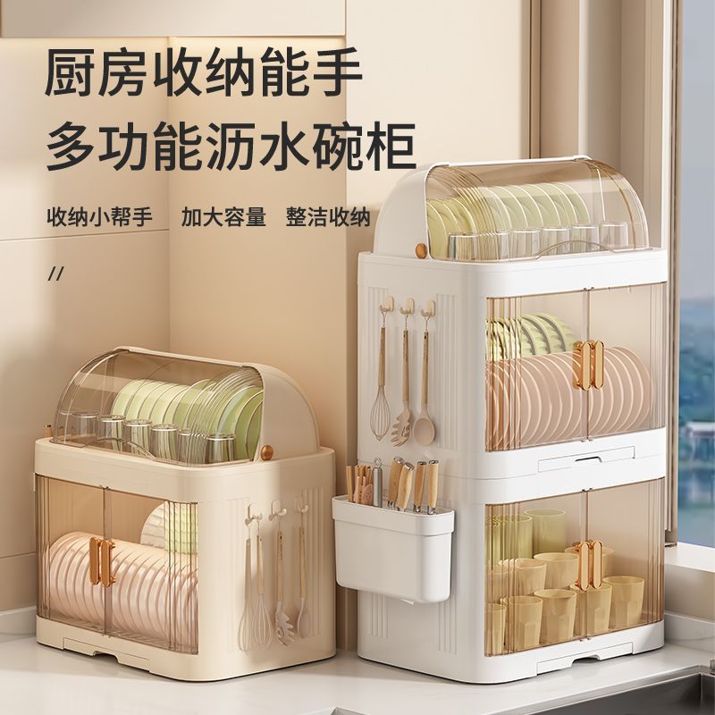 뚜껑이 있는 가정용 다층 식기 보관함, 주방 찬장, 접시 걸이, 접시 배수 보관함