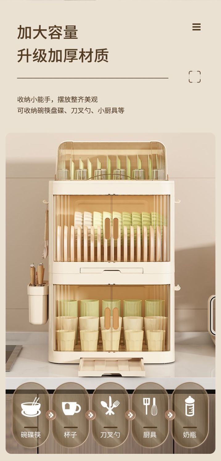 뚜껑이 있는 가정용 다층 식기 보관함, 주방 찬장, 접시 걸이, 접시 배수 보관함스토어 가기