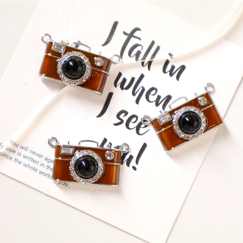 새로운 레트로 다크 브라운 카메라 더블 교수형 펜던트 수제 DIY 팔찌 목걸이 키체인 쥬얼리