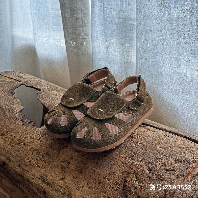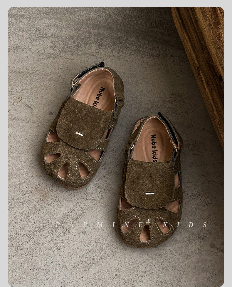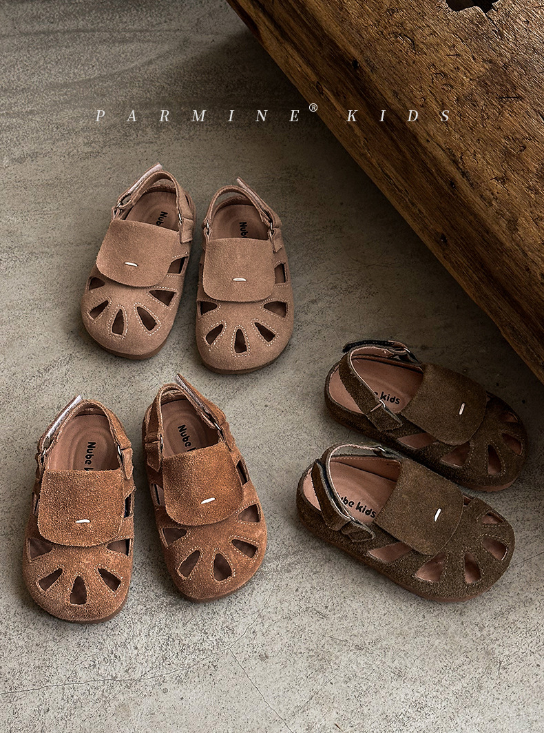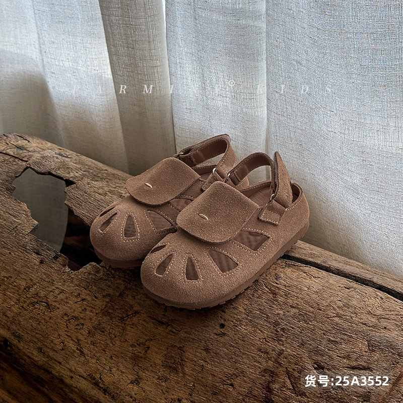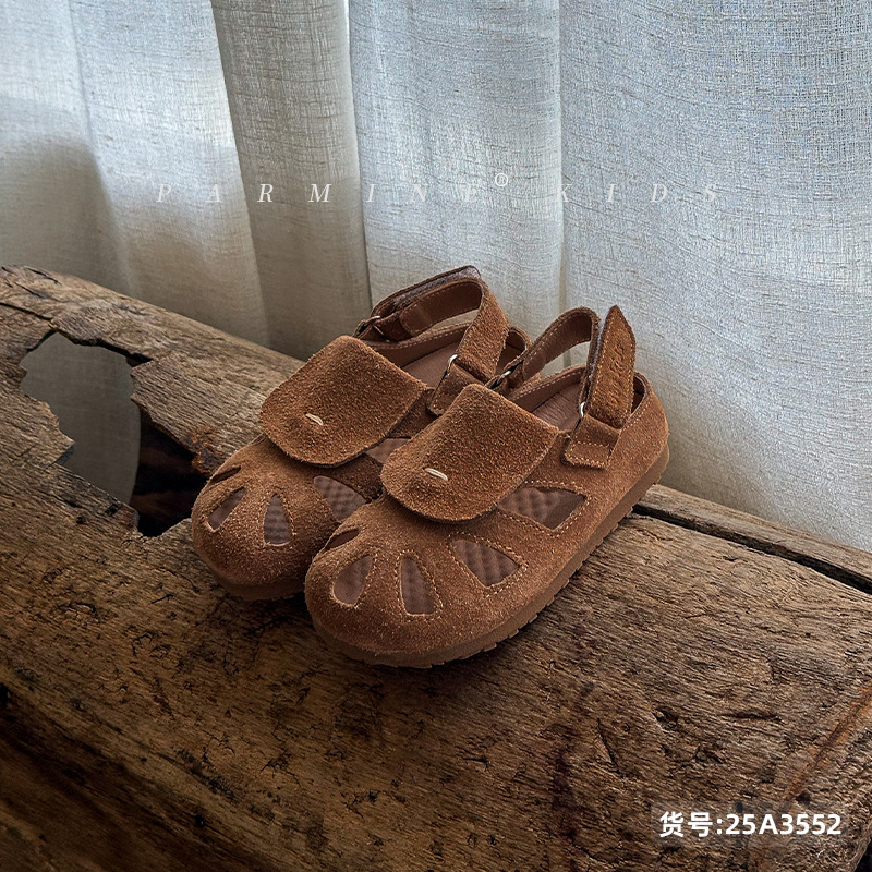 정품 가죽 아동용 영국풍 레트로 샌들, 여름 캐주얼 만능 신상품, 남아 여아 유아용, 해변용, 원피스 디자인, 직배송스토어 가기