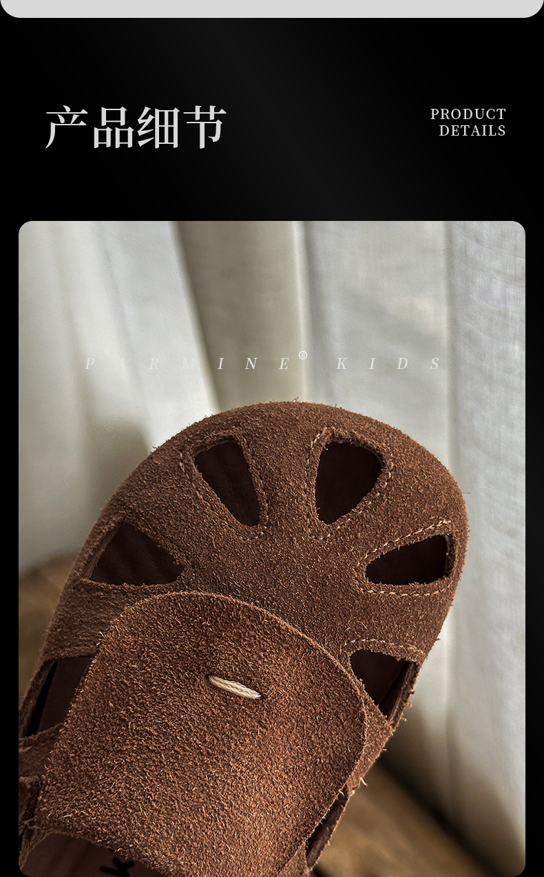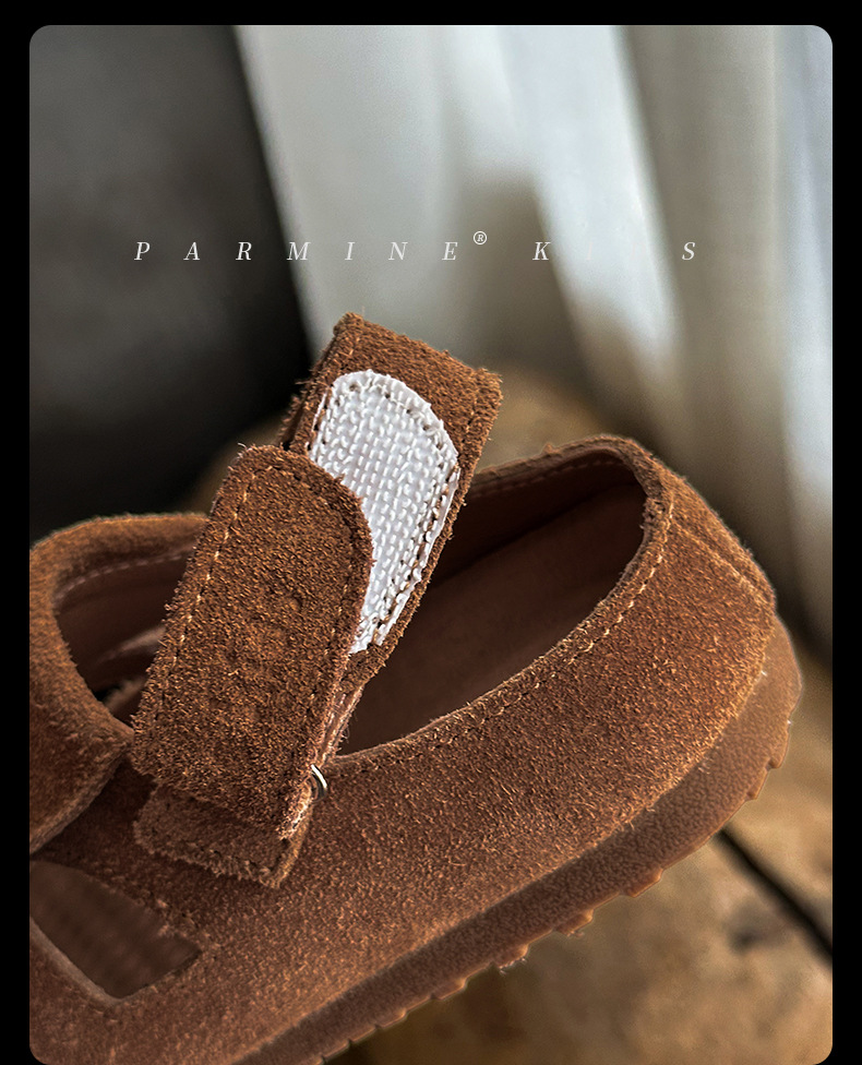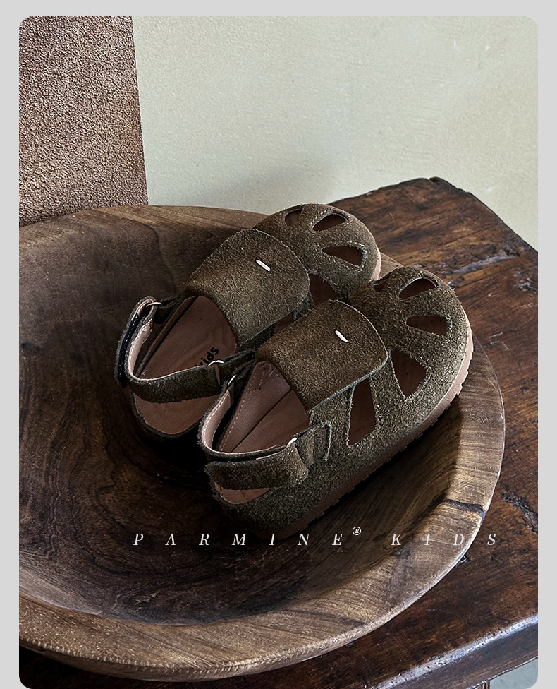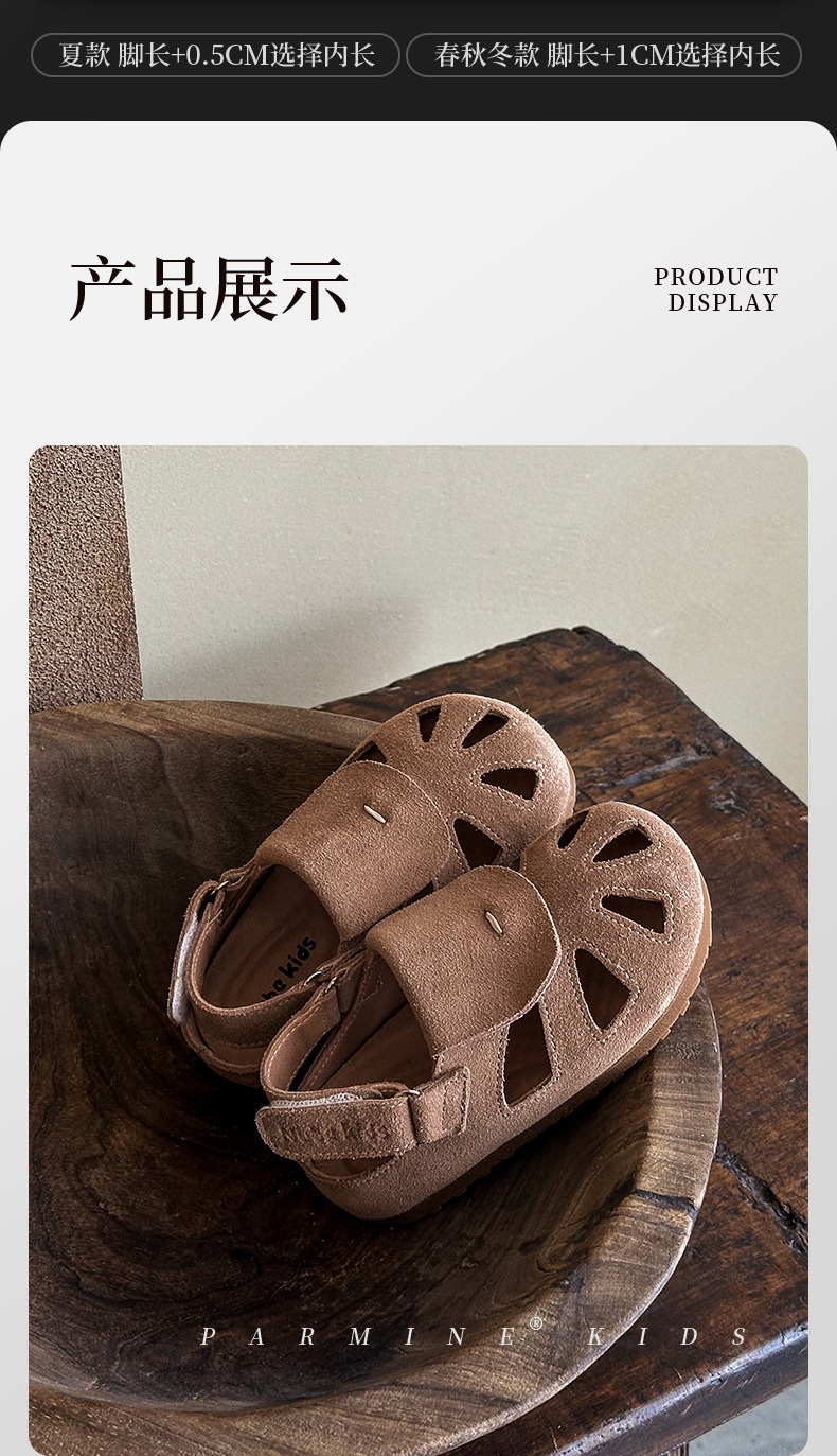정품 가죽 아동용 영국풍 레트로 샌들, 여름 캐주얼 만능 신상품, 남아 여아 유아용, 해변용, 원피스 디자인, 직배송스토어 가기