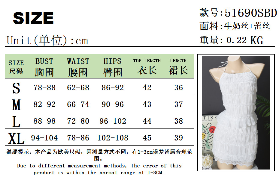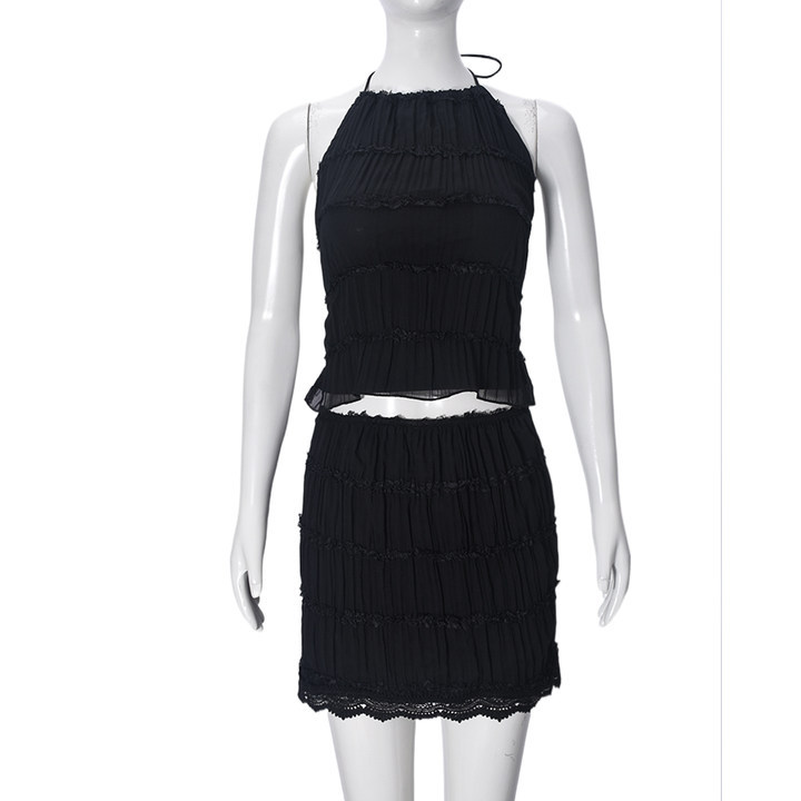 51690 유럽과 미국의 대외 무역 폭발에 대한 국경 간 독점 섹시 할로우 러플 랩 가슴 백리스 탑 스커트 여성 의류