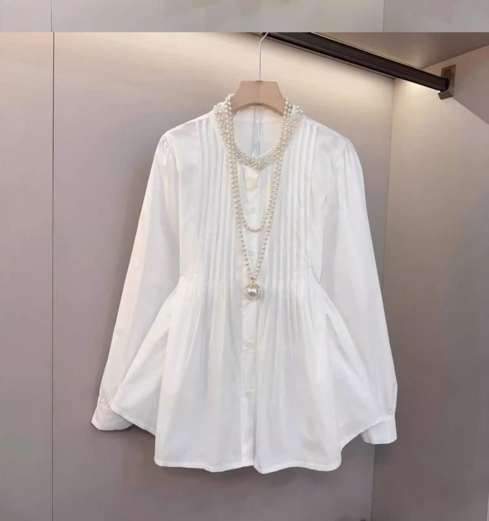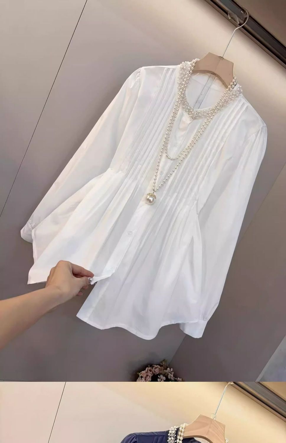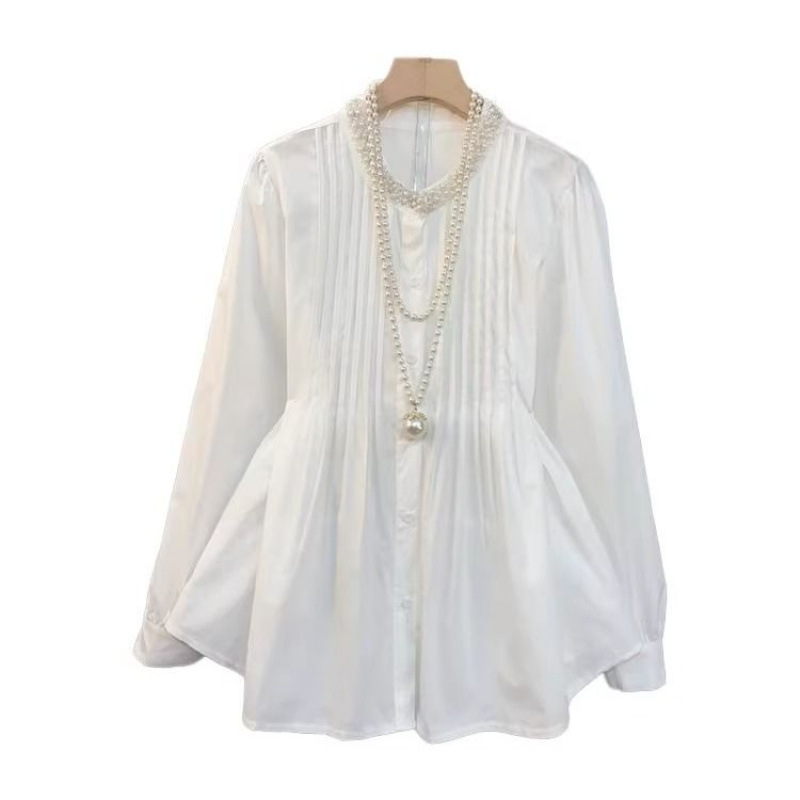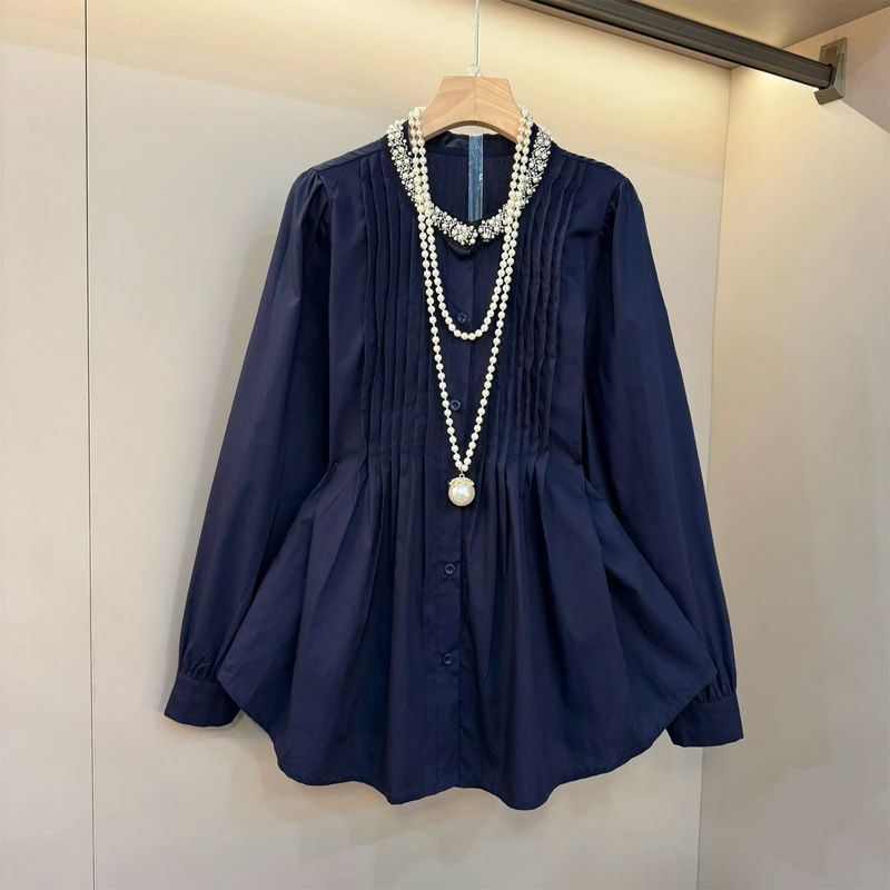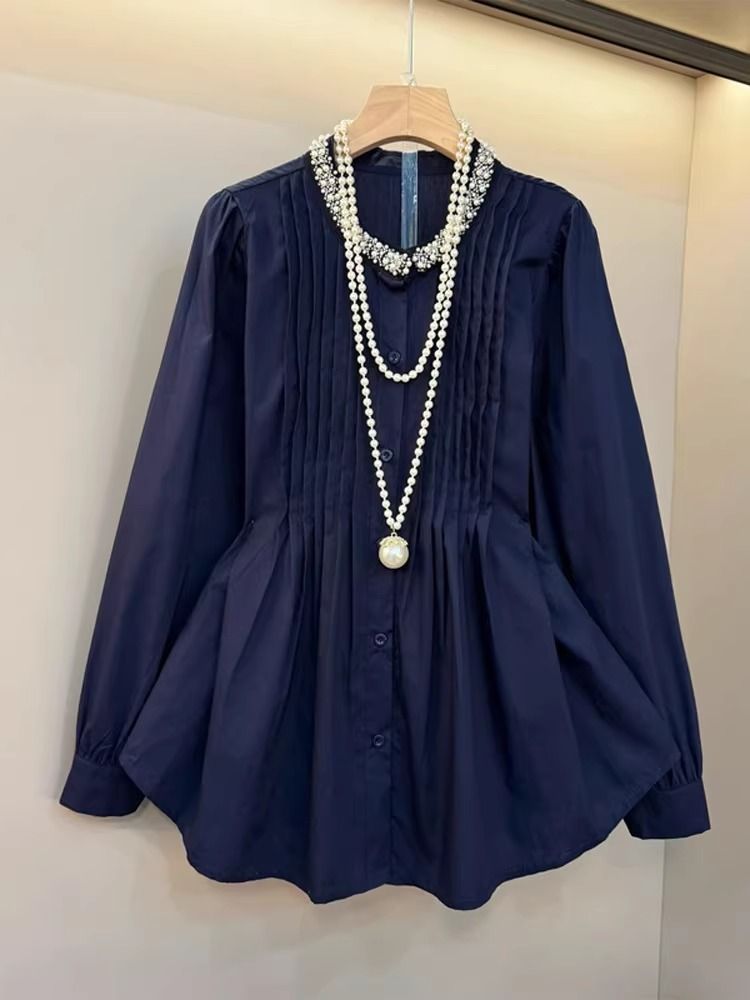 프렌치 라이트 럭셔리 헤비 듀티 쥬얼리 블루 긴팔 셔츠 여성용 봄 플러스 사이즈 팻 베이비 셔츠 하이 엔드 탑스토어 가기