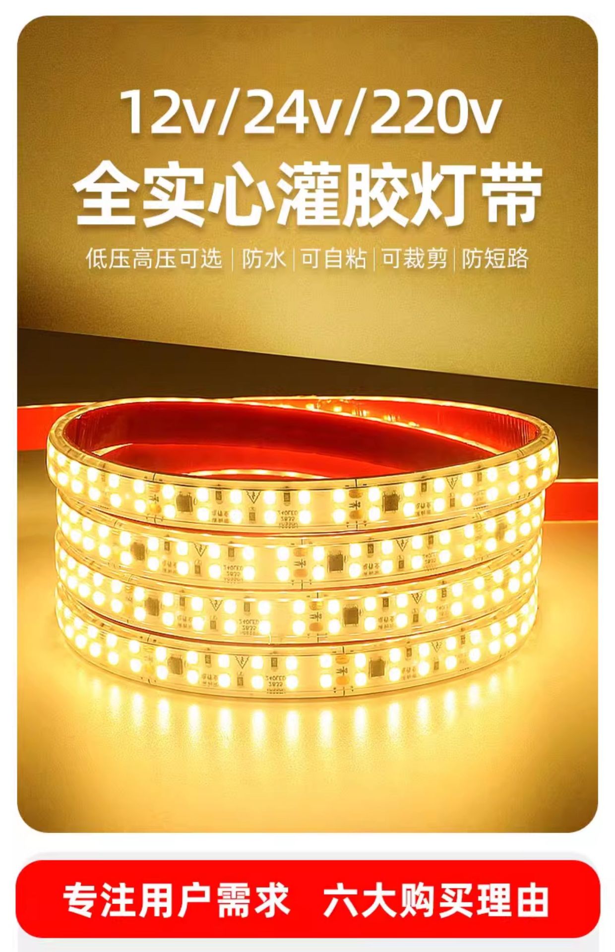 • 12V 솔리드 라이트 스트립 - 가격 6m [실내/실외/수중 모두 사용 가능]