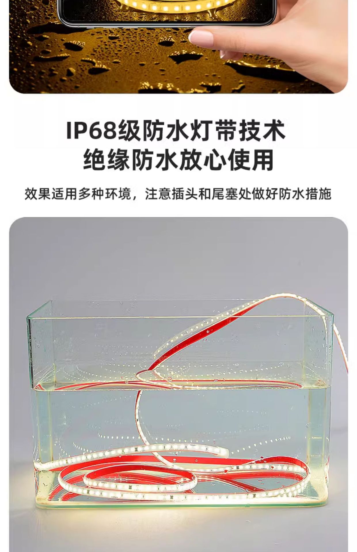 • 220V 케이스 라이트 스트립 1m + 1.5m 스위치 플러그 코드 [실내/실외 모두 사용 가능]