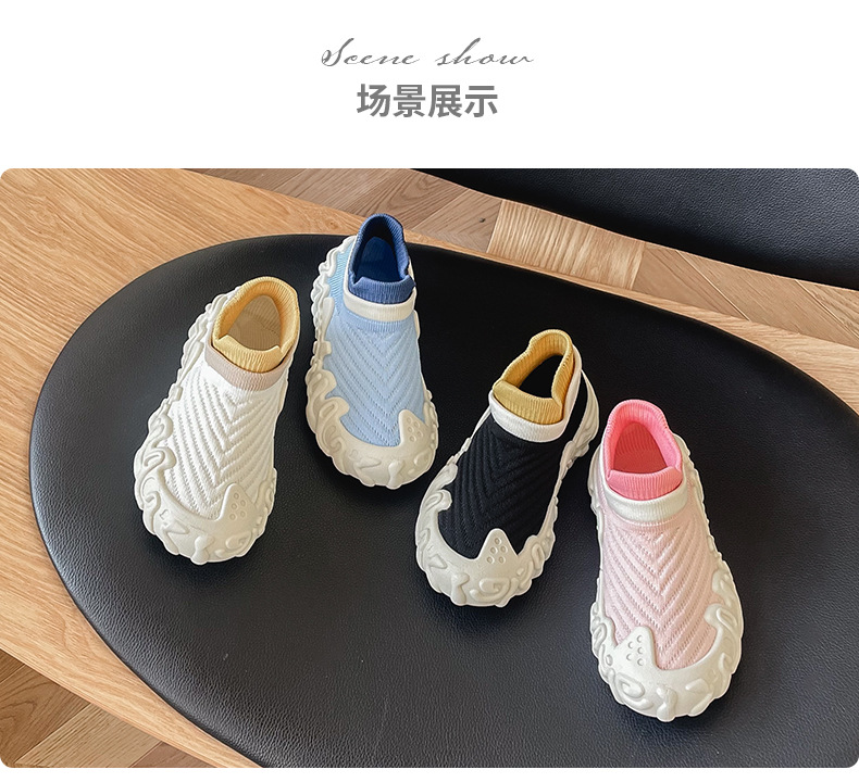 어린이 양말 신발 2025 봄과 가을 새로운 어린이 니트 통기성 운동화 슬립 온 스트레치 니트 신발스토어 가기