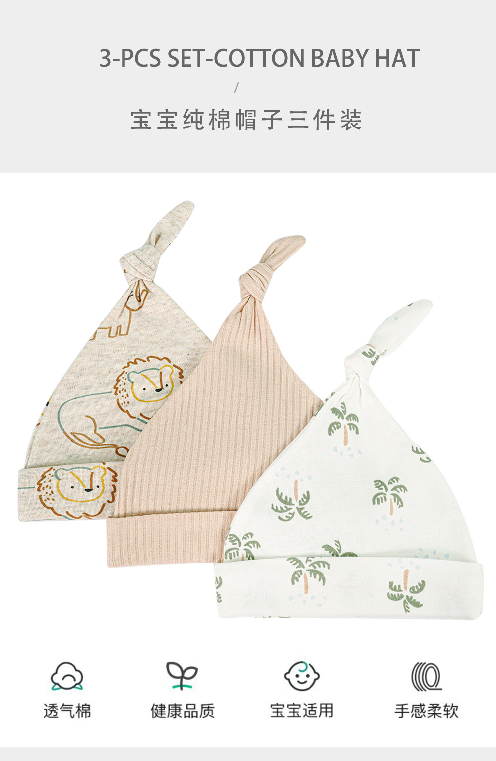 국경 간 신생아 면화 폰타 넬 보호 태아 캡 3 피스 태양 바이저 아기 폰타 넬 보호 모자 4 시즌