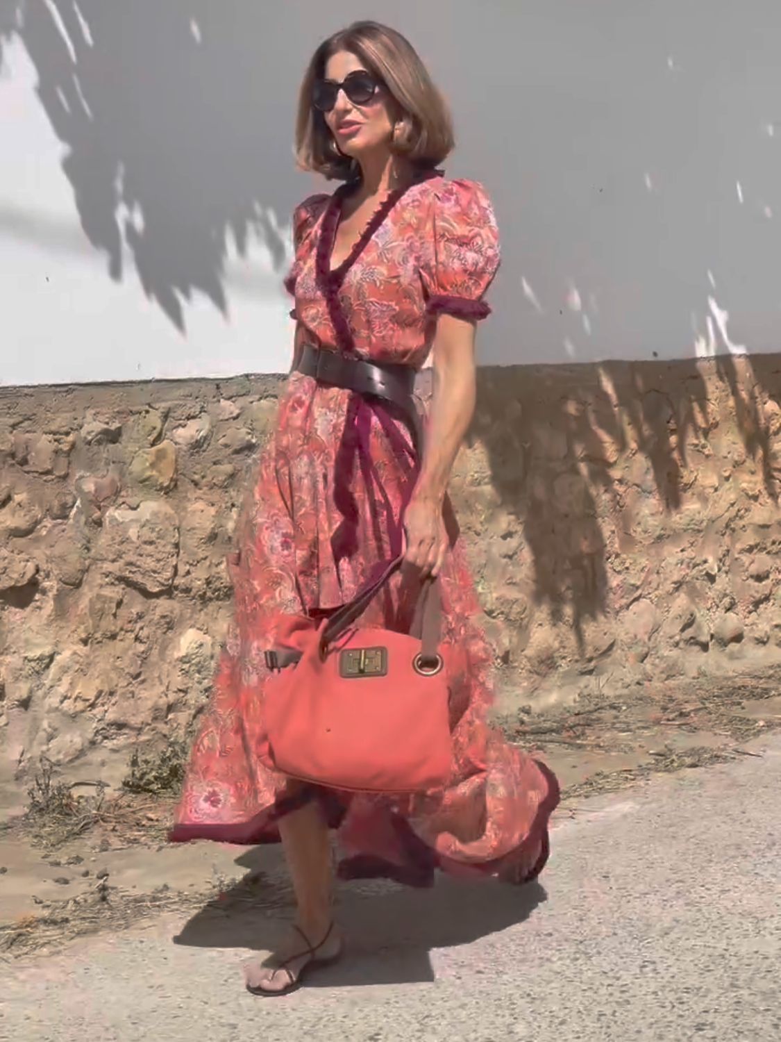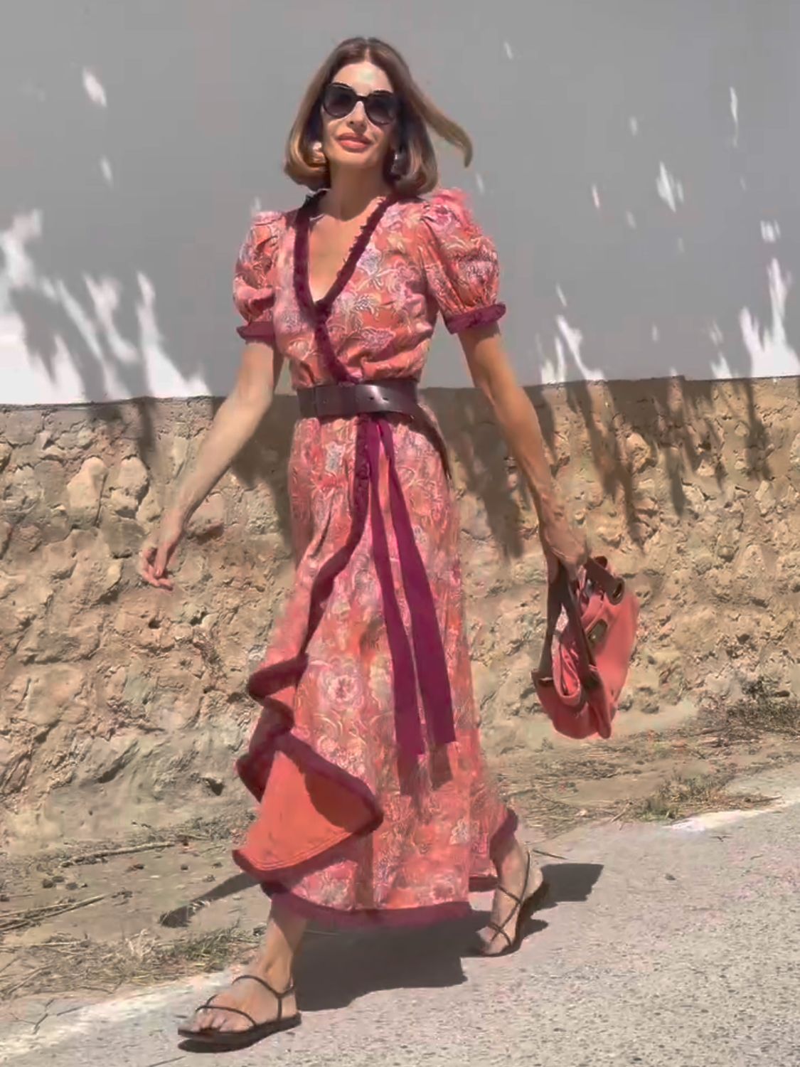 2025 유럽 및 미국 해외 아마존 독립 홈페이지 SHEIN 보헤미안 스타일의 우아한 휴가용 프린트 롱 드레스