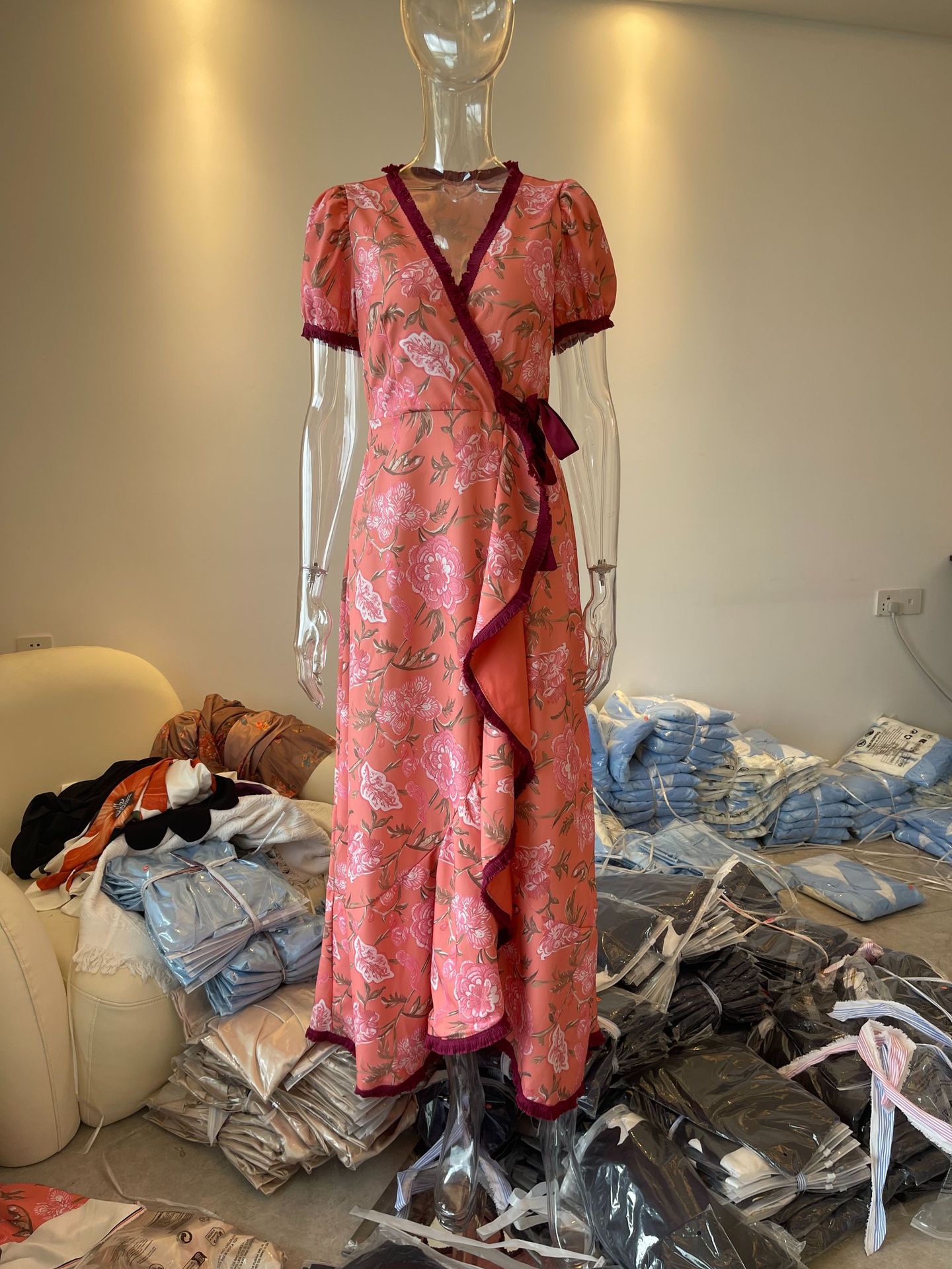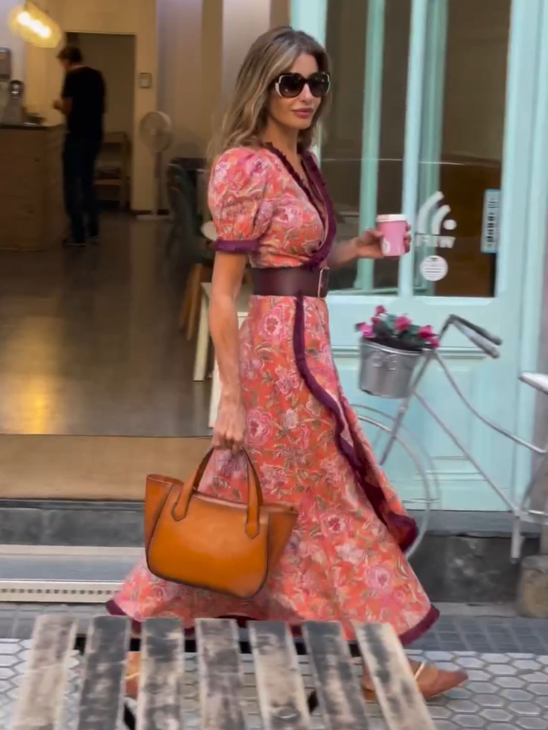 2025 유럽 및 미국 해외 아마존 독립 홈페이지 SHEIN 보헤미안 스타일의 우아한 휴가용 프린트 롱 드레스스토어 가기