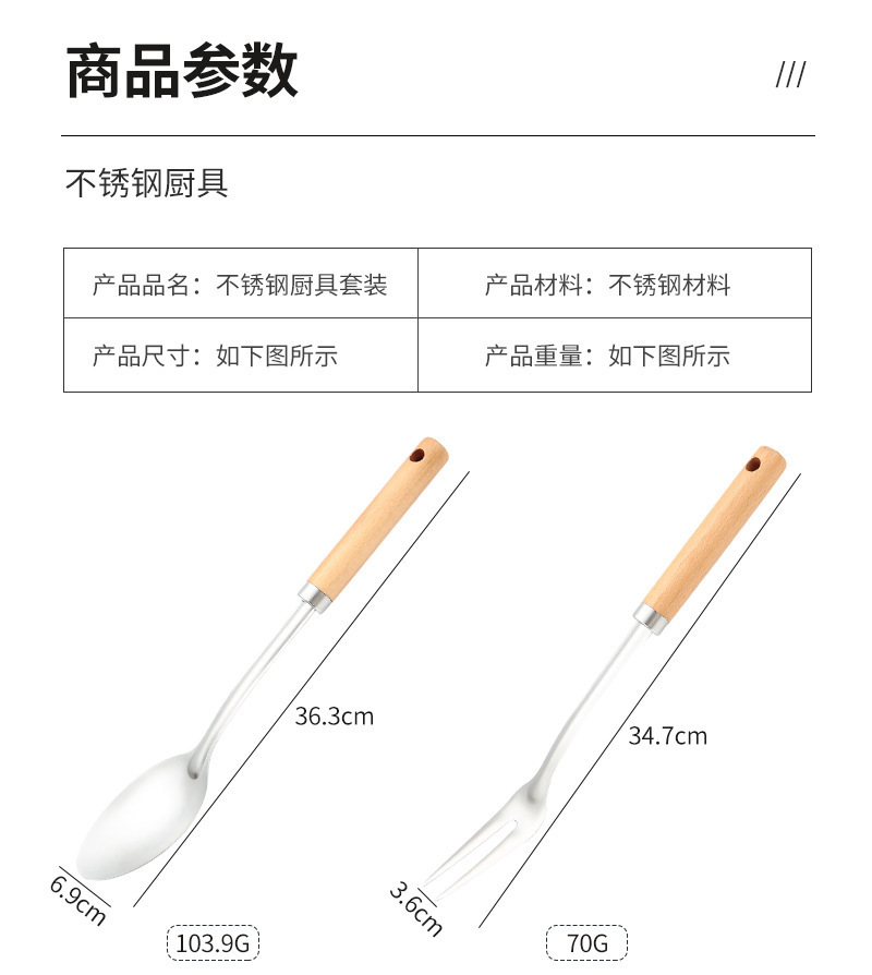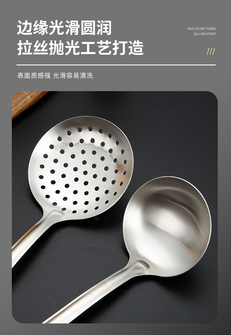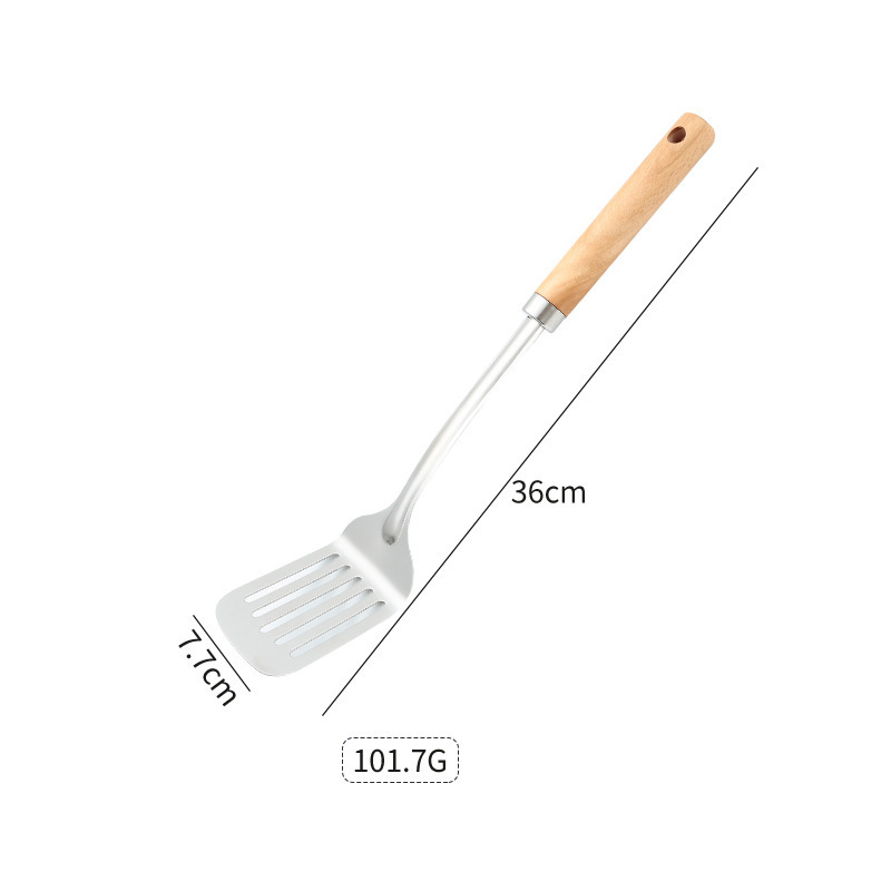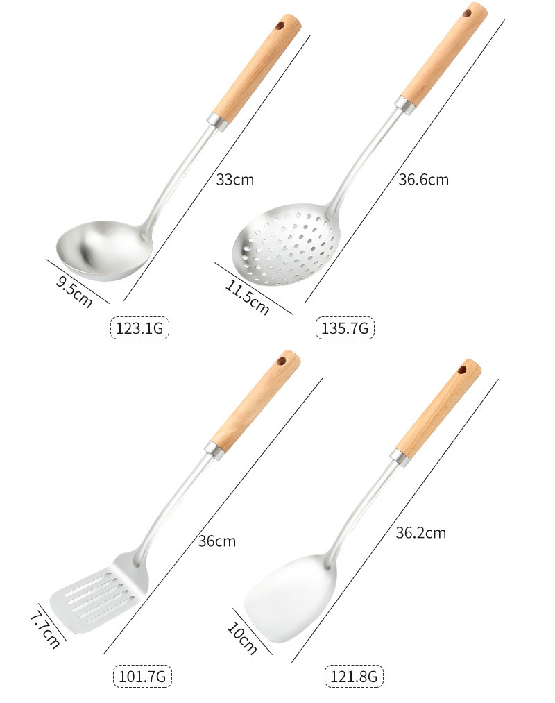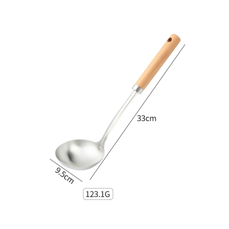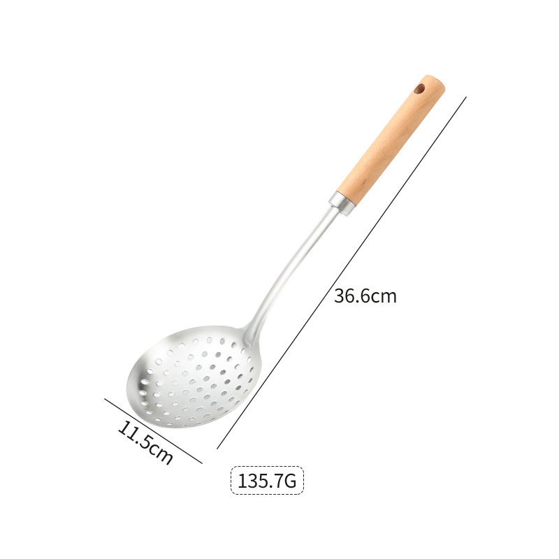 두꺼운 스테인레스 스틸 주걱 세트 나무 손잡이 주걱 가정용 주방 요리 도구 요리 주걱 수프 스푼 드레인 프라이팬 주걱
