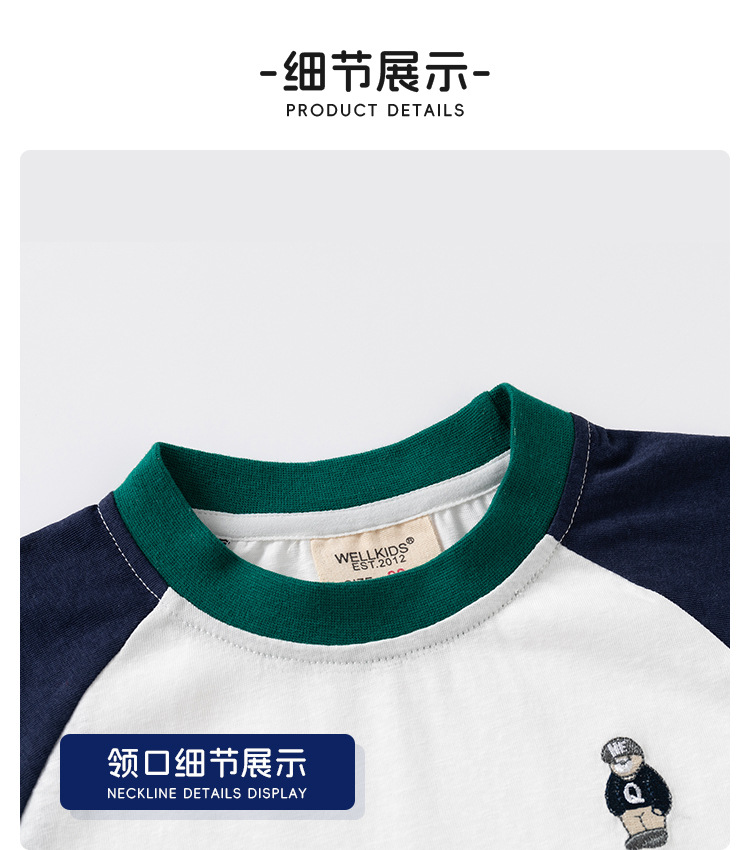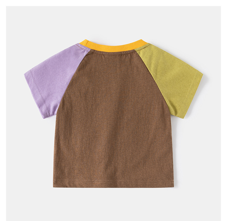 2025 새로운 어린이 반팔 티셔츠 여름 소년 반팔 탑 베이비 대비 색 패치 워크 슬리브 바닥 셔츠 유행 도매