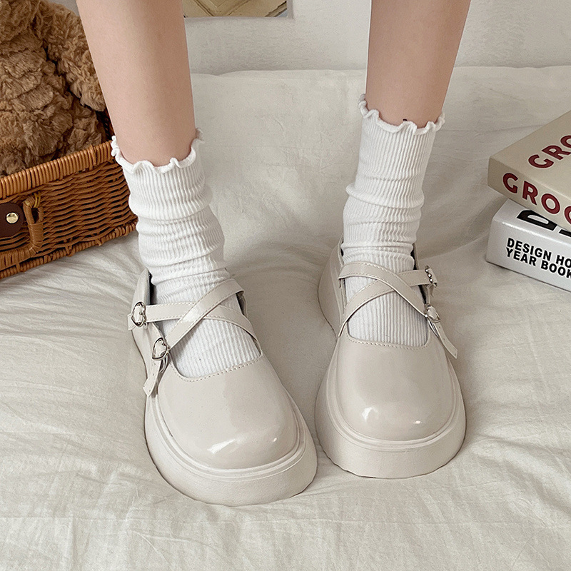 메리 제인 신발 여성 진주 일본식 귀여운 흰색 프랑스 신발 스커트 두꺼운 밑창 틈새 jk 검은 작은 가죽 신발