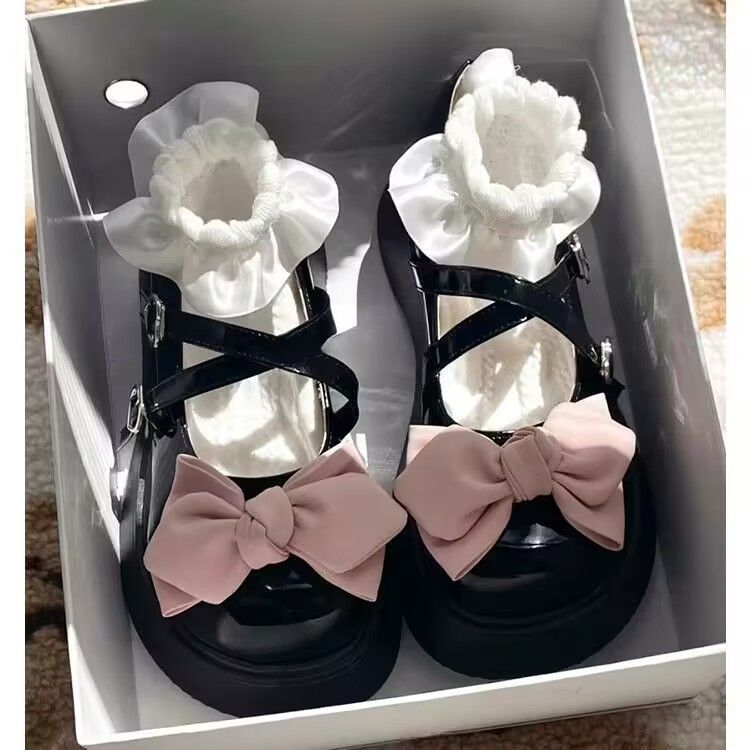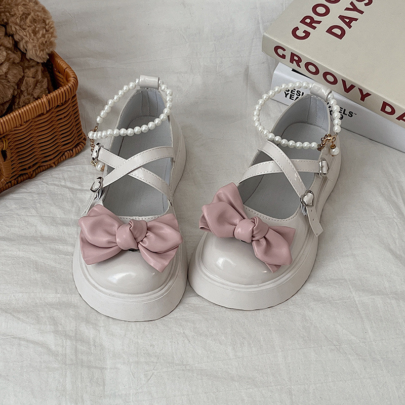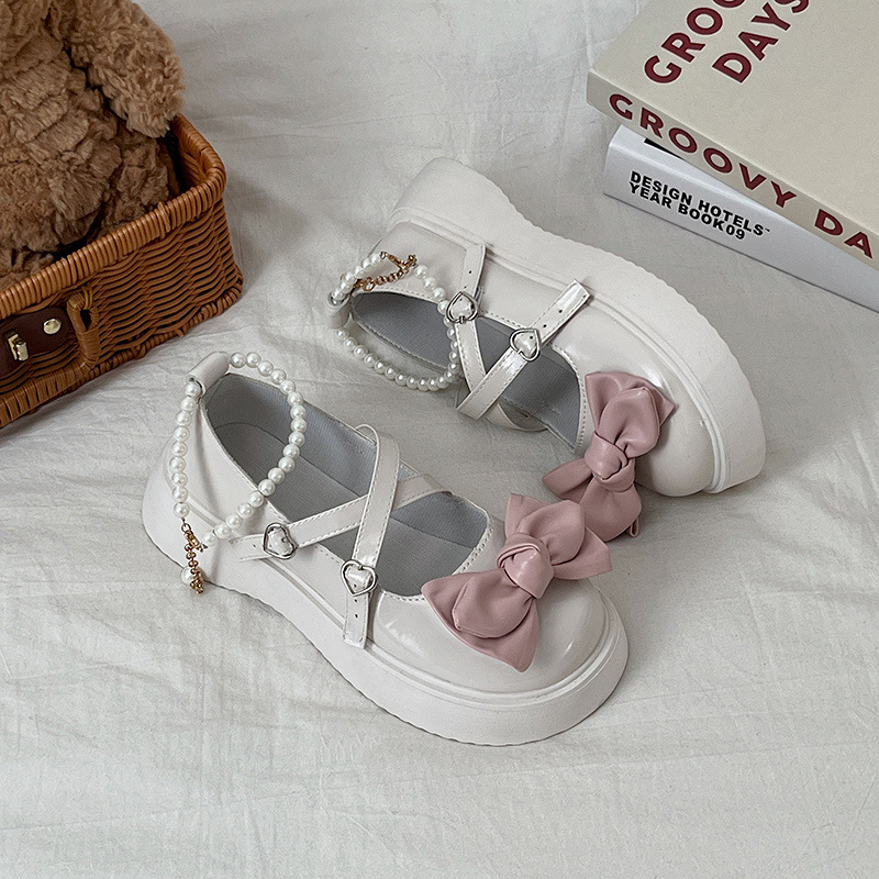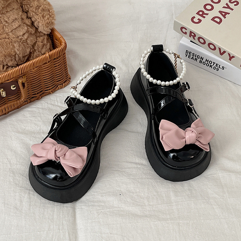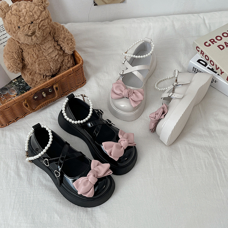메리 제인 신발 여성 진주 일본식 귀여운 흰색 프랑스 신발 스커트 두꺼운 밑창 틈새 jk 검은 작은 가죽 신발스토어 가기
