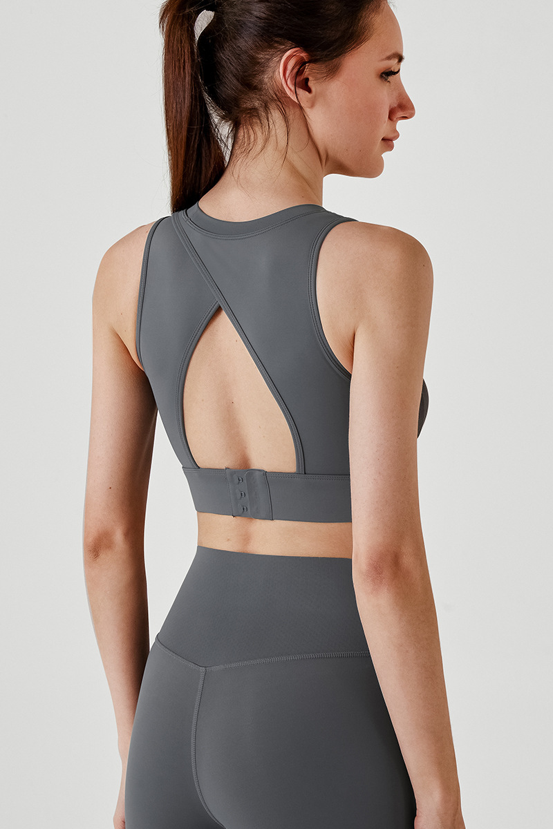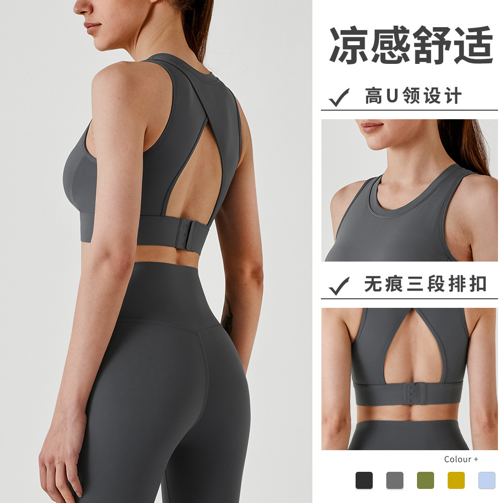 신형 요가조끼, 반고정컵 푸쉬업 스포츠브라, 착탈이 간편한 충격흡수 피트니스 뷰티백 여성용 중공브라