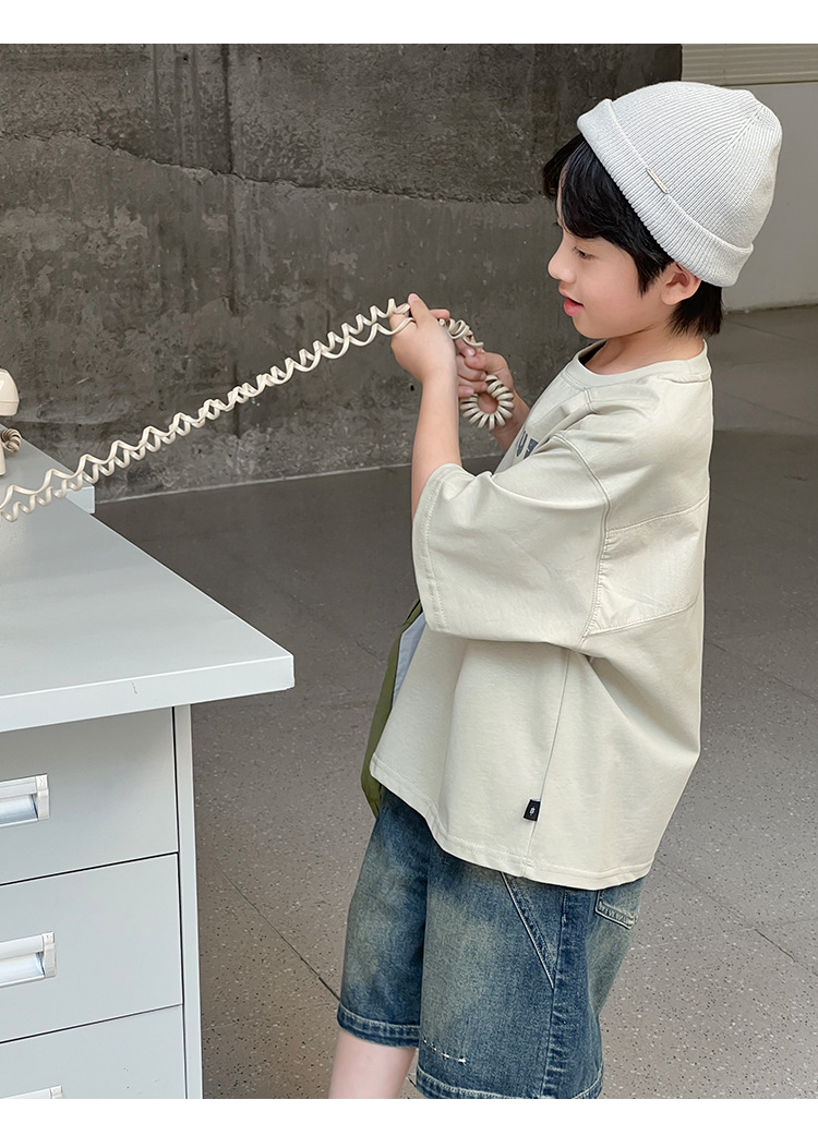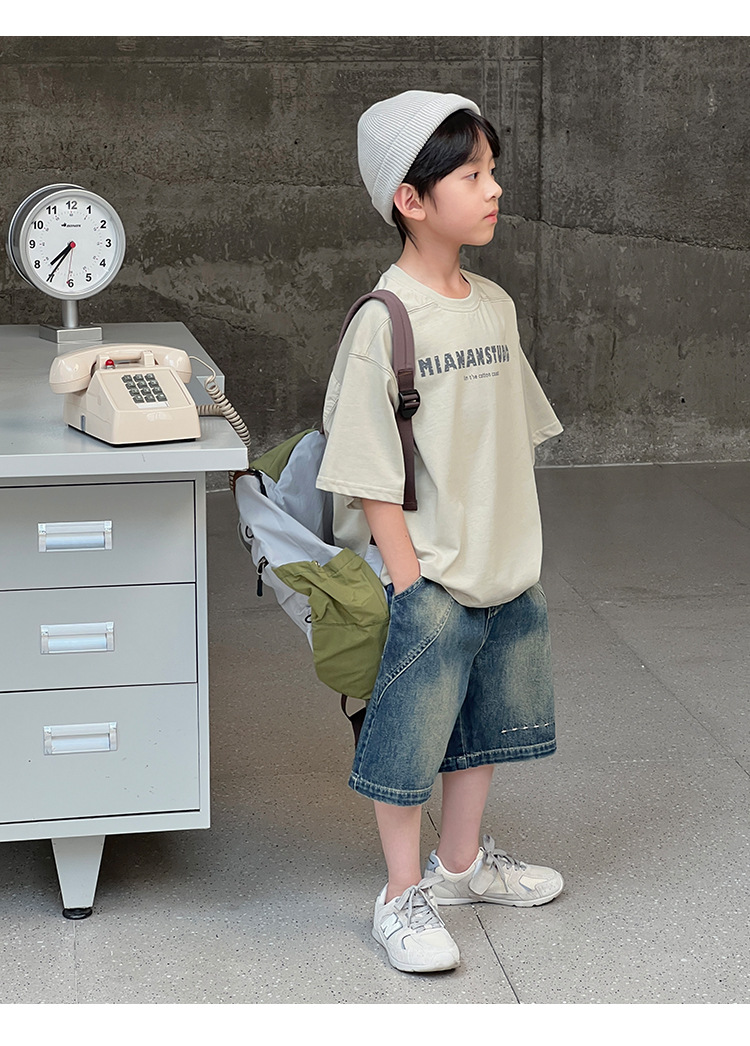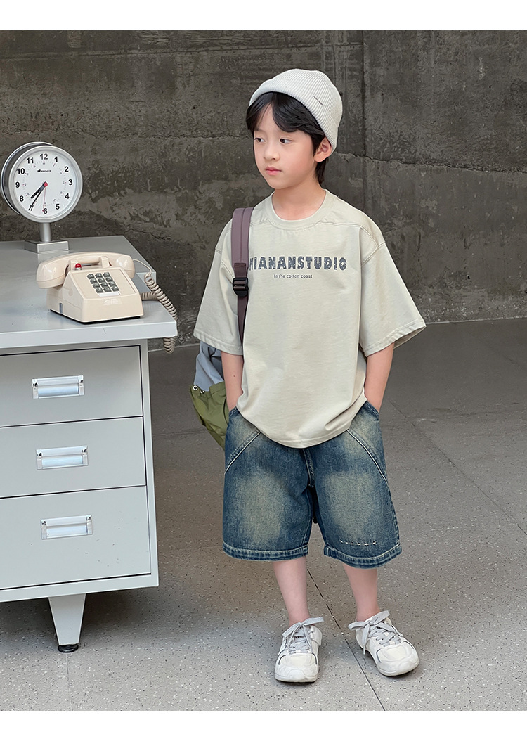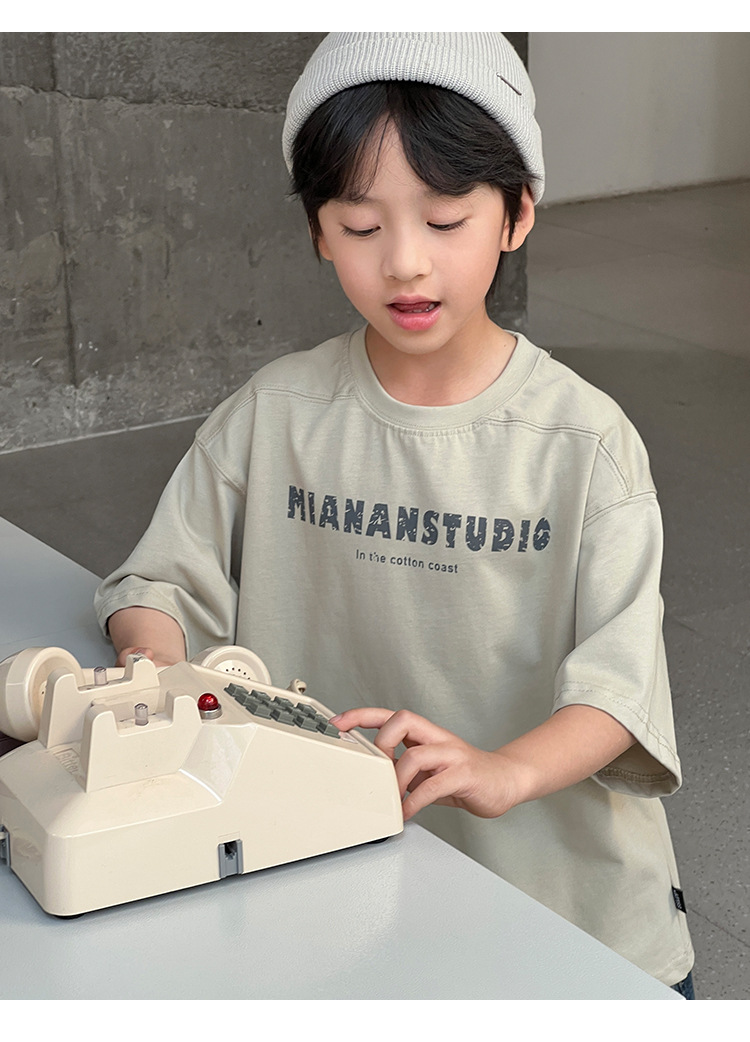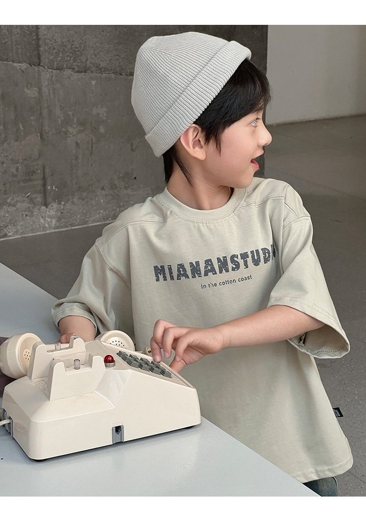 2026 여름 아동복 신상 상의 레터 프린트 라운드넥 풀오버 심플하고 다용도로 활용 가능한 캐주얼 루즈핏 반팔 티셔츠