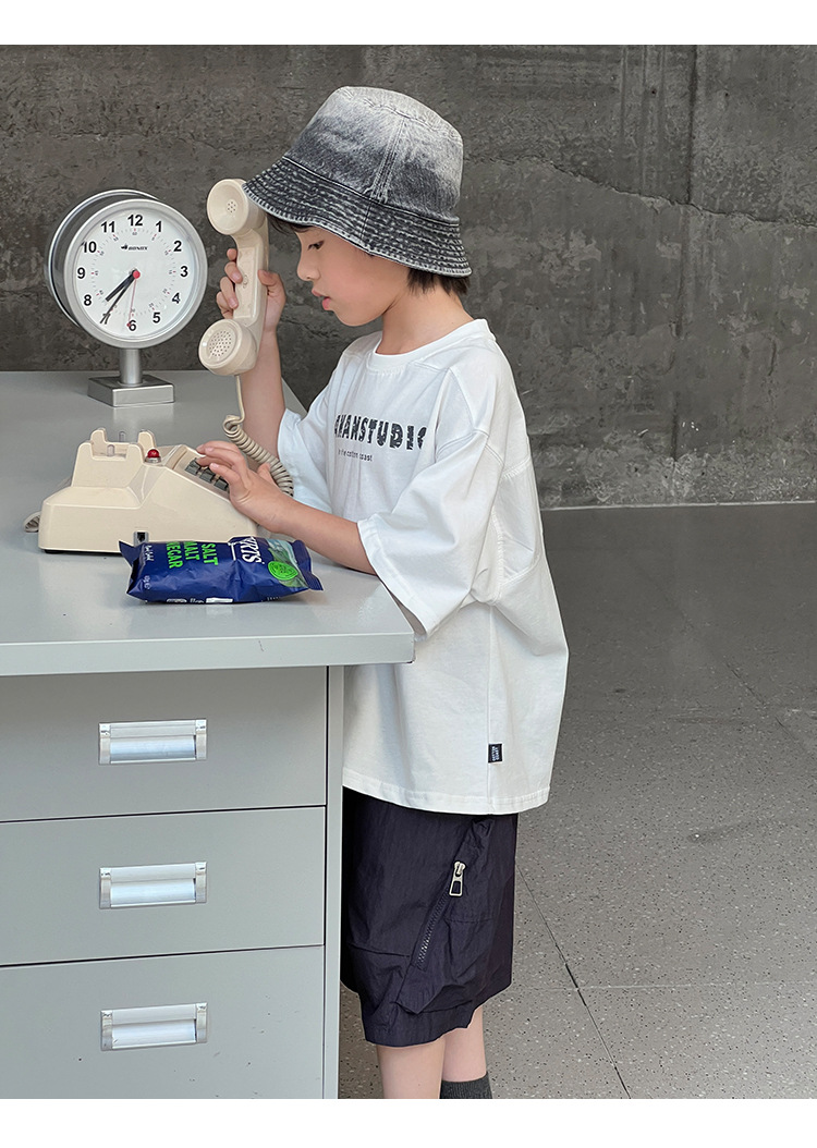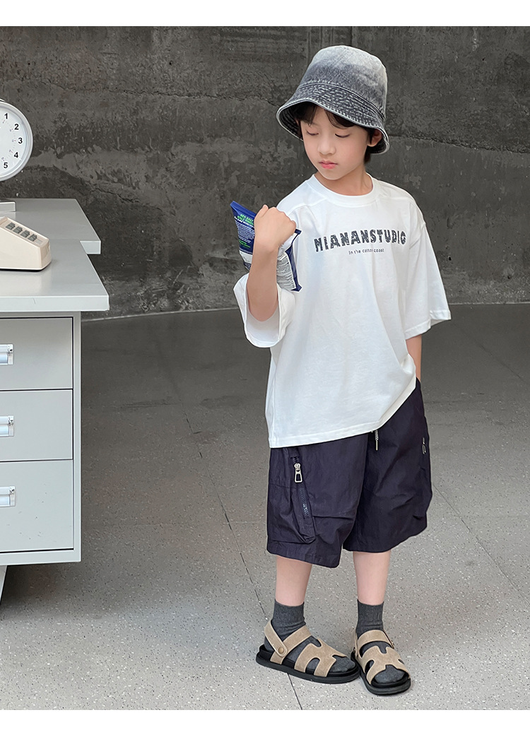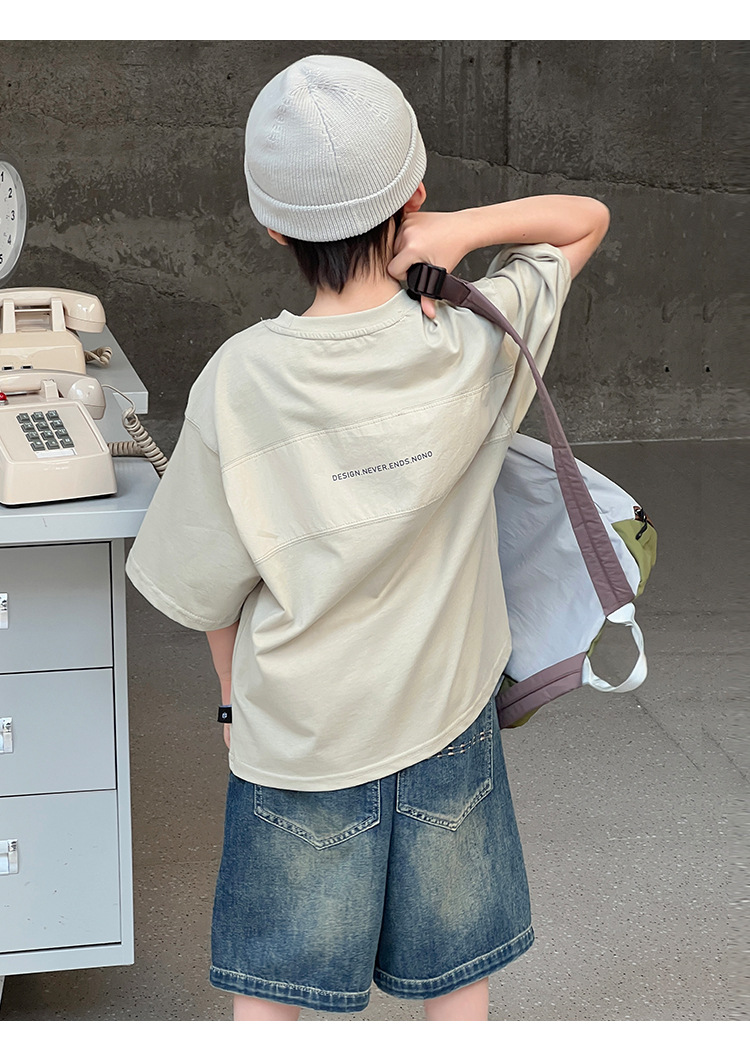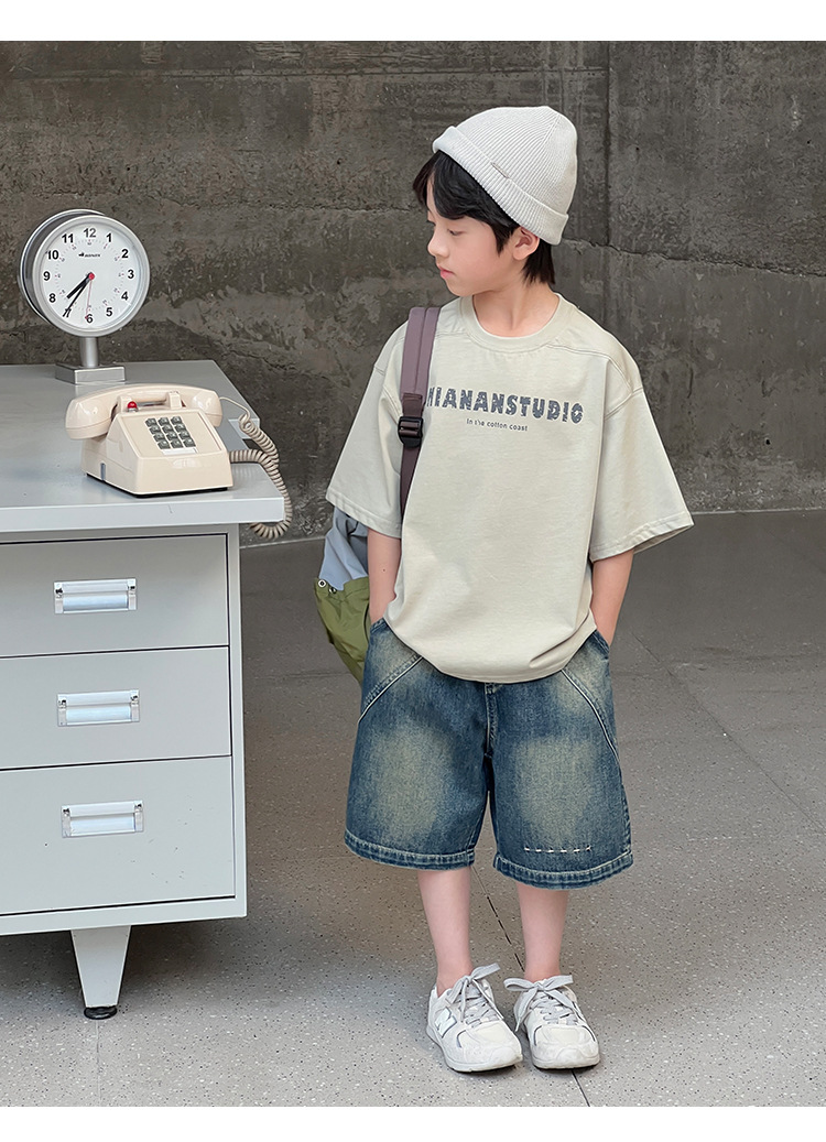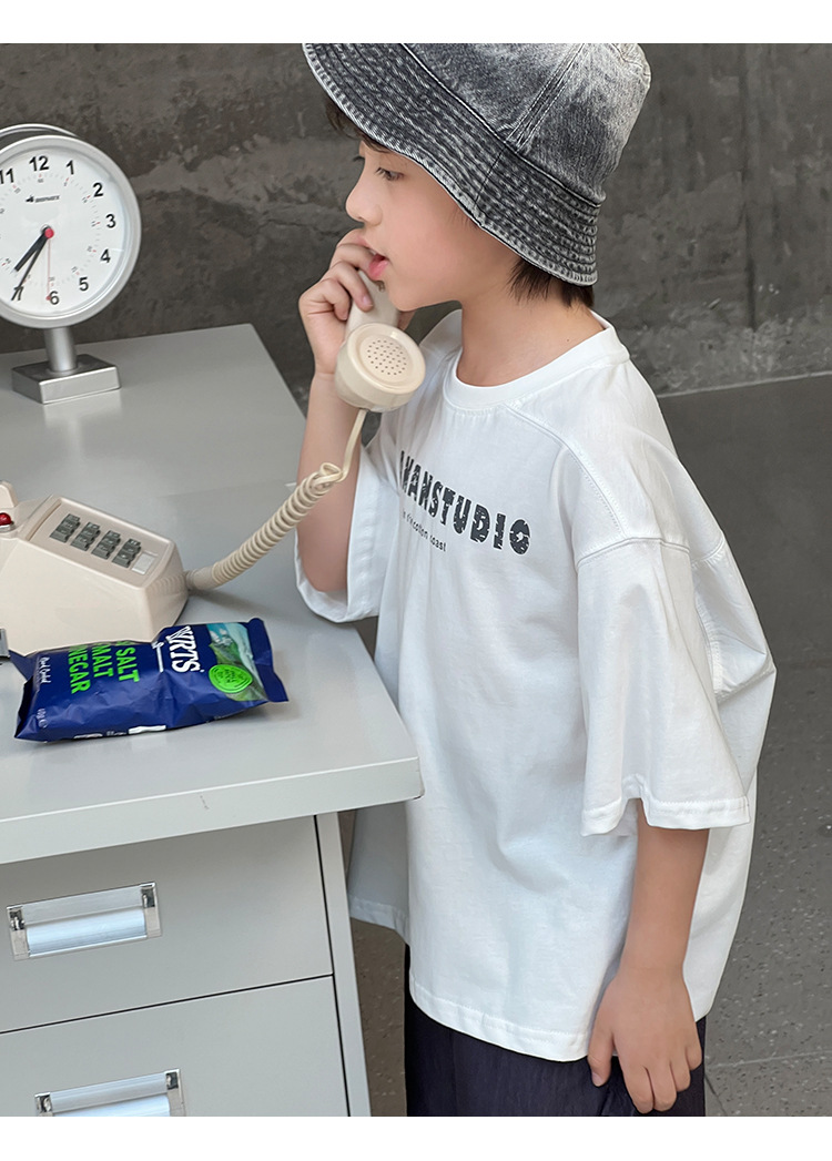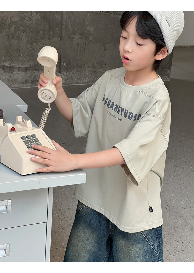 2026 여름 아동복 신상 상의 레터 프린트 라운드넥 풀오버 심플하고 다용도로 활용 가능한 캐주얼 루즈핏 반팔 티셔츠