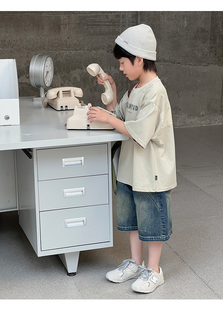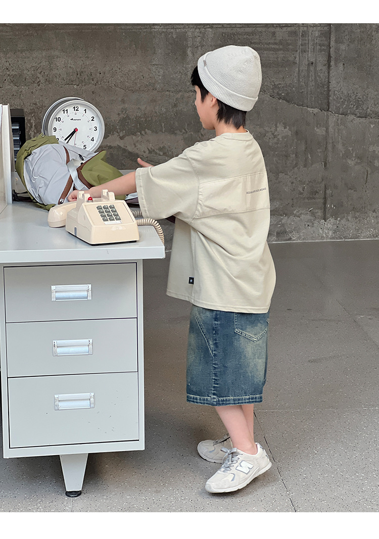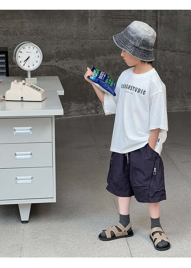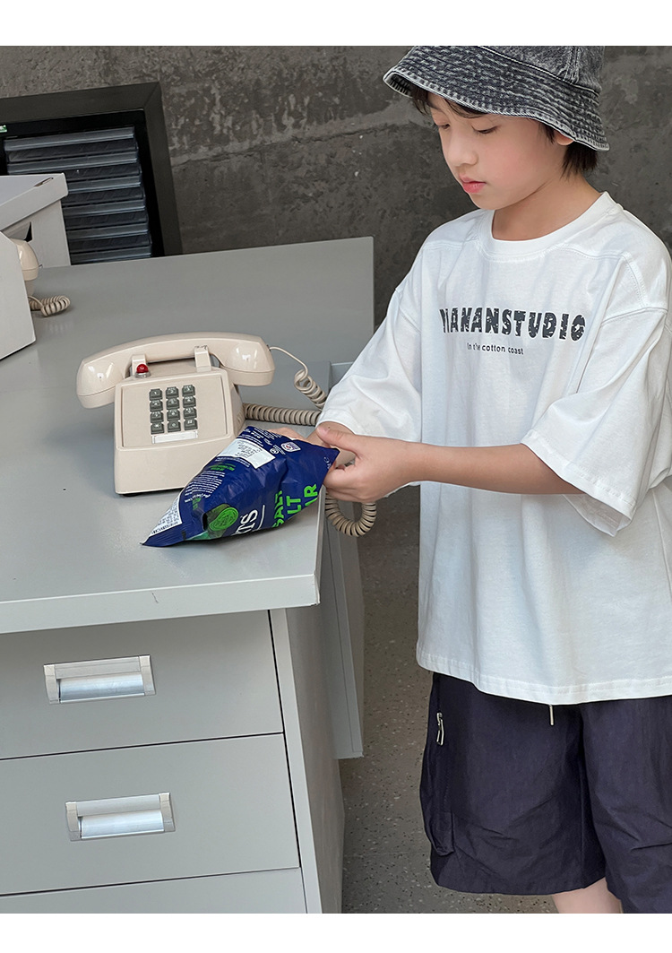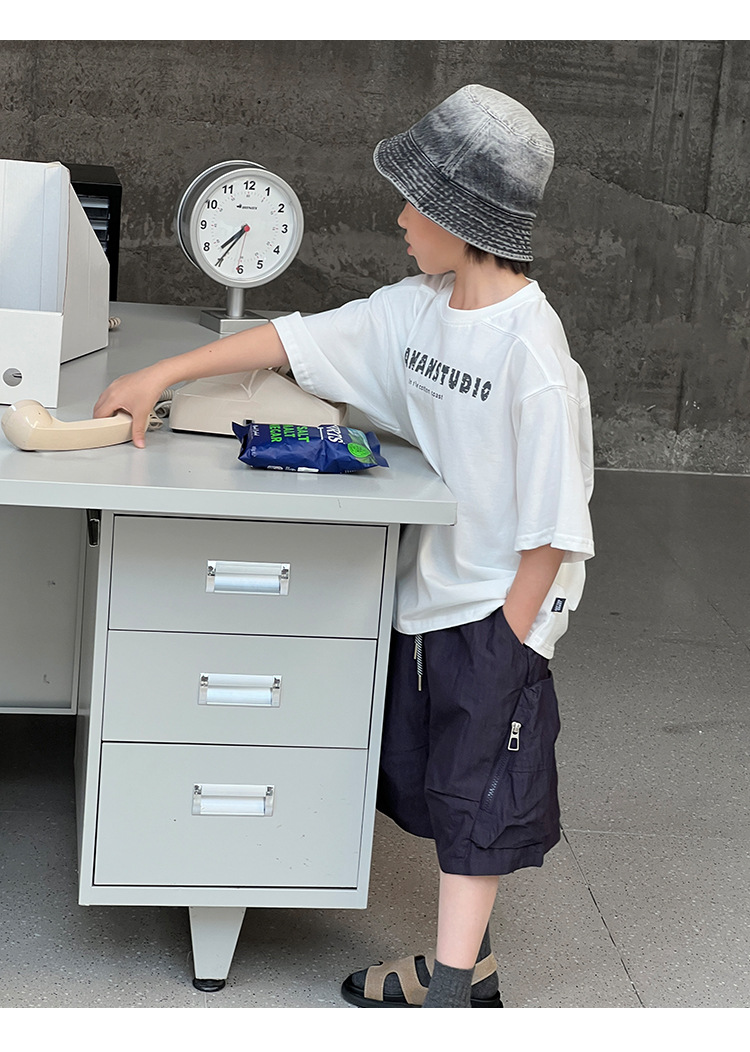 2026 여름 아동복 신상 상의 레터 프린트 라운드넥 풀오버 심플하고 다용도로 활용 가능한 캐주얼 루즈핏 반팔 티셔츠