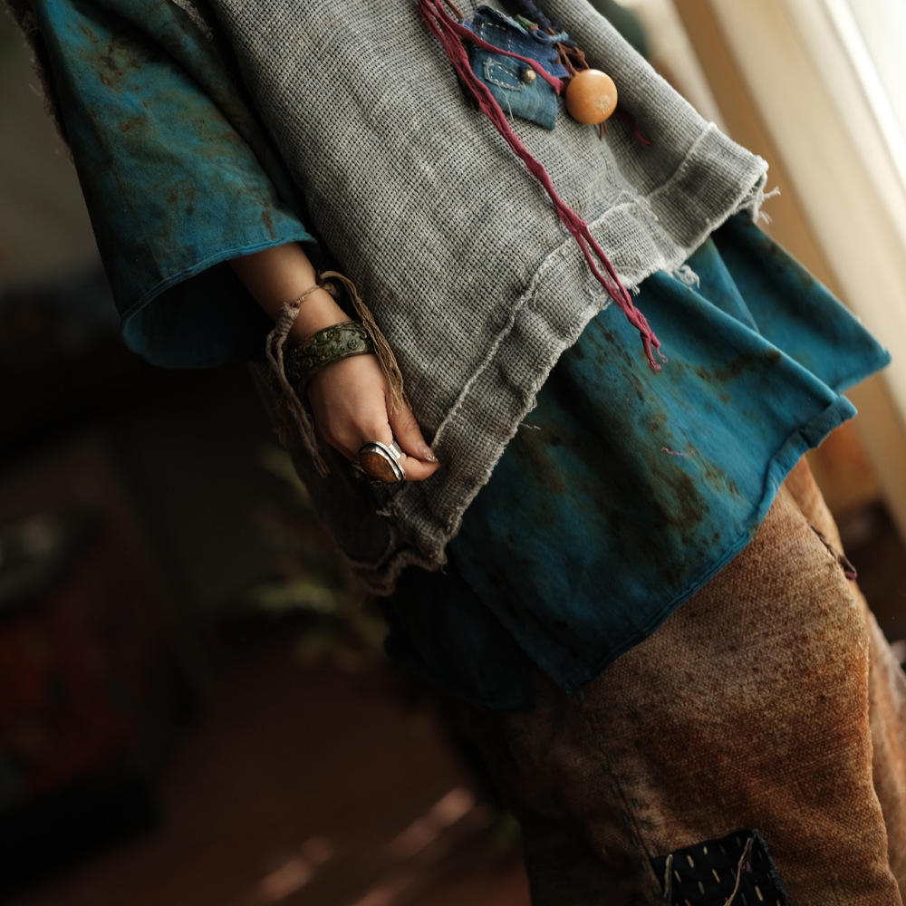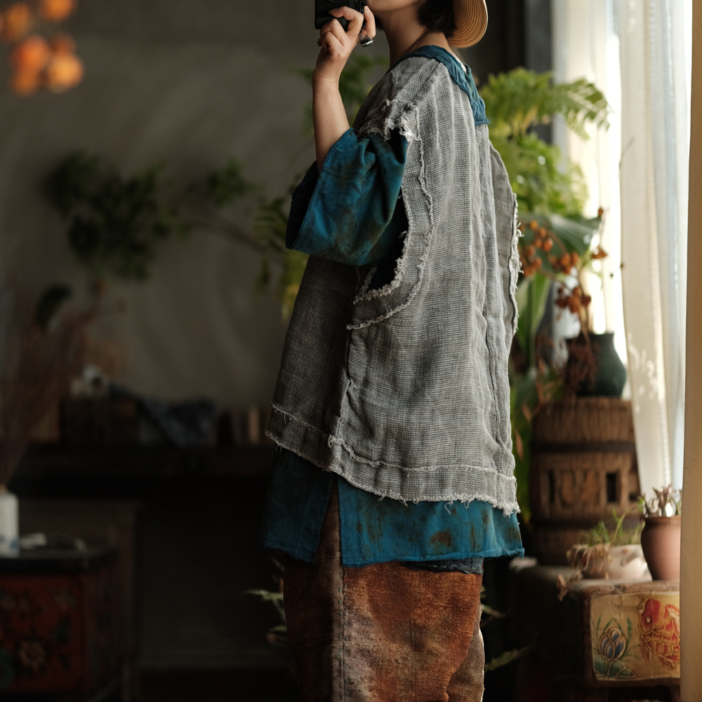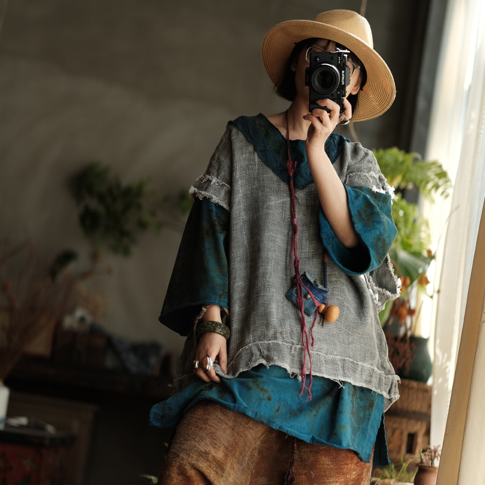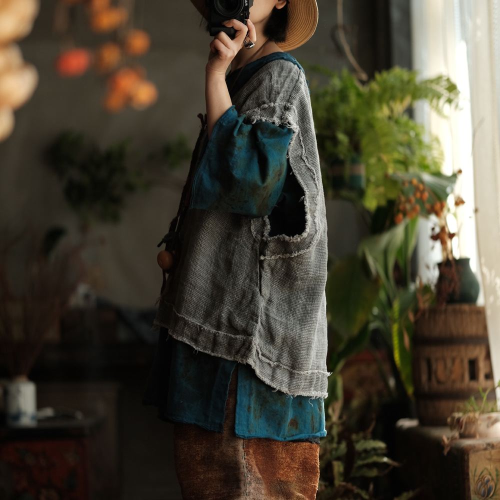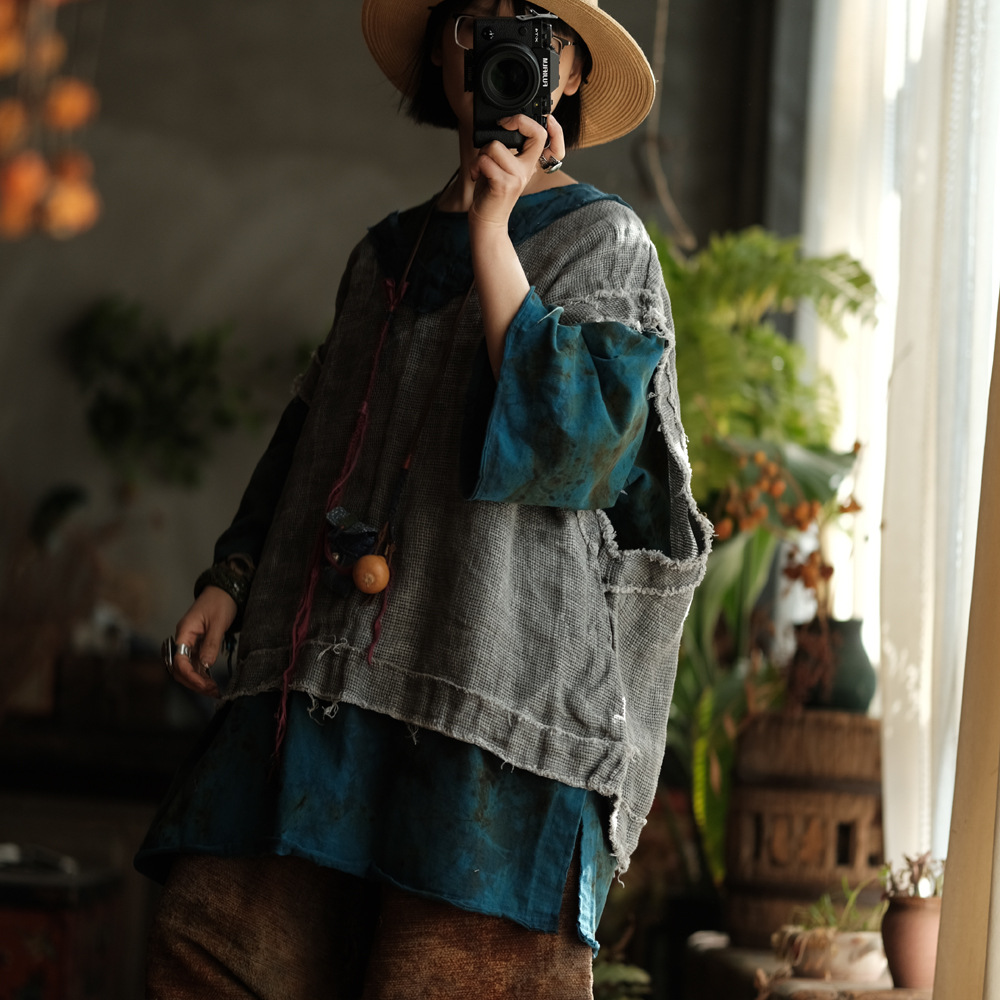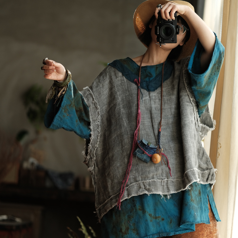 샤오니우 셔우(小泥姑娘) 오리지널 여성복 레트로 문예 스타일 린넨 라운드넥 롤업 밑단 조끼 2353 그레이스토어 가기