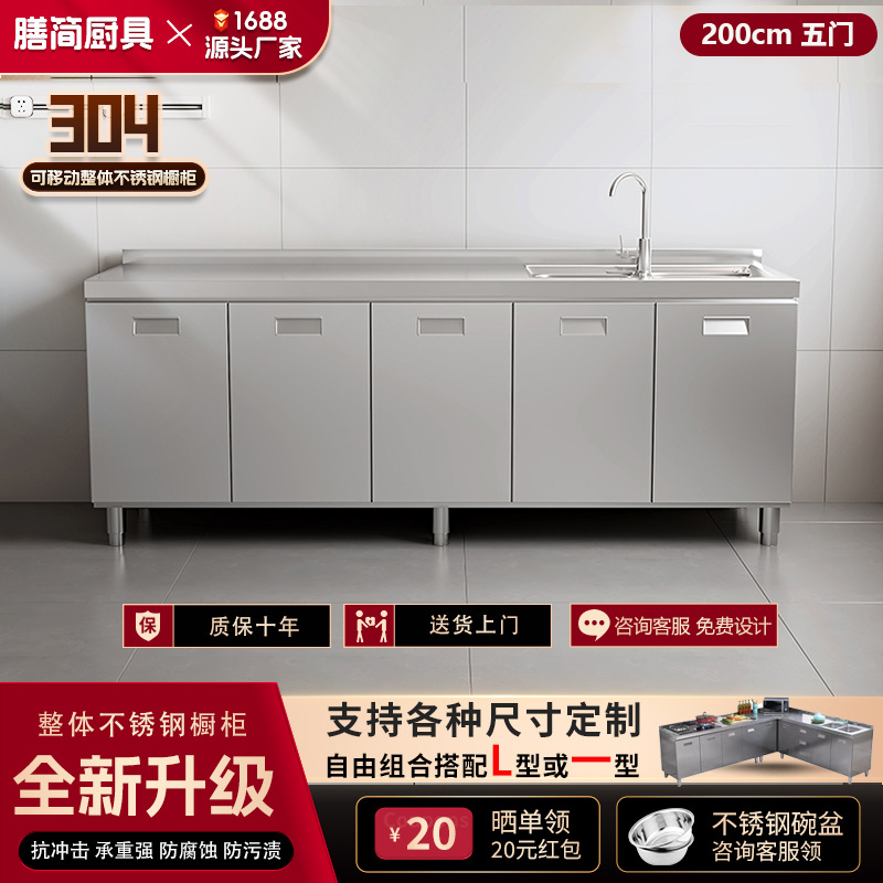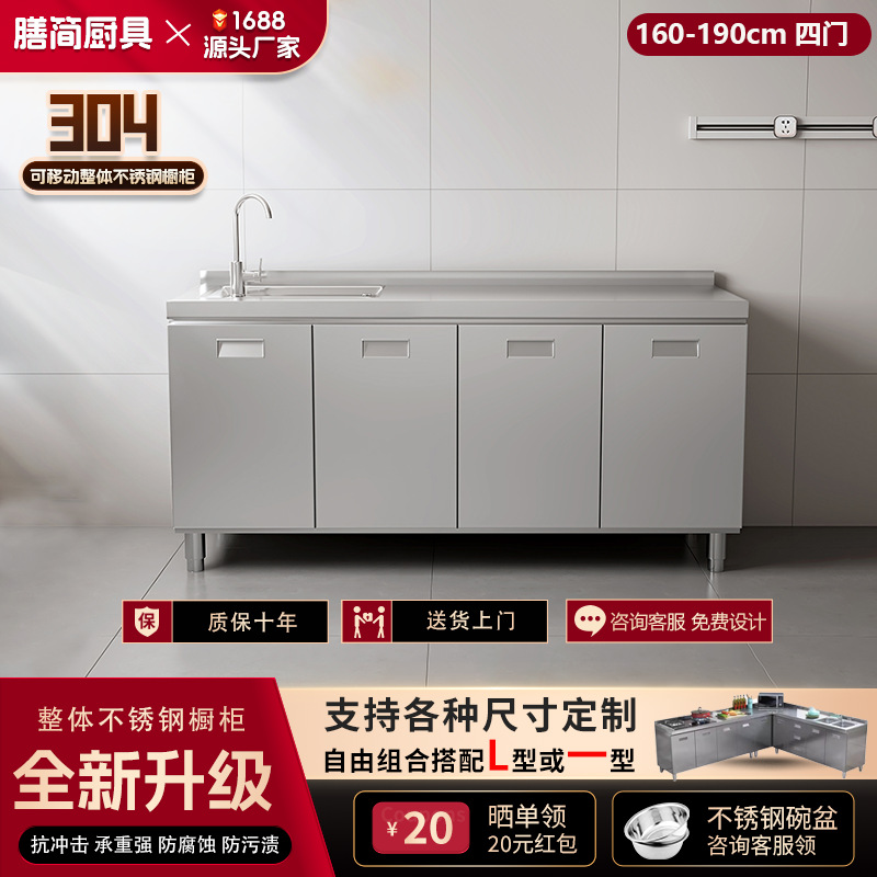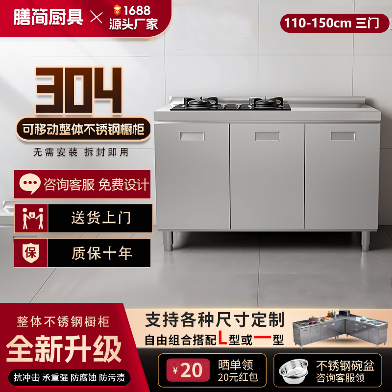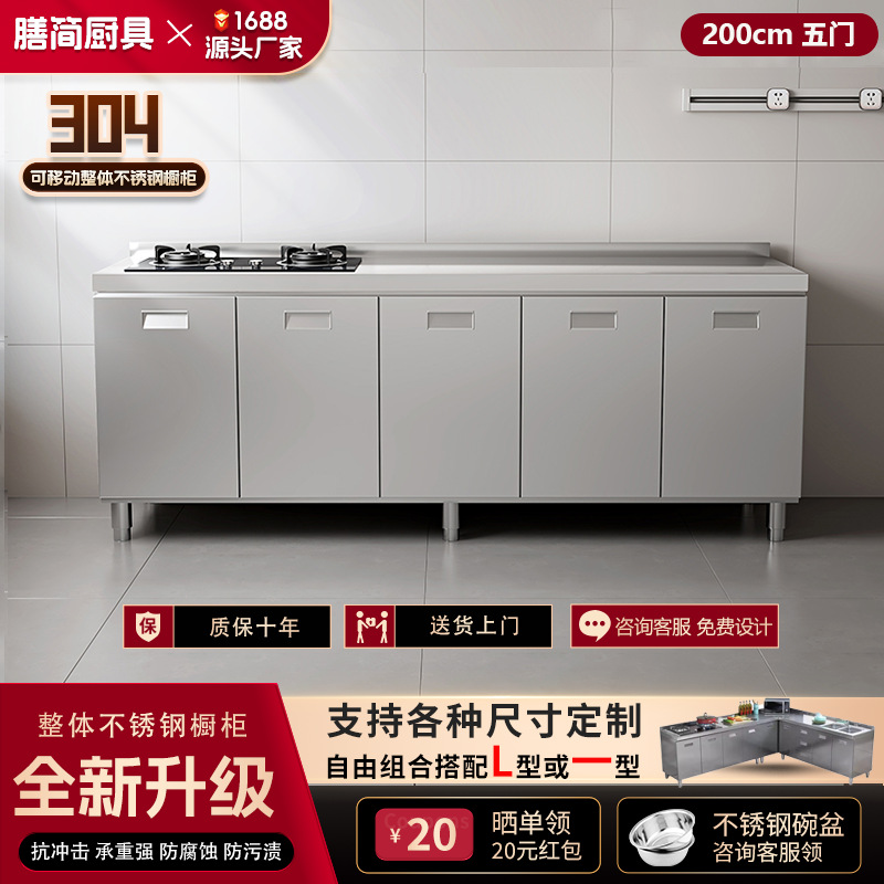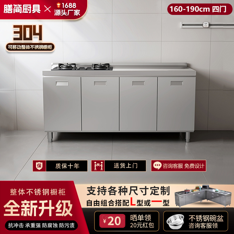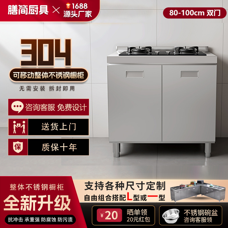 304 통합 모든 스테인레스 스틸 주방 캐비닛 간단한 스토브 통합 스토리지 찬장 가정용 작은 아파트스토어 가기